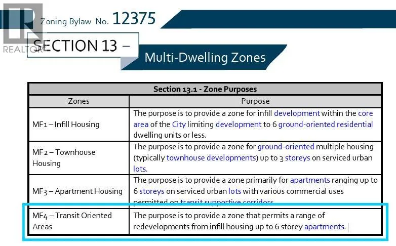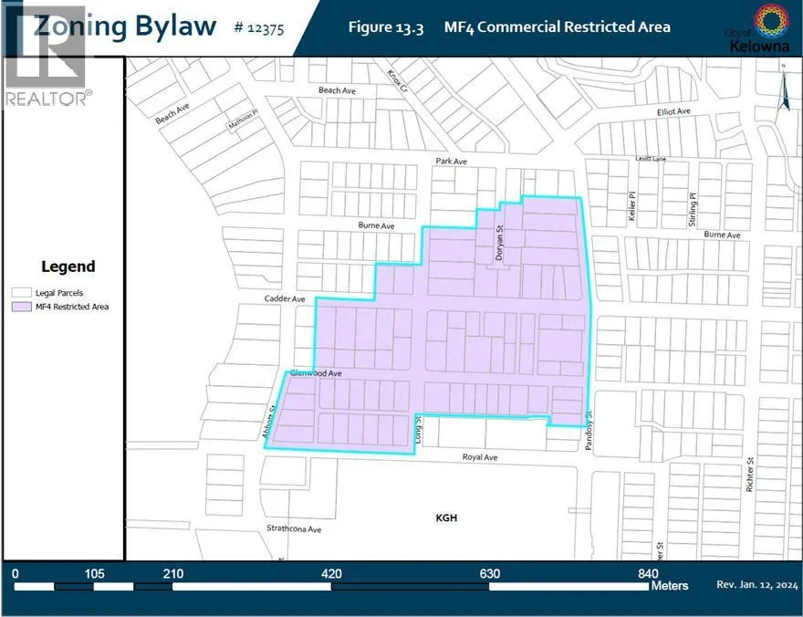 Developer and Investor Alert! Prime Transit-oriented Multi-family Development Site just 300 meters from Kelowna General Hospital. This rare 0.45-acre site is ideally located within the Hospital Transit Oriented Area, the property is zoned MF4 â Transit Oriented Areas with future land use designation Core Area â Health District (C-HTH). Zoning supports multi-unit residential development up to approximately 6 storeys with a base FAR of 2.5 and potential for bonus density, and is exempt from minimum parking requirements under the Zoning Bylaw, offering valuable flexibility for developers. Walking distance to beaches, City Park, Downtown, schools, and the Abbott Street Active Transportation Corridor, and only minutes to the South Pandosy Urban Centre, Okanagan College, major shopping centres, future UBCO Downtown Campus. This is a rare opportunity in a high-demand location with strong fundamentals and outstanding long-term growth potential! Measurements are approximate and should be independently verified. Buyers are responsible for confirming all information and conducting their own due diligence. (id:27476)