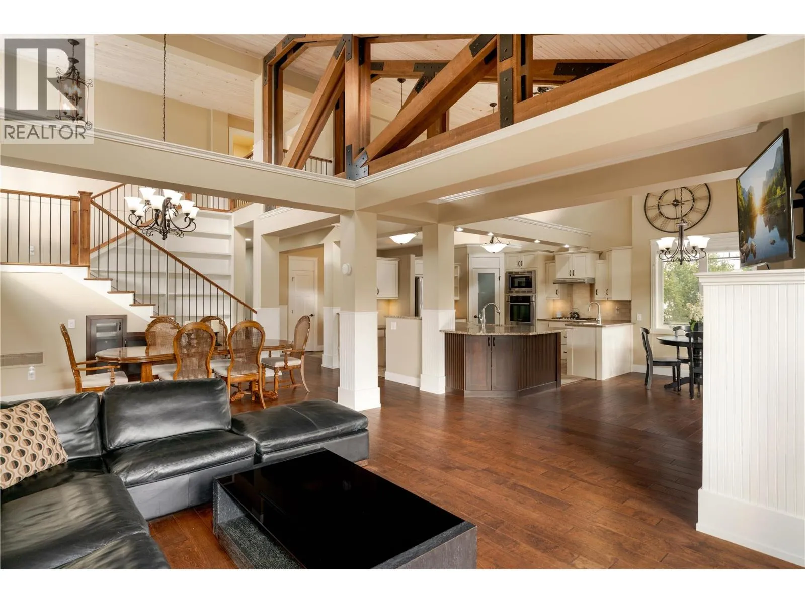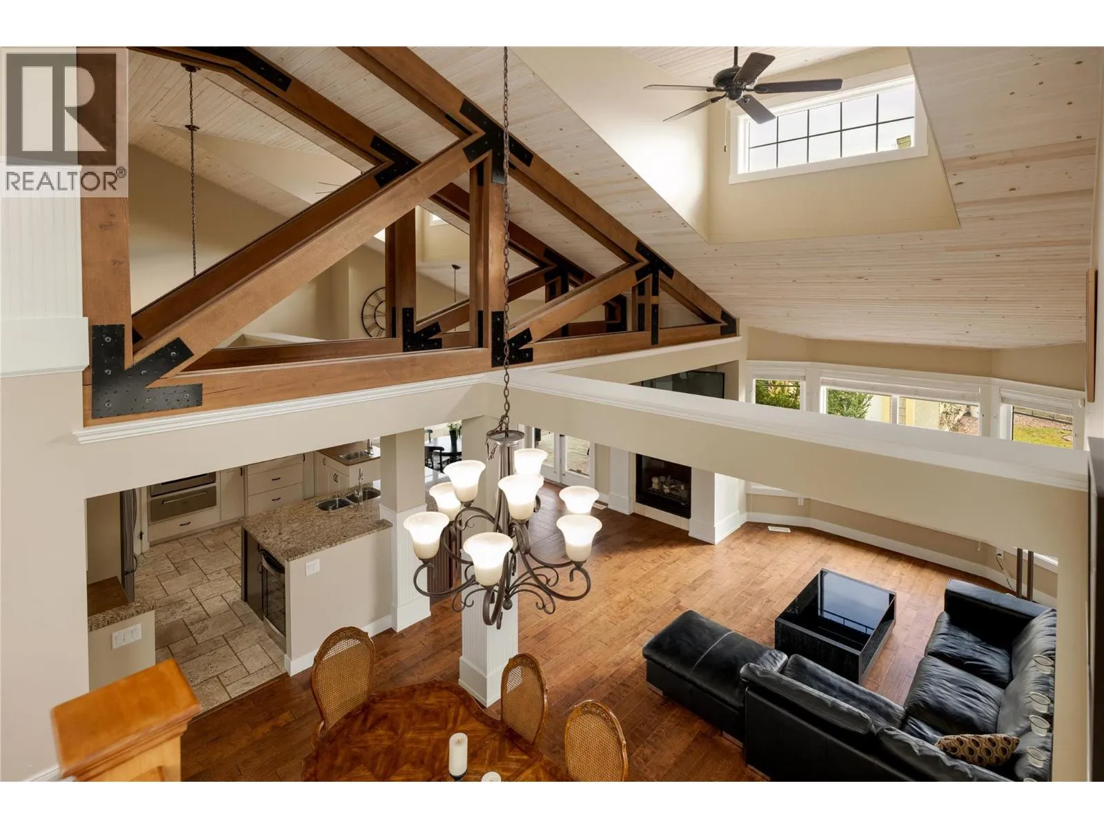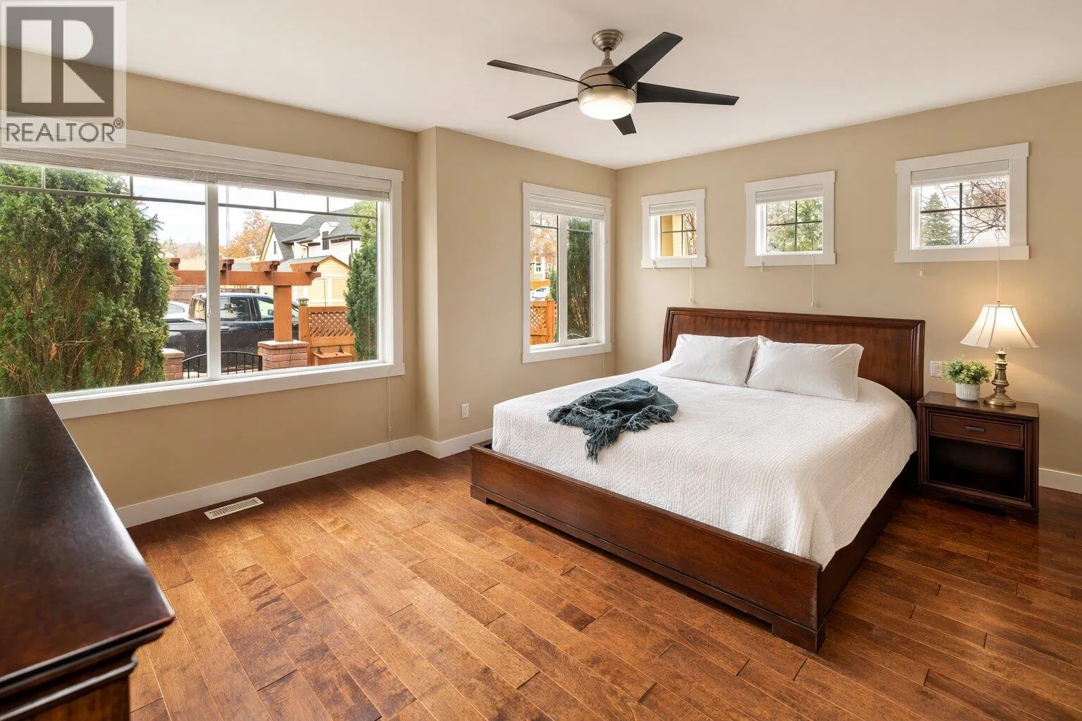 Centrally positioned just moments to shopping, parks, Kelowna General Hospital, & a short stroll to the sparkling shores of Lake Okanagan, this residence offers an exceptional blend of lifestyle, quality, & everyday convenience. Thoughtfully constructed with timeless architectural detail & solid craftsmanship, the home carries a quiet sense of confidenceâwell suited to an executive couple, physician, or those seeking refined lock-&-leave living. A spacious entry with soaring ceilings sets an impressive tone. The main level unfolds into an open-concept kitchen, living, & dining area where vaulted ceilings & striking wood beam accents add warmth & architectural presence. Expansive windows frame the space in natural light. The kitchen is designed for both function & gathering, featuring a generous island, pantry, Bosch appliances, & a prep sink. A breakfast nook transitions seamlessly to the covered deck, creating an effortless extension for seasonal entertaining. Anchored by a gas fireplace, the living room feels both elevated & inviting. The primary suite is generous in scale with dual walk-in closets & a beautifully finished ensuite complete with heated floors, dual vanities, & a soaker tub. A dedicated main-floor office with exterior access offers exceptional versatilityâideal for a home-based business, professional workspace, or easily utilized as an additional bedroom if desired. Main-level laundry & abundant storage enhance everyday practicality. Upstairs, built-in display shelving lines the wide stairwell leading to an open loft, one additional bedroom, a full bathroom, & a spacious family room with its own private patioâproviding thoughtful separation for guests. A large crawl space accommodates seasonal storage, & the detached double garage ensures secure parking. Just minutes from schools, dining, the hospital, & the lakeâthis home presents a rare balance of elevated living & daily convenience in one of Kelownaâs most desirable settings. (id:27476)