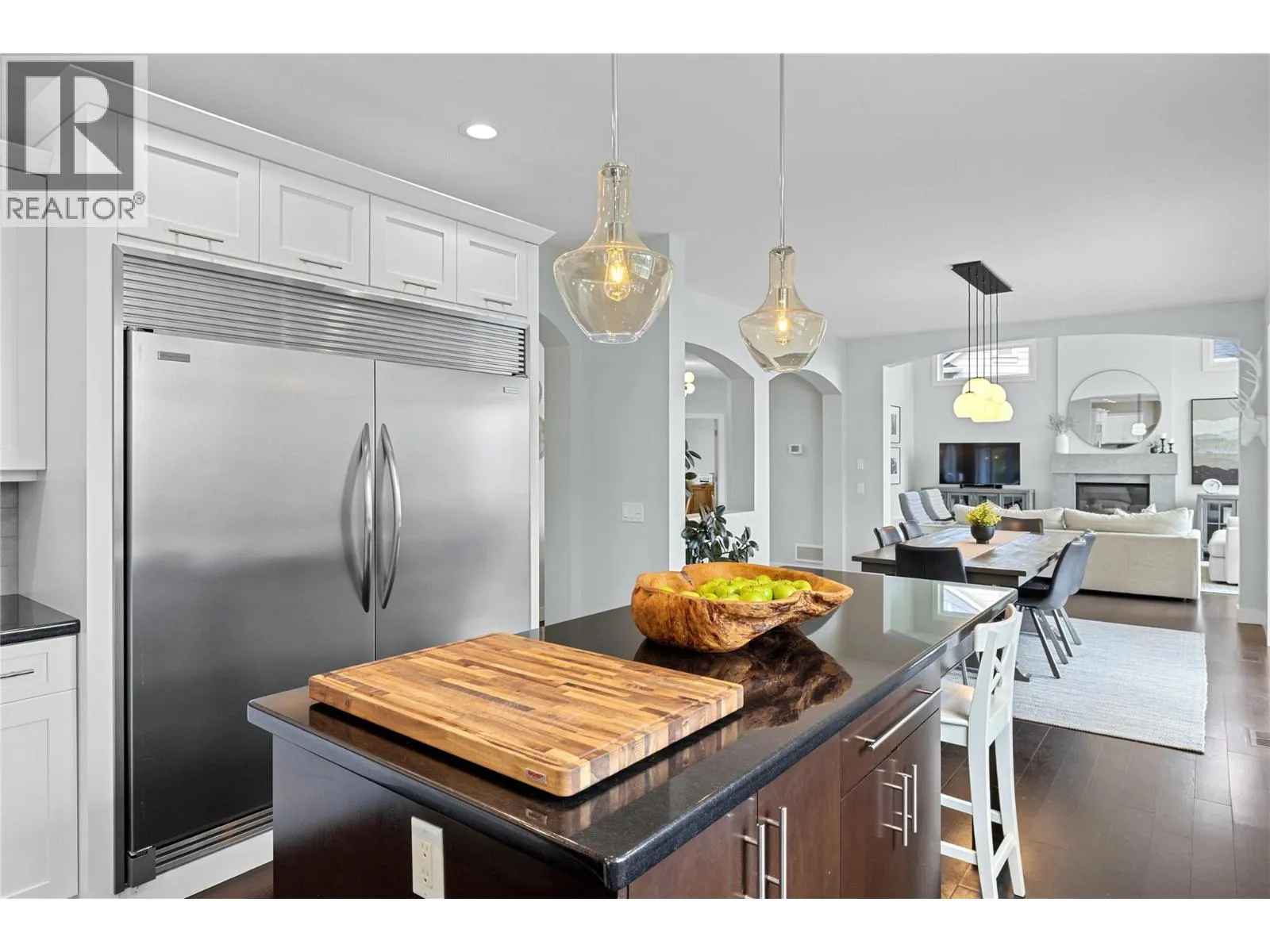 Experience elevated Kelowna living in this exceptional Kettle Valley home featuring breathtaking lake views, timeless design, and refined family living. This beautifully crafted 4-bedroom+den, 4-bathroom home blends elegance and comfort in one of Kelownaâs most sought after communities. Rich engineered hardwood floors lead through a bright, open concept layout designed for everyday living and entertaining. The stunning white chefâs kitchen anchors the home with a walk-in pantry, serving station, oversized fridge and freezer, gas range, and premium stainless steel appliances. The spacious great room opens seamlessly to a generous lake view deckâperfect for sunset dinners and outdoor entertaining. The serene primary retreat features a dramatic double-sided fireplace shared with the spa inspired ensuite, complete with double vanities, a walk-in shower, and a luxurious soaker tub. Thoughtful upgrades include a gym area, central vacuum, water filtration system, hot water on demand, and a covered hot tub for year-round relaxation. Step outside to an expansive lakeview backyard with endless potential. The oversized double garage offers plenty of room for vehicles, bikes, and all your Okanagan lifestyle gear. Situated on a quiet street in the prestigious Kettle Valley neighbourhood, this home is just steps to parks, scenic trails, and top rated schools. Move in, relax, and ENJOY KELOWNA LIFE. (id:27476)