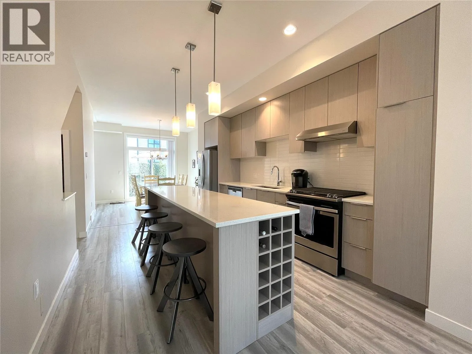 Stop scrolling. This is the opportunity buyers wait for. Priced well below the two most recent sales in the complex and over $30K what was paid a few years ago, this North Glenmore townhome delivers rare value in a community where listings donât last long. Inside, youâll find a modern kitchen with quartz countertops, gas range, under-cabinet lighting, and built-in wine storage, because grown-up homes should still be fun. The open-concept living space flows onto a sunny deck with BBQ hookup, perfect for summer evenings, weekend grilling, and unwinding after work. Upstairs features a generous primary suite with walk-through closet and ensuite, two additional bedrooms, and upper-level laundry (no more hauling baskets up and down stairs). Downstairs, a versatile flex room easily becomes a fourth bedroom, home office, gym, or kidsâ zone. Now for the unicorn feature: this is a truly pet-friendly complex. Bring two dogs or two cats, with no size or breed restrictions. Big dogs, little dogs, floofy cats, rescue mutts, couch potatoes, zoomie champions, all welcome here. Try finding that elsewhere. Located steps from parks, schools, shops, and restaurants, this home offers comfort, convenience, and long-term value in one smart package. This is your chance to buy well in North Glenmore. Book your showing before someone elseâs dog beats you to it. (id:27476)