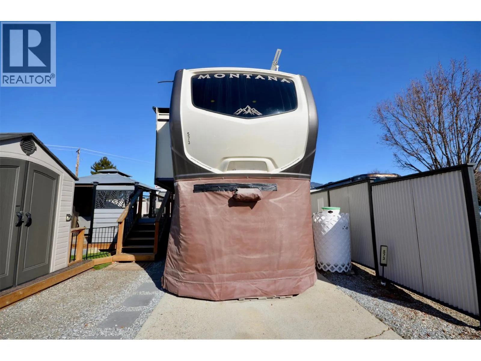 Enjoy resort-style living in the gated community of Holiday Park Resort. Site 573 features a 2,206 sq ft lot with thoughtfully designed outdoor living spaces ideal for relaxing and entertaining. The property includes a spacious platform deck that connects to an elevated deck with railing, creating a welcoming outdoor setting. Two storage sheds provide convenient space for storage, tools, and recreational gear. Residents enjoy access to an impressive selection of resort-style amenities including an indoor pool, three outdoor pools, three hot tubs, pickleball courts, putting green, fitness centre, library, billiards room, hair salon, restaurant, and year-round social activities. The nearby Rail Trail offers easy access to biking and scenic walking paths. Conveniently located near Kelowna and University of British Columbia Okanagan, as well as wineries, golf courses, shopping, and year-round recreation. There is no Property Transfer Tax, and both short-term and long-term rentals are permitted. (id:27476)