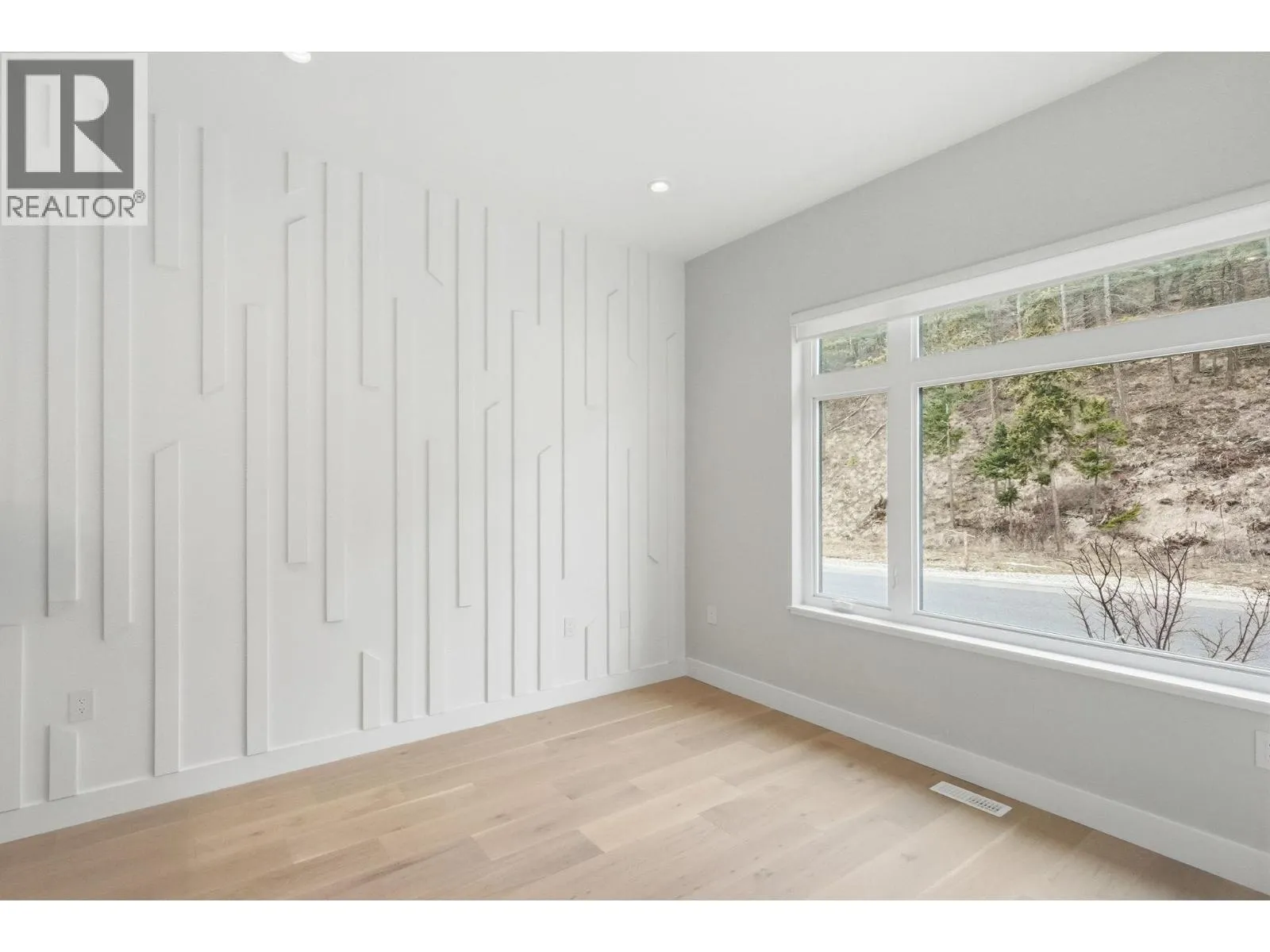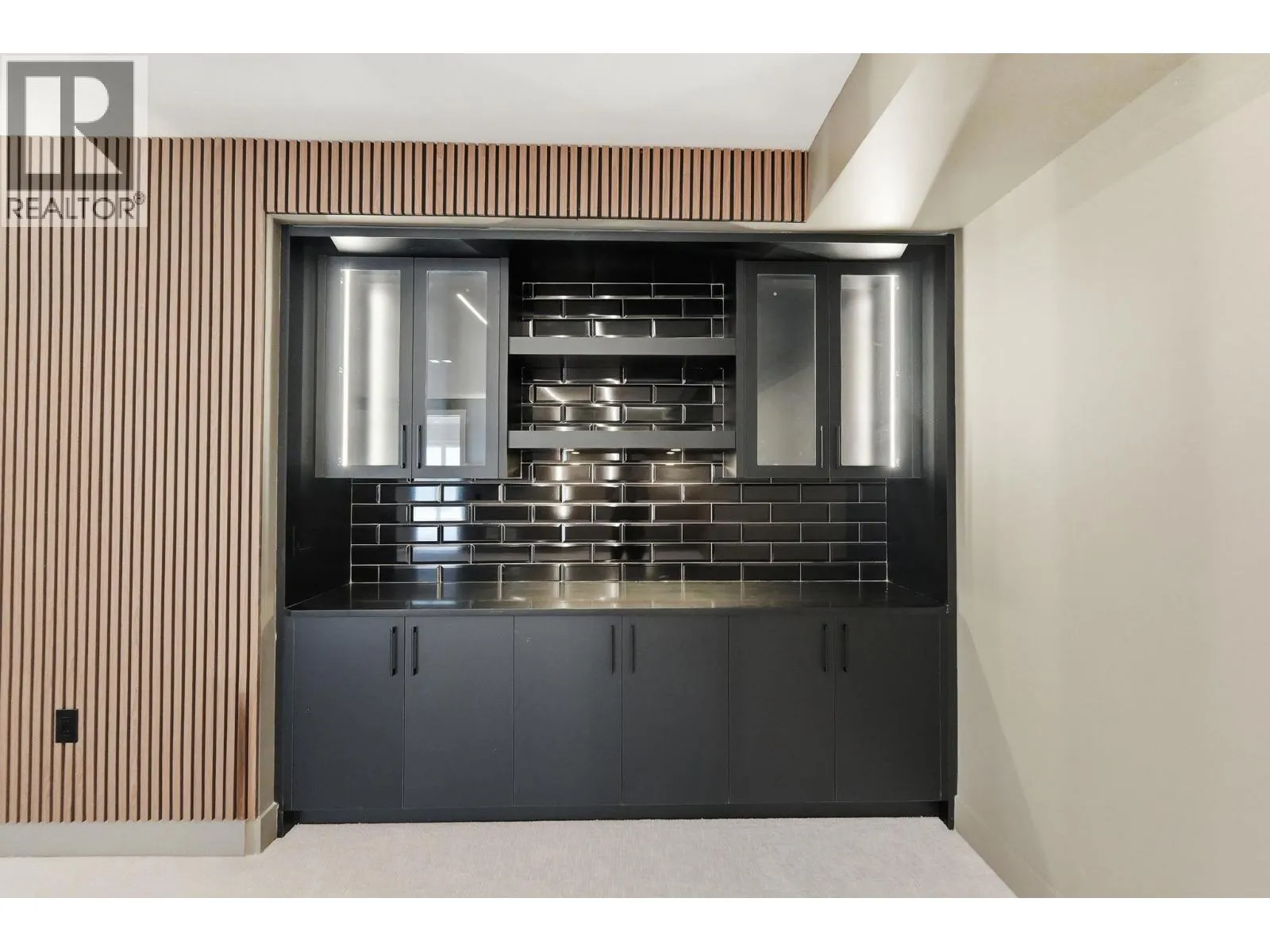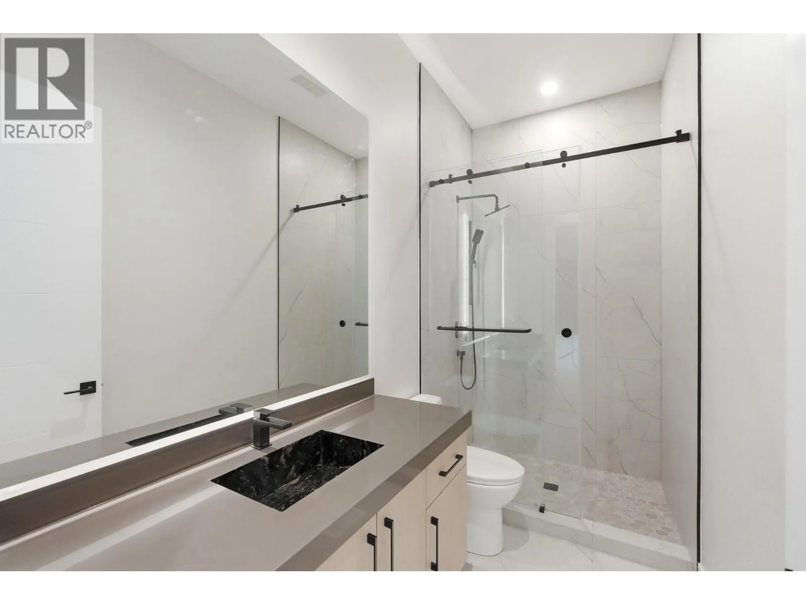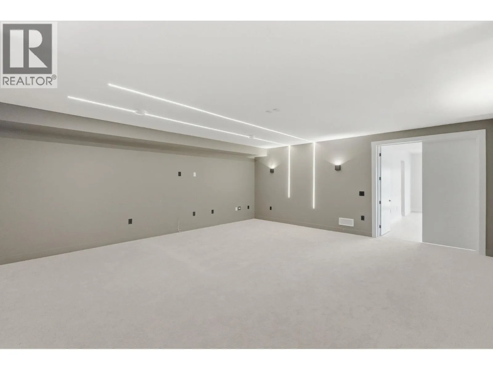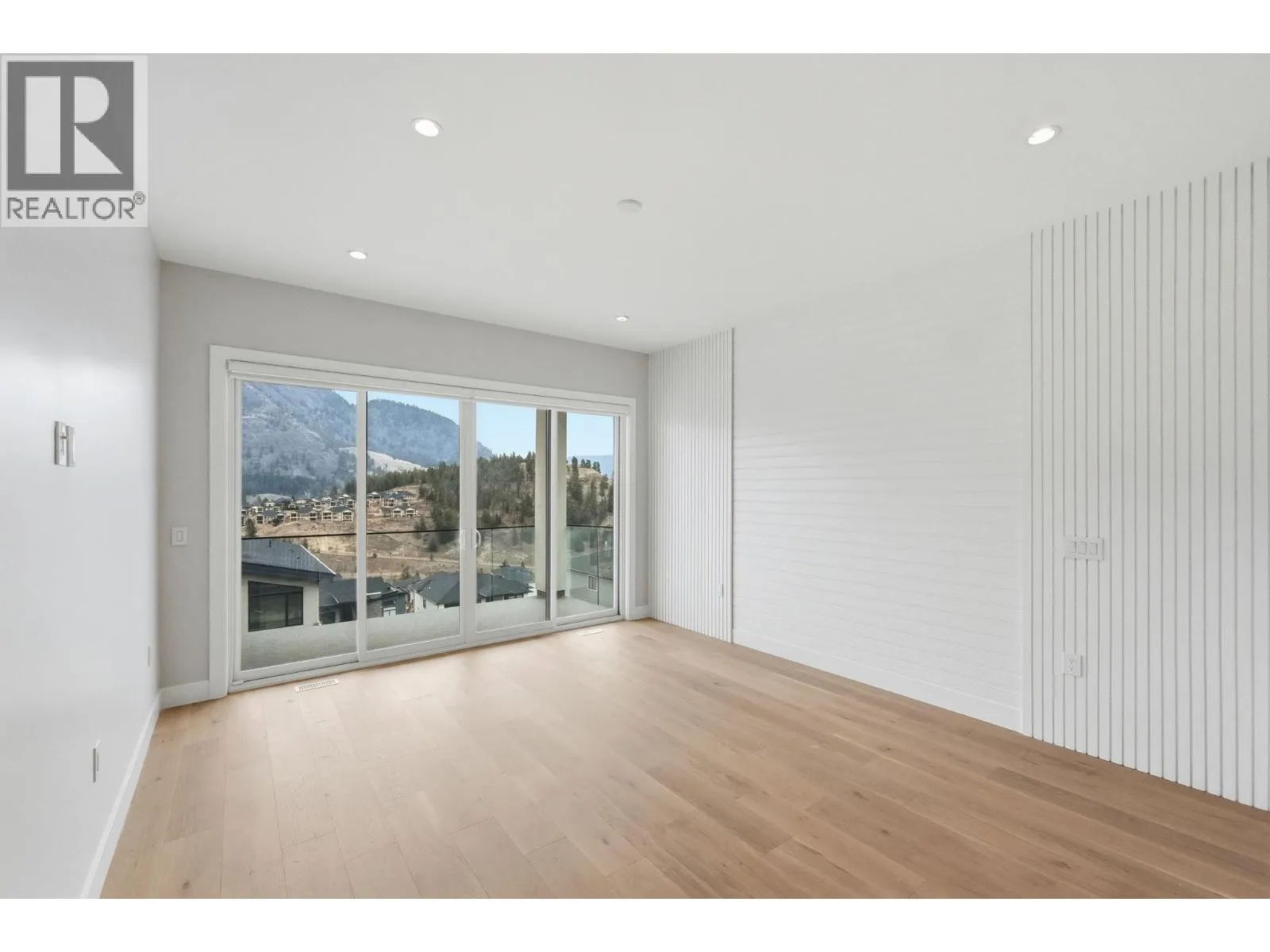 Perched on the hillside in desirable Black Mountain, this exceptional 6-bedroom, 4-bathroom residence offers stunning valley views, thoughtful design, and modern luxury throughout. Expansive windows flood the home with natural light, complemented by elegant lighting selections that allow you to set the perfect atmosphere day or night. The main living area features engineered hardwood flooring and a beautifully designed chefâs kitchen equipped with premium Electrolux appliances, a gas range, and an oversized chefâs refrigerator. A fully equipped spice kitchen provides additional space for cooking and entertaining while keeping the main kitchen pristine. Upon entry, a striking custom glass display above the staircase, crafted with a single joint, creates a dramatic focal point and enhances the homeâs open feel. The layout flows seamlessly from the kitchen and living area onto a balcony with its own fireplace which is perfect for enjoying Okanagan evenings. Downstairs offers a spacious second living area, two additional bedrooms, and an impressive 23 ft x 23â6â theatre room complete with a built-in bar. The property also includes a private 2-bedroom suite currently rented for $2,000 per month, positioned along the side of the home to maximize privacy. Additional features include a double garage with epoxy flooring, irrigated landscaping, a generous backyard, and the added benefit of GST being paid by the seller. (id:27476)