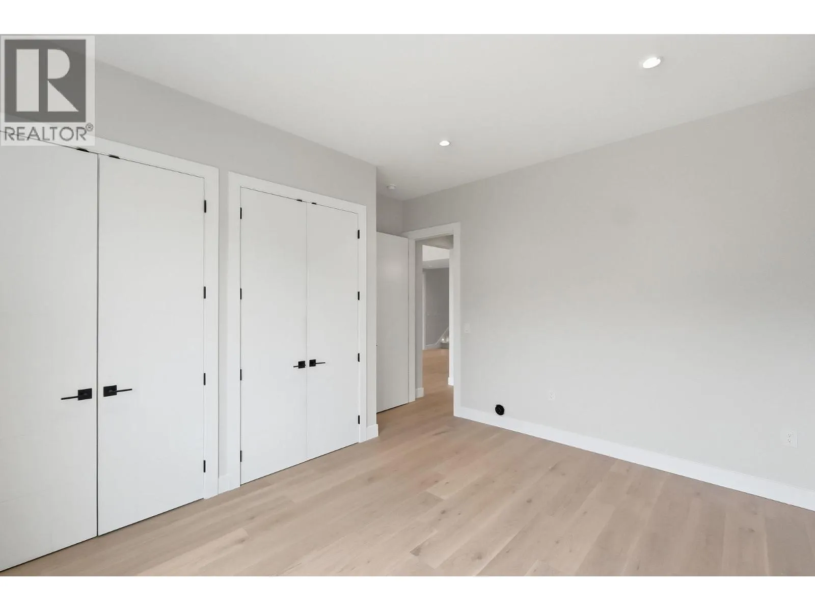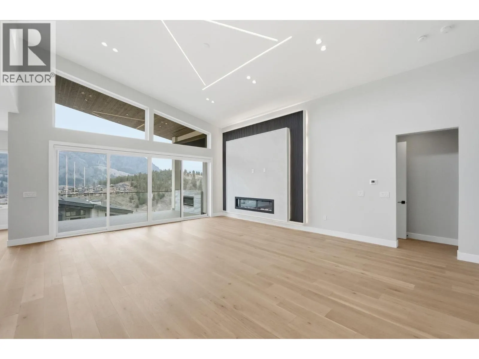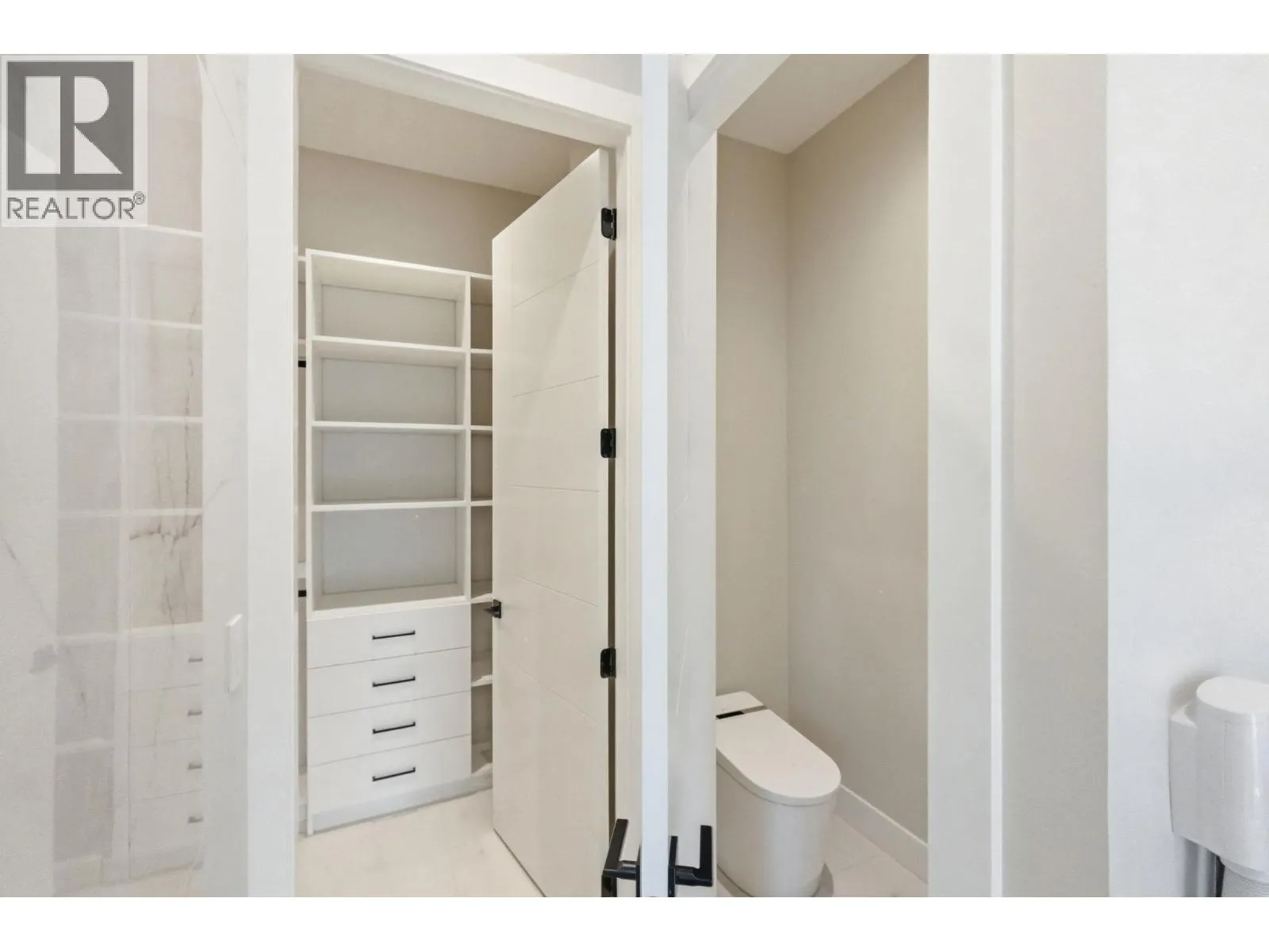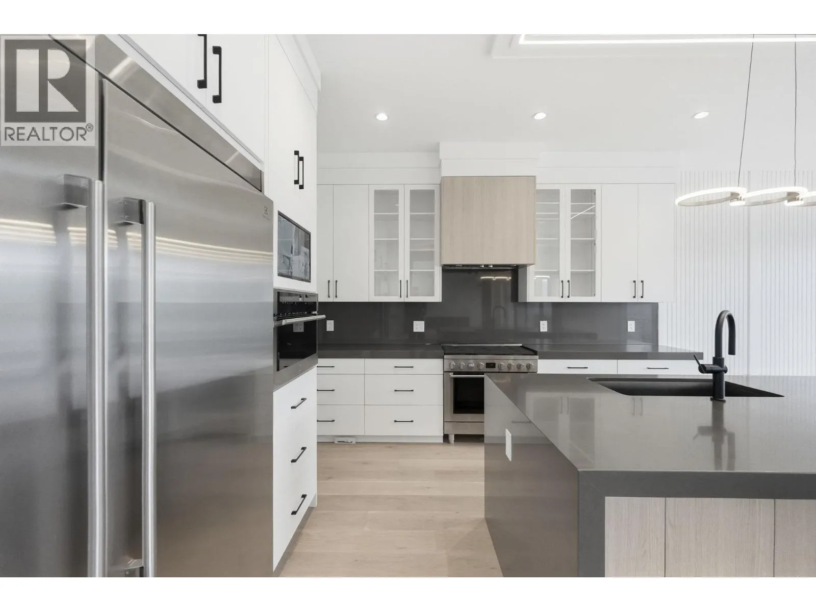 Perched on the hillside in desirable Black Mountain, this exceptional 6-bedroom, 4-bathroom residence offers stunning valley views, thoughtful design, and modern luxury throughout. Expansive windows flood the home with natural light, complemented by elegant lighting selections that allow you to set the perfect atmosphere day or night. The main living area features engineered hardwood flooring and a beautifully designed chefâs kitchen equipped with premium Electrolux appliances, a gas range, and an oversized chefâs refrigerator. A fully equipped spice kitchen provides additional space for cooking and entertaining while keeping the main kitchen pristine. Upon entry, a striking custom glass display above the staircase, crafted with a single joint, creates a dramatic focal point and enhances the homeâs open feel. The layout flows seamlessly from the kitchen and living area onto a balcony with its own fireplace which is perfect for enjoying Okanagan evenings. Downstairs offers a spacious second living area, two additional bedrooms, and an impressive 23 ft x 23â6â theatre room complete with a built-in bar. The property also includes a private 2-bedroom suite currently rented for $2,000 per month, positioned along the side of the home to maximize privacy. Additional features include a double garage with epoxy flooring, irrigated landscaping, a generous backyard, and the added benefit of GST being paid by the seller. (id:27476)