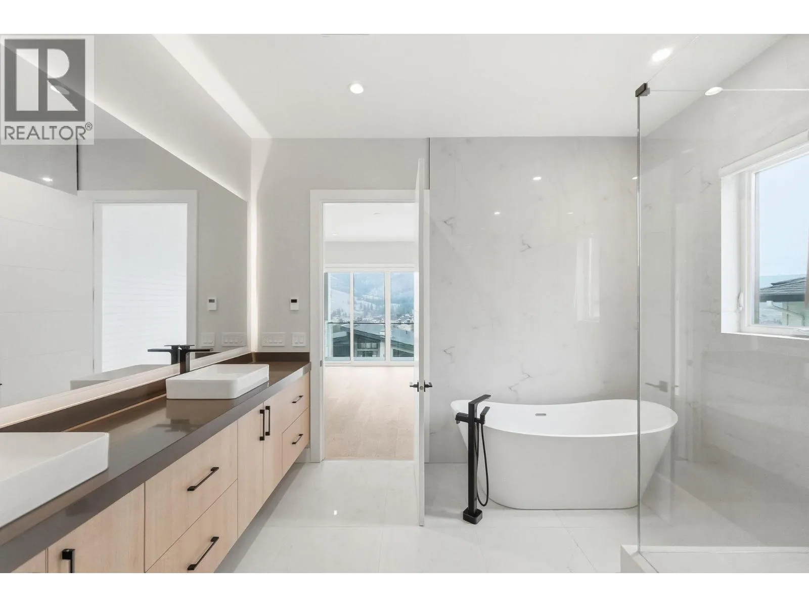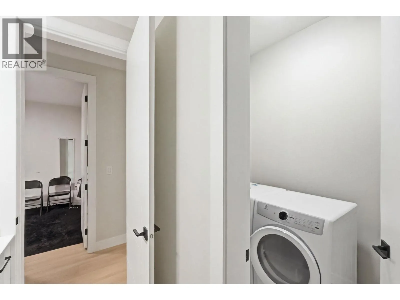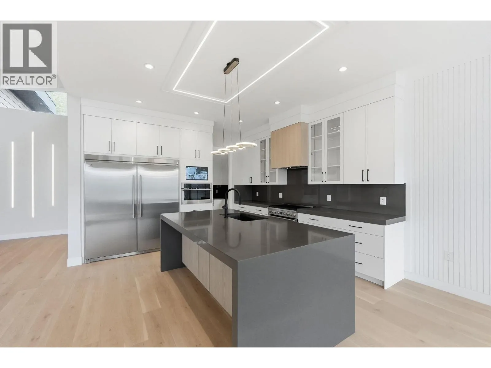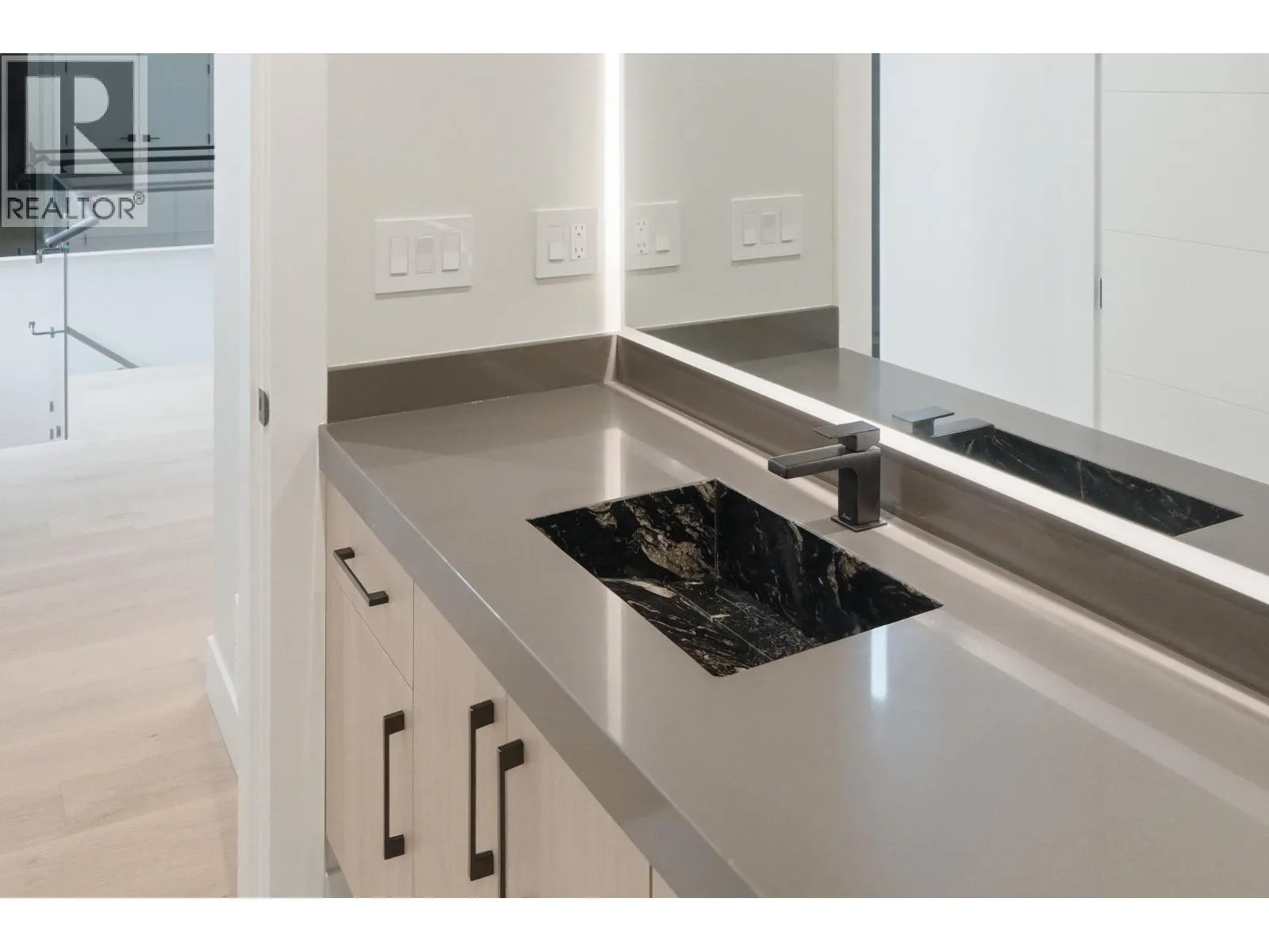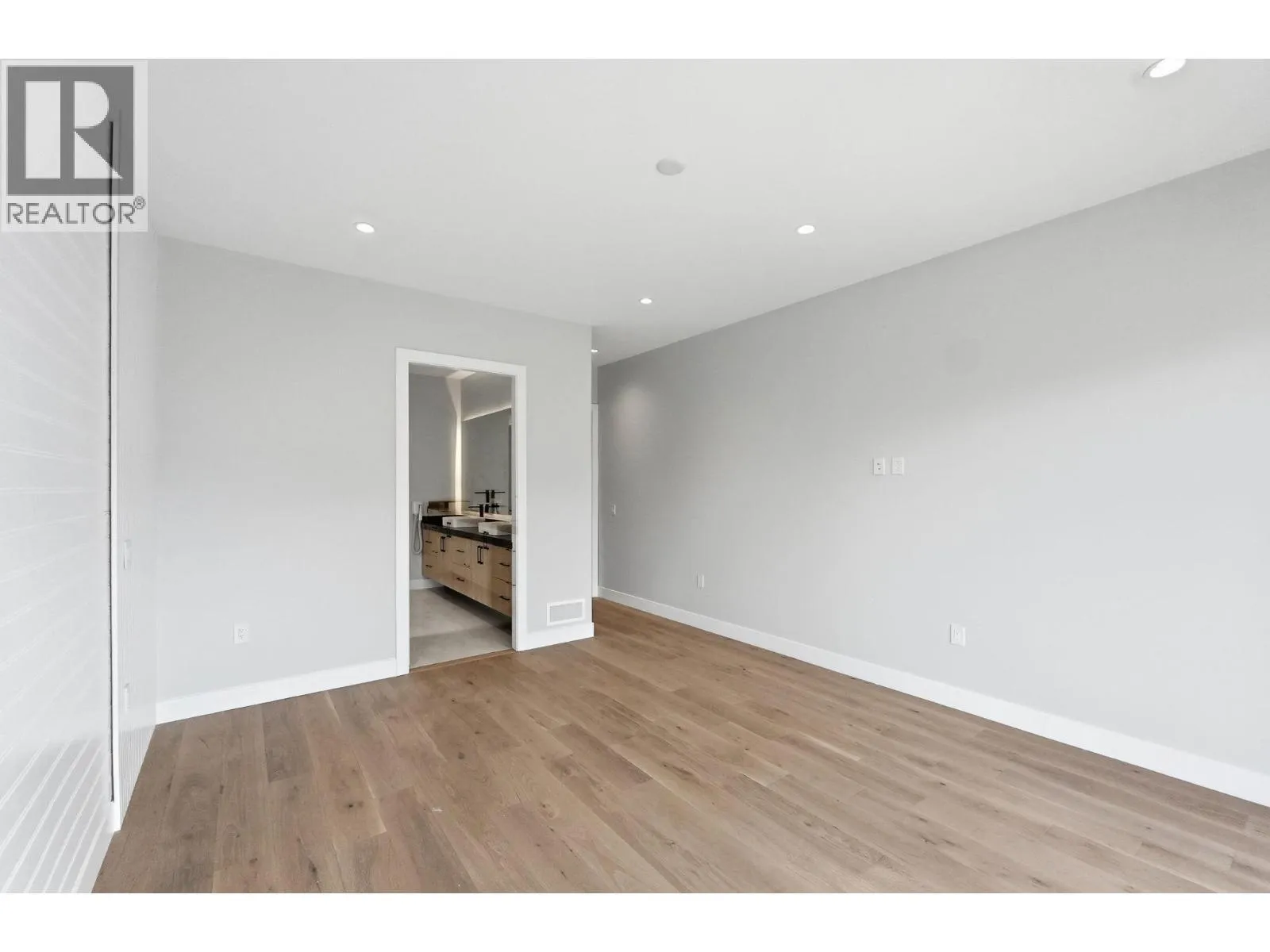 Perched on the hillside in desirable Black Mountain, this exceptional 6-bedroom, 4-bathroom residence offers stunning valley views, thoughtful design, and modern luxury throughout. Expansive windows flood the home with natural light, complemented by elegant lighting selections that allow you to set the perfect atmosphere day or night. The main living area features engineered hardwood flooring and a beautifully designed chefâs kitchen equipped with premium Electrolux appliances, a gas range, and an oversized chefâs refrigerator. A fully equipped spice kitchen provides additional space for cooking and entertaining while keeping the main kitchen pristine. Upon entry, a striking custom glass display above the staircase, crafted with a single joint, creates a dramatic focal point and enhances the homeâs open feel. The layout flows seamlessly from the kitchen and living area onto a balcony with its own fireplace which is perfect for enjoying Okanagan evenings. Downstairs offers a spacious second living area, two additional bedrooms, and an impressive 23 ft x 23â6â theatre room complete with a built-in bar. The property also includes a private 2-bedroom suite currently rented for $2,000 per month, positioned along the side of the home to maximize privacy. Additional features include a double garage with epoxy flooring, irrigated landscaping, a generous backyard, and the added benefit of GST being paid by the seller. (id:27476)