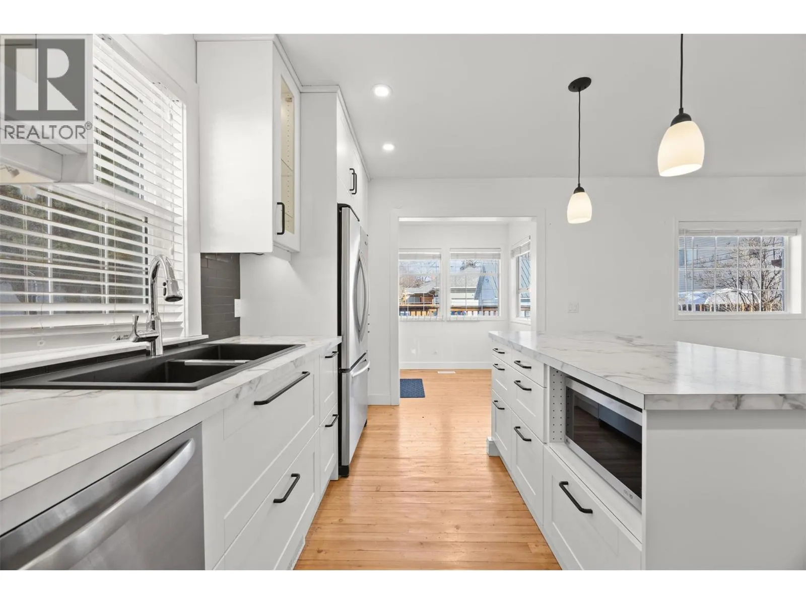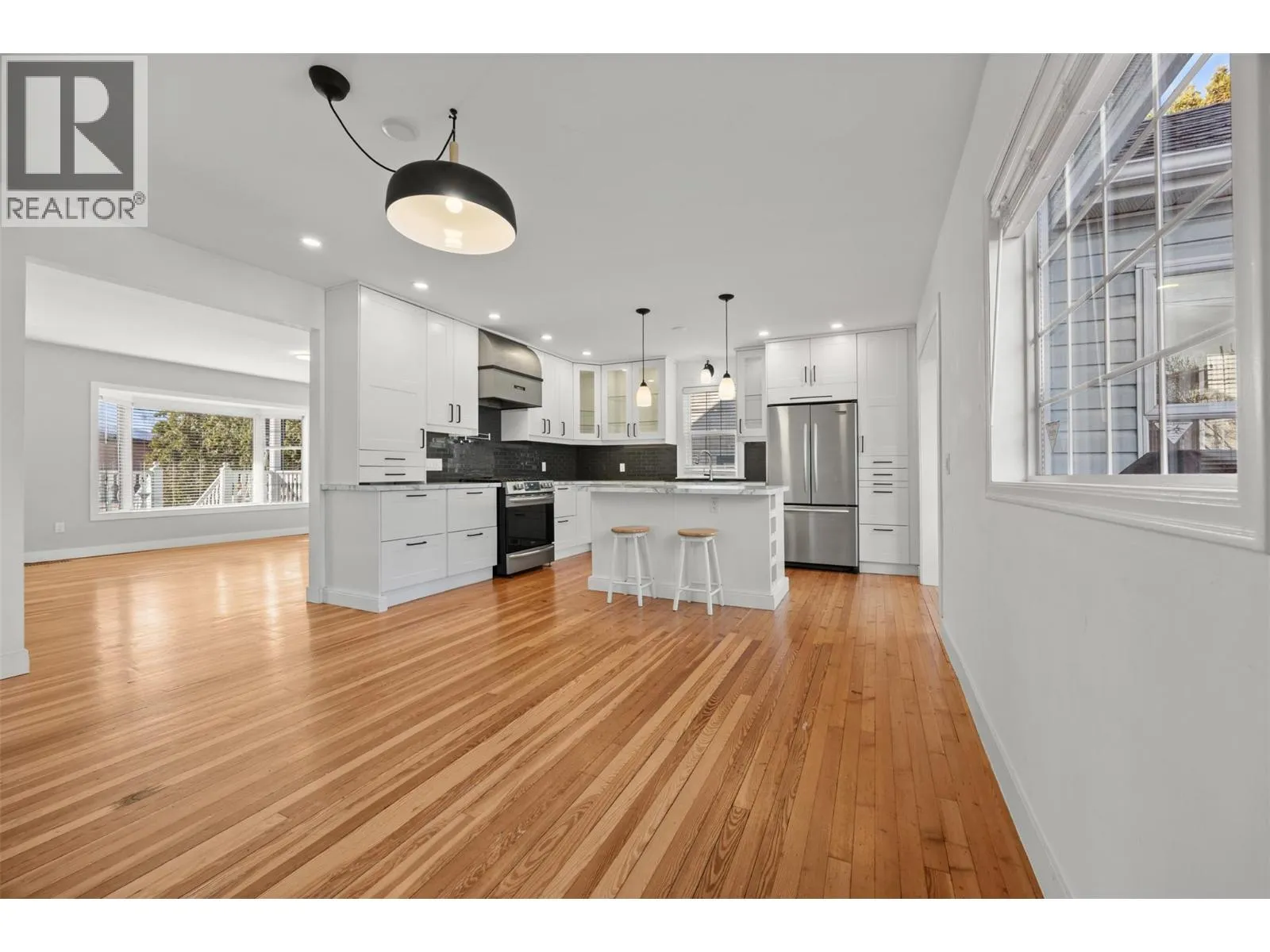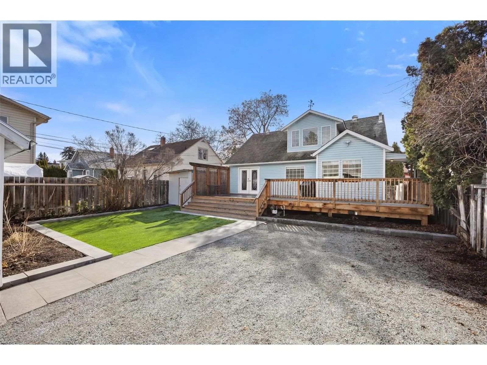Discover this bright and inviting 4-bedroom, 2-bathroom home located in the heart of the highly sought-after Kelowna South neighborhood. Filled with character and modern updates, this south-facing property is situated on a RU6 zoned lot with carriage house potential. The home welcomes you through a bright foyer leading into a spacious living room. The modernized, airy kitchen features a door opening directly to the backyard. The main floor includes two well-sized bedrooms, one of which features french doors leading to the deck. Upstairs, you will find the primary bedroom, an additional bedroom, and a bathroom. The basement offers a finished den/flex room, laudry, while the remaining unfinished space provides a versatile area for a workshop or games room. You can enjoy entertaining outdoors on the large deck and appreciate maintenance-free living with synthetic turf in both the front and back yards. Parking & Storage includes a single-car garage 17'by 20'11"", a large shed, and a driveway with room for four cars or an RV. The laneway access offers future potential for a carriage home. Recent Updates include the AC and furnace that were replaced in 2017, and a new irrigation system was installed in 2023. The location is perfect as you are a short stroll from Kelownaâs best attractions, including pristine beaches, trendy restaurants, Pandosy Village, Okanagan College, downtown and the hospital. Outdoor enthusiasts will also appreciate the proximity to the Sutherland Transportation corridor. (id:27476)