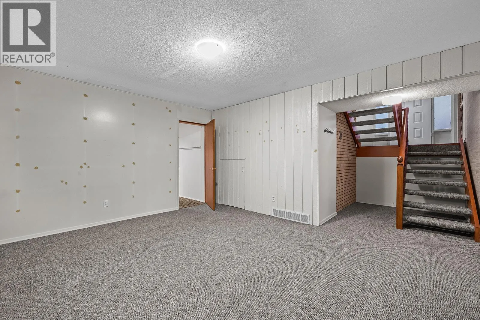 MID CENTURY MODERN. Spacious 5-bedroom family home on a generous 0.18-acre lot, located just minutes from the highly desirable downtown Kelowna. Whether youâre seeking a home with room for a growing family or a renovation project with remarkable upside potential, this property delivers endless possibilities. Upon entering this bi-level style home, you step into a spectacular family room is anchored by a wood-burning fireplace, offering a cozy focal point during the cooler months. The upper floor is designed with functionality as it features two bedrooms positioned to accommodate families or guests. The master bedroom includes its own ensuite, providing privacy & convenience, while the second full bathroom serves both the additional bedroom & common living areas. Whether you envision stylish modern upgrades or prefer to keep the homeâs original charm, this level offers a fantastic layout upon which to build your dream design. The kitchen & dining areas are full of potential, ready for a creative vision to transform them into the heart of the home. With the generous footprint available, your vision can come to life in this large property. Downstairs, the lower level extends the homeâs impressive flexibility with 3 additional bedrooms & 1 full bathroom. This layout is ideal for large families, multi-generational living, or creating separate spaces for guests/hobbies/home office. The 0.18-acre lot provides abundant outdoor space. Set in a peaceful, family-friendly neighborhood, the yard offers a secure/welcoming environment for children/pets. With solid bones, exceptional lot size, & unbeatable location, it is truly a rare opportunity in todayâs market. This was the well loved home of Bert Tisher and family. Bert was a locally known building designer who created designs for iconic buildings in Kelowna during the 1970-1990s. These include Evangel Tabernacle, Grace Baptist, Springfield Funeral, and Trinity Baptist. He also designed many private residences in the Okanagan. (id:27476)