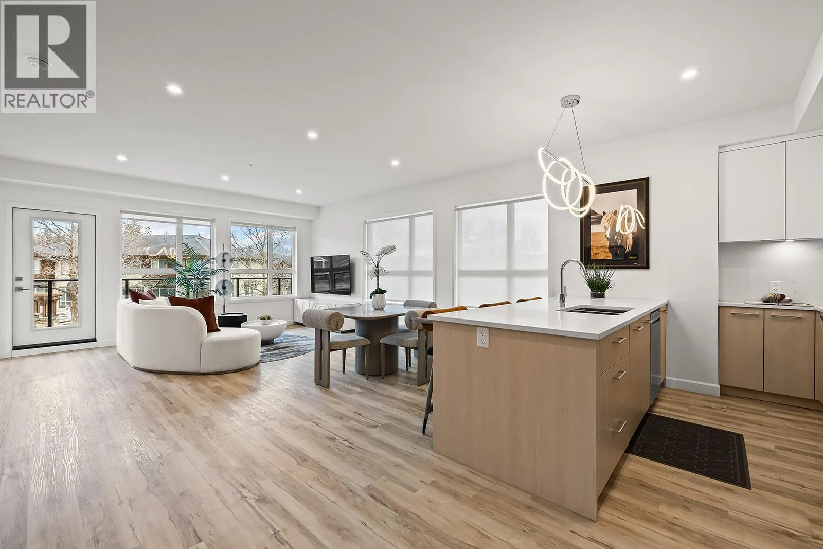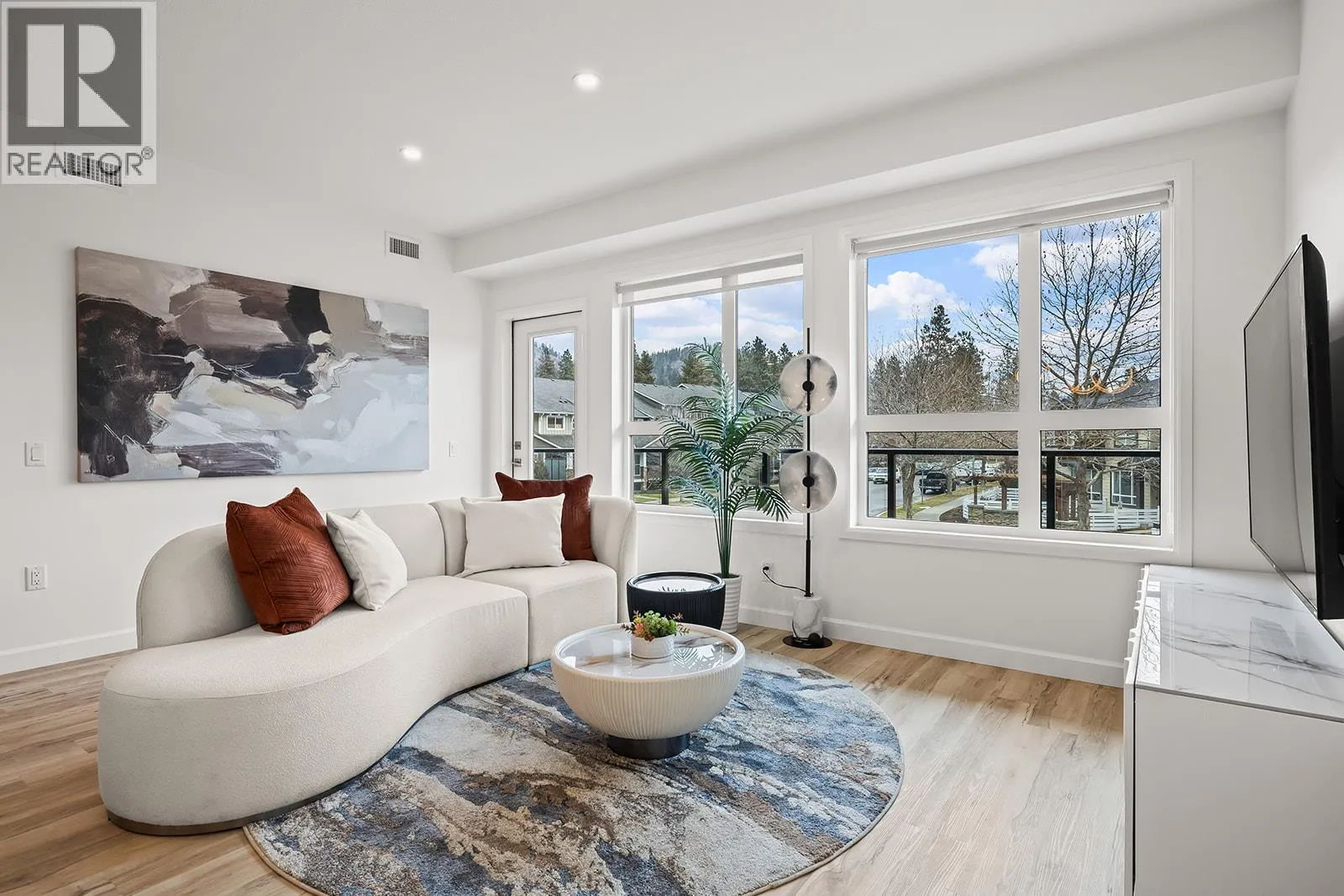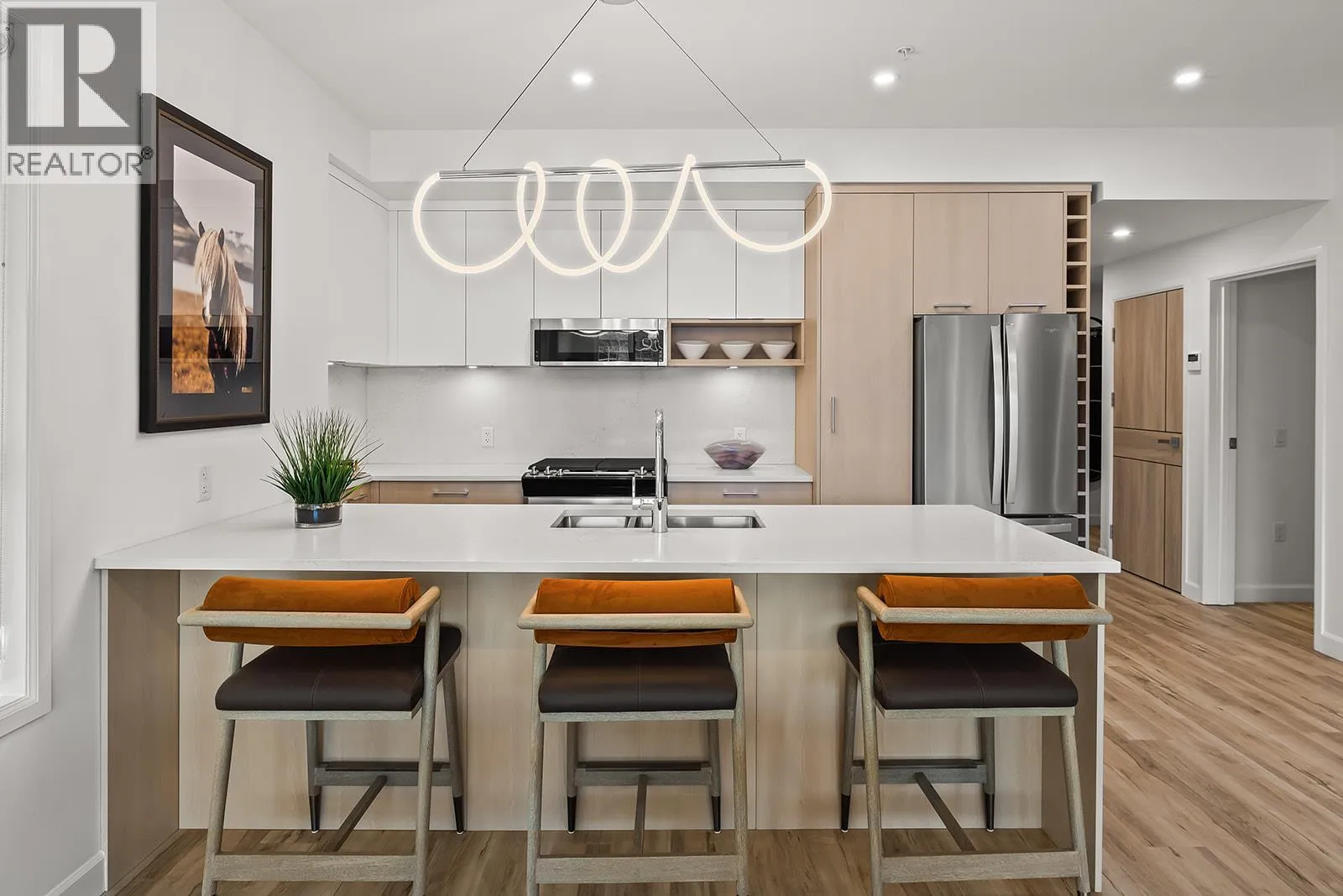 Brand New. Move-In Ready. And anything but ordinary. Welcome to Eminence at Knox Mountain. This 2-bed + Den, 2-bath Front Corner home, located next to the lobby/elevator offers approx. 1,166 sqft of smart, sophisticated living. Inside, 9-ft ceilings & expansive windows create a bright, open feel. The Earth colour palette interior blends warm wood tones, striking black accents & glass balcony features. A premium Kitchen with 2-tone cabinetry, quartz countertops, stainless steel appliances, a gas range & a unique wine storage feature. An in-suite laundry room adds convenience, while designer LED lighting, a statement entry door, solid-core interior doors, bathroom wall tiled in the ensuite, & custom shelving & closet solutions complete the polished finish. Youâll also enjoy underground parking with your own private bike cage. The buildingâs common rooftop viewing terrace gives all new meaning to Kelownaâs Patio Season. Pet-friendly & Nature at your doorstep with direct access to Knox Mountainâs hiking & biking trails. Downtown Kelowna and Glenmore are minutes away. Buy new & save. Eligible buyers may qualify for the Property Transfer Tax exemption & the upcoming 1st time home buyer GST exemption & remaining homes include up to $100k in built-in savings from original pricing. If you want a designer condo youâll genuinely love coming home to, this one checks all the boxes. Move-In Ready 1-Bed to 2-Bed + Den homes available. Sales Centre open Saturday 12-4pm or by appointment. (id:27476)