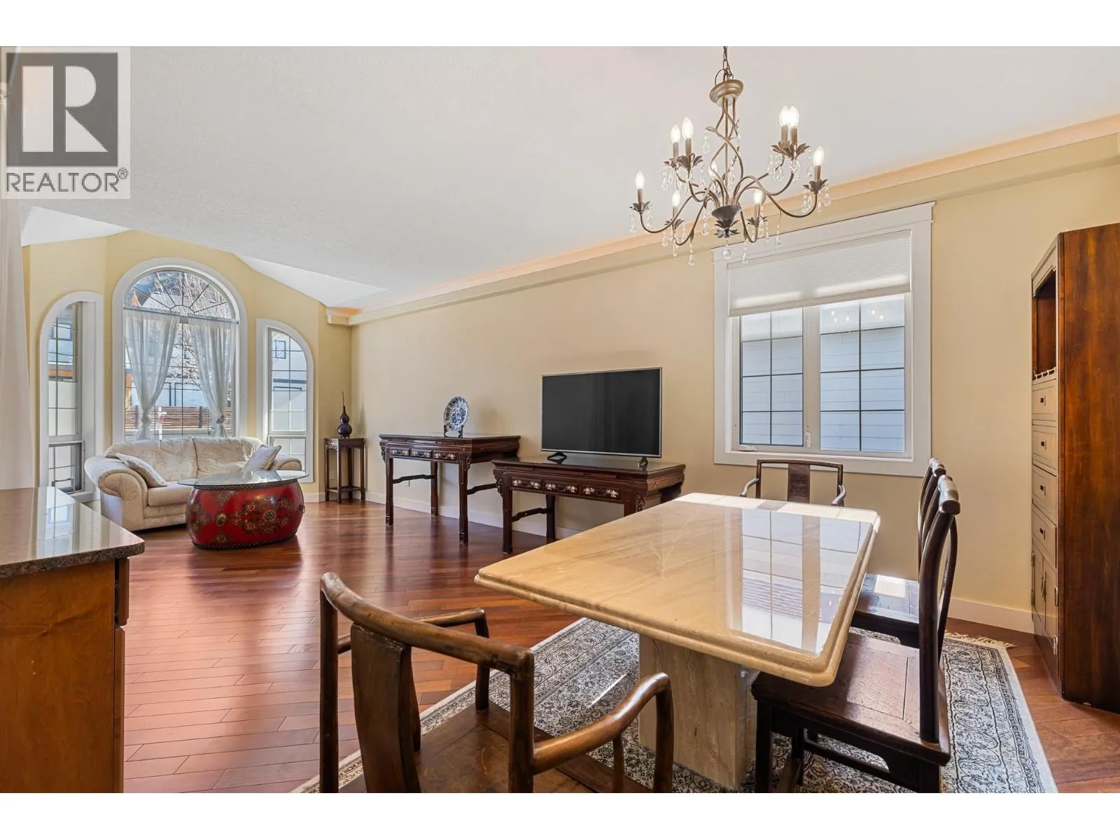 Welcome to this amazing family home in the sought-after Dilworth Mountain community! This residence offers 5 bedrooms and 5 bathrooms, including a spacious 2 bedroom in-law suite, ensuring plenty of room for comfortable living. Step inside to discover elegant valance lighting that enhances the home's warm and inviting ambiance. The open-concept kitchen and living area showcases breathtaking views of the city skyline and Okanagan Lake. The main floor also features a primary suite complete with a full ensuite, walk-in closet, and deck access, a second bedroom, laundry room, and a family room with a formal dining space. The top floor boasts a charming loft bedroom with its own bathroom and closet space, offering privacy and versatility. Downstairs, the lower level is designed for entertainment, featuring a wet bar and direct access to the fully fenced backyard - an ideal space with room for a pool or garden. This level also hosts the large 2-bedroom in-law suite, equipped with private laundry and ample storage. Additional highlights include an advanced HVAC UV system that purifies the air and reduces odors, enhancing your indoor air quality. Donât miss this incredible opportunity to call this property home! (id:27476)