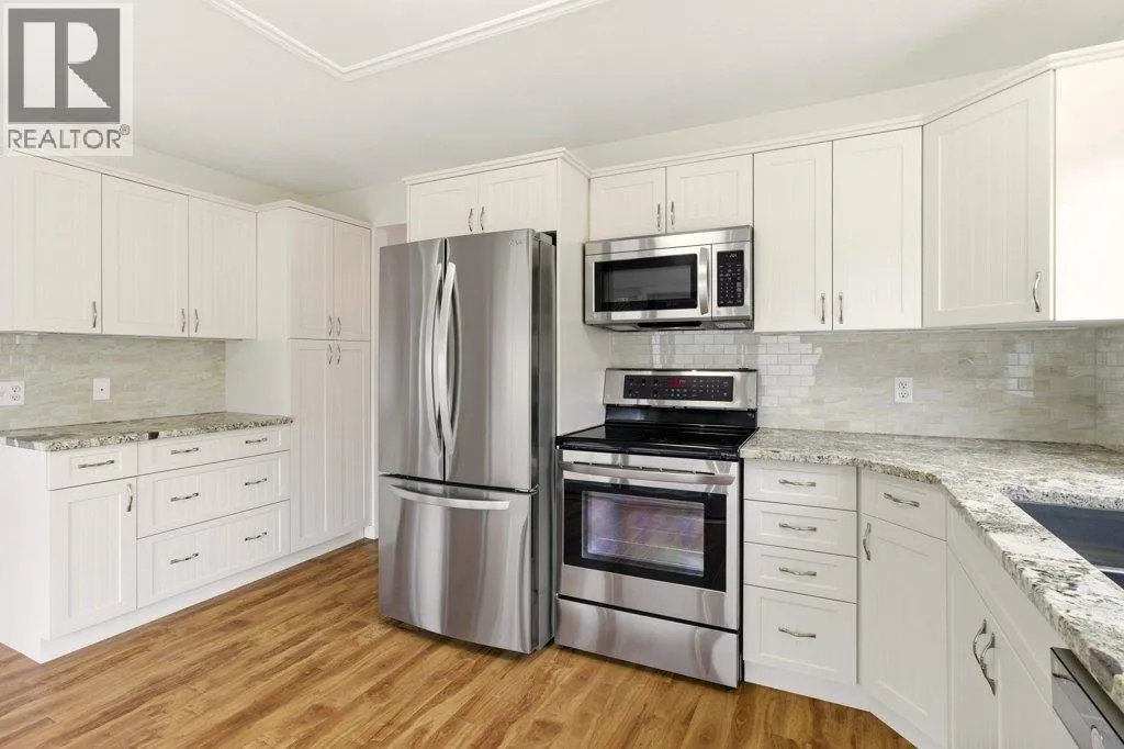 IMMEDIATE POSSESSION AVAILABLE!!! All Poly B plumbing has been removed, a brand new hot water tank has been installed, and the home has been freshly painted - ready for you to move right in! Beautifully maintained and immaculately clean this 2 bdrm/2bath home features a bright white kitchen with granite countertops, under cabinet lighting and stainless steel appliances. The spacious primary bedroom includes a walk-in closet and full ensuite, while the main bathroom offers a wheelchair accessible walk-in shower. Enjoy the comfortable family room off the kitchen with a cozy fireplace, large windows that bring in plenty of natural light, laminate flooring and updated light fixtures. Step outside to a private backyard with a spacious covered patio perfect for relaxing or entertaining. This 55+ gated community features beautifully landscaped grounds with tranquil water features as well as a clubhouse with indoor and outdoor pools and a hot tub. Pet restrictions: Up to 2 dogs, 2 cats, or 1 of each with a maximum height of 15"" at the shoulder. Located in one of Kelowna's most sought after retirement communities, this home offers comfort, convenience and a fantastic lifestyle! (id:27476)