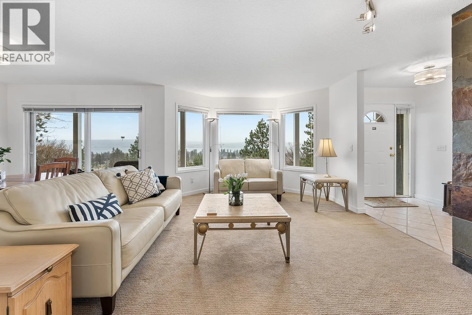 Panoramic Okanagan Lake views highlight this spacious 4-bedroom Lower Mission home on a private lane, set on a rare 0.35 acre lot on Westpoint Drive. This well-maintained two-storey home offers approx. 2,400 sq.ft. with four spacious bedrooms upstairs, each enjoying lake views - a rare feature capturing the Okanagan lifestyle. The primary suite features a private balcony overlooking the lake, large walk-in closet, ensuite, and a unique 8.5â x 10â office or nursery with full window - ideal for a home office, dressing room, or nursery. The main level includes a versatile flex room perfect for an office, den, or playroom. Set on a generous 0.35 acre lot, the fully fenced backyard offers space for outdoor living, gardening, or a future pool. Mature apricot and peach trees add charm to the yard. Recent updates include fresh interior paint, new lighting fixtures, and a roof approx. 5 years old. With strong bones, a functional layout, and breathtaking lake views, this home offers an excellent opportunity to update the kitchen and bathrooms and create a spectacular Lower Mission residence. Located minutes from top schools, beaches, parks, wineries, and amenities, this is a rare chance to secure a view property in one of Kelownaâs most desirable neighbourhoods. (id:27476)