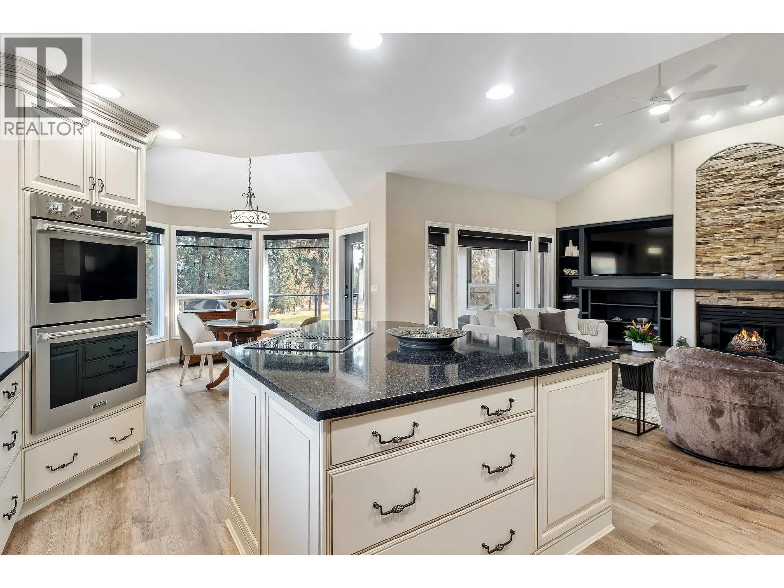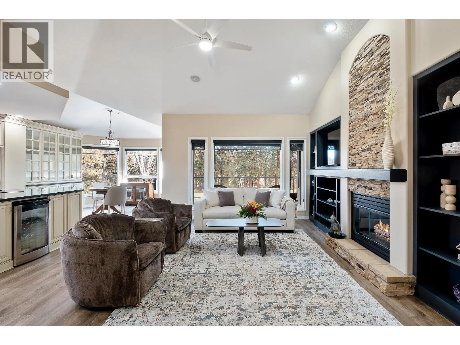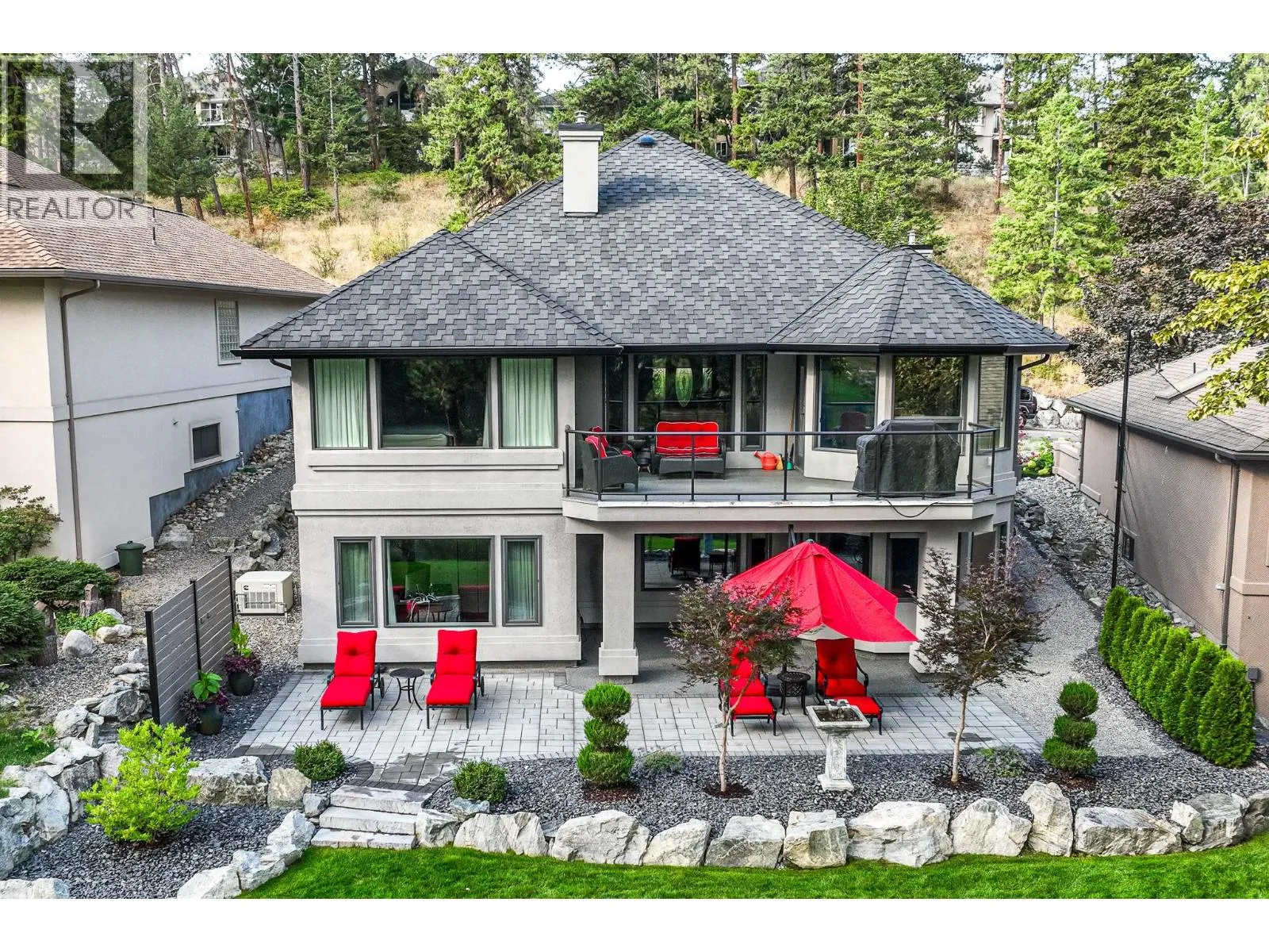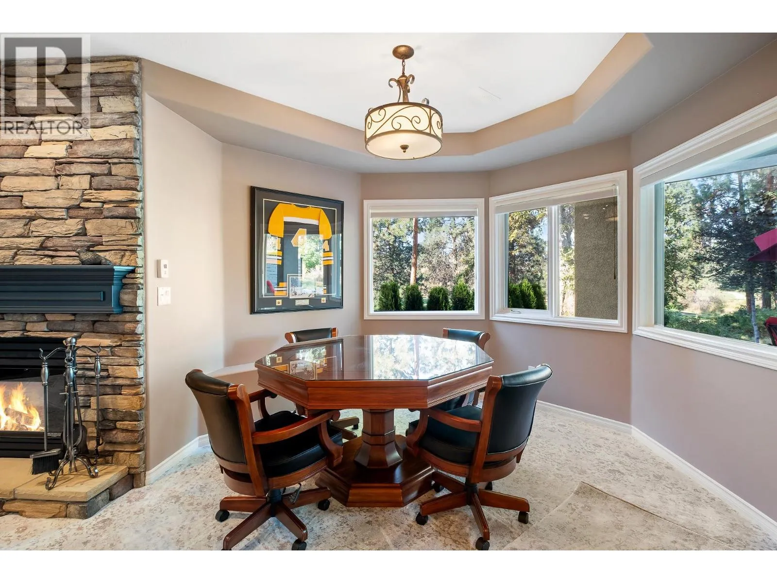 Elegant, warm, and thoughtfully designed, this extensively renovated Gallaghers home sits on the 2nd hole, offering a family home as elevated as its views. Every detail has been professionally and meticulously updated to create a home that is both inviting and move-in ready. With 3 bedrooms, including primary bedroom on the main floor, 3 bathrooms, and 3 fireplaces, the layout is ideal for both everyday living and entertaining. Enjoy mornings on the expansive upper deck off the kitchen and family room, or host friends on the stunning walk-out stone patio with tranquil fountain. The kitchen shines with large granite counters, abundant storage, 2024 appliances, Frigidaire side by side fridge & freezer, black cooktop, and double ovens. The spacious primary suite features deck access, ensuite with a new quartz vanity, and frameless shower. The lower level showcases two bedrooms, full bath, includes over 600 sq. ft. of storage, a cozy family room with fireplace, bar area and includes the Brunswick Greenwood pool table for game nights. The heated garage features new epoxy flooring topped with half-inch rubber wall-to-wall for comfort and durability. Level driveway for extra vehicles. Some of the many updates include a 50-year roof warranty, new HVAC, all new plumbing, hot water tank, irrigation, and landscaping. Nothing to do but move in and enjoy the lifestyleâsteps from golf, walking trails, and a vibrant community. (id:27476)