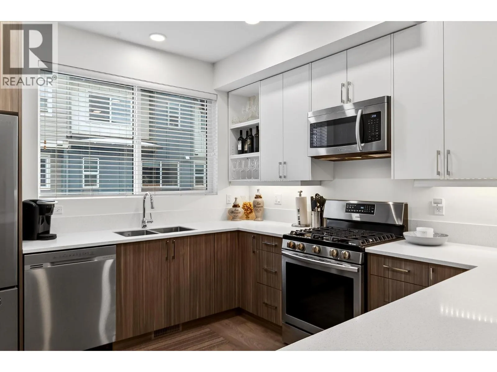 This well-kept 3 bedroom, 2.5 bathroom townhome offers a bright, functional layout in a solid, newer development. The main level features an open kitchen with quartz countertops, gas stove, stainless appliances, soft-close cabinetry, and a clean flow through the dining and living areas. A powder room on the main adds convenience. Upstairs youâll find three bedrooms, including a comfortable primary suite with walk-in closet and ensuite, plus two additional bedrooms, a full bathroom, and laundry on the same level. This home includes a tandem double garage, hot water on demand, central air, and quality finishes throughout. Positioned in one of the better spots in the complex, the unit offers a more private outlook without facing directly into another building. Findlay Place is centrally located with quick access to UBCO, the airport, shopping, schools, parks, and major routes. A clean, move-in-ready townhome in a well-run, pet-friendly community. (id:27476)