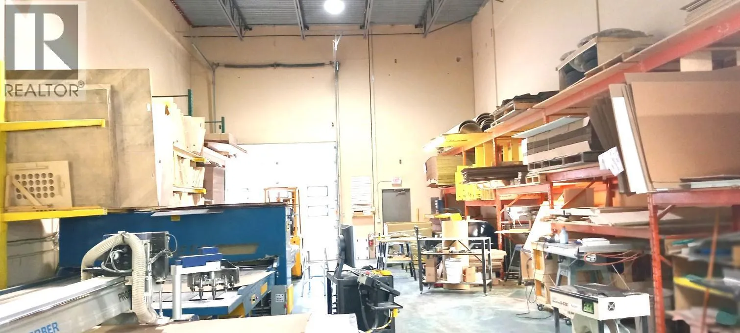 This partially leased warehouse (3746 sqft) is comprised of two separate units. The second floor which is an office and a separate washroom is 1100 square feet and is leased out. The main floor (2646sqft) is two offices, lunch room, washroom and a large warehouse is available for lease. Both spaces have air conditioning and a total of 10 parking stalls. (id:27476)