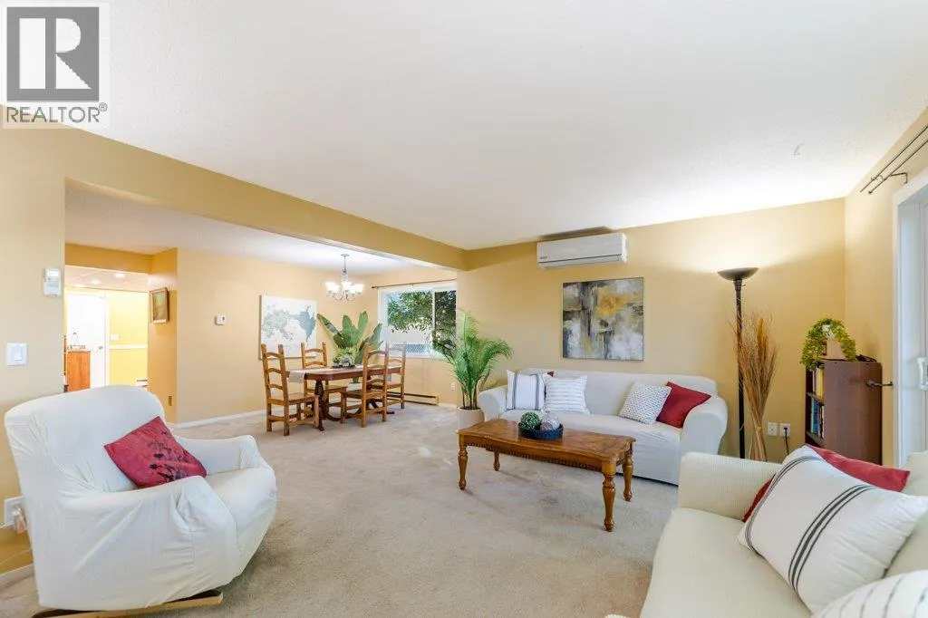 Welcome to this exceptionally spacious 3 bed 2.5 bath townhouse, offering over 1,800 sqft of well designed living - the largest floor plan in the complex! Ideally located in a central area just steps from shopping, the Parkinson Rec Center, Capri mall, the Kelowna Farmers Market and the Sutherland active transportation corridor, this home offers both convenience and lifestyle. The main floor spans 1,000 sq ft and features an open concept living and dining area, complete with a cozy gas fireplace (with newer 2023 insert) and access to your patio through brand new sliding doors. The bright , functional kitchen boast a classic U-shaped layout with ample cabinetry , a pantry and direct access to the double garage - making unloading groceries quick and easy. You'll also find main floor laundry , extra storage and a 2 piece powder room. Upstairs, the generous primary suite includes a walk-in closet and a 4 piece ensuite bath. 2 additional bedrooms, a 4 pc bath and a large storage room complete the upper level. Additional highlights include: - Newer (2023) 4 head heat pump for year round comfort - Windows redone in 2013-2014 -Double garage -Family friendly, and PET friendly complex, 2 dogs allowed, up to 24 inches at the withers -Strata fees: $452.34/month (Floor plan measurements taken from IGUIDE) This home is ideal for families, professionals, or active retirees looking for space, comfort and a walkable location. Don't miss this opportunity! QUICK POSSESSION! (id:27476)