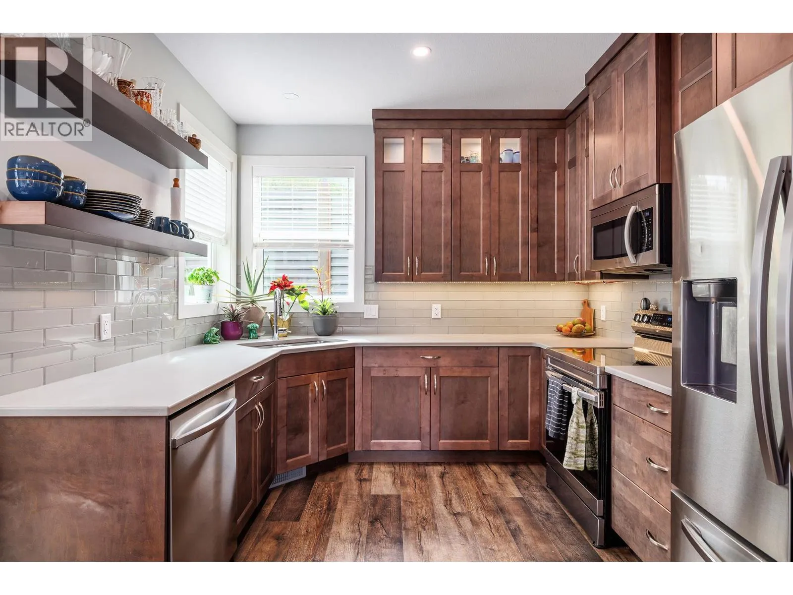 Newer Craftsman style 4 bed, 3.5 bath home in a friendly, family oriented neighbourhood. Custom built with large windows that fill the home with natural light, this residence offers a warm and welcoming feel throughout. The south facing backyard is fenced and private, perfect for relaxing or entertaining. A double car garage provides plenty of space for vehicles and storage. Enjoy the nearby neighbourhood park Blair Pond Park featuring pickleball courts and a playground. Conveniently located close to Watson Road Elementary School, Dr. Knox Middle School, and Kelowna Secondary School, making it an excellent choice for families. Measurements are from I- Guide - please verify if important. 2 Property -Strata is self managed and $300 per month for Property Insurance. (id:27476)