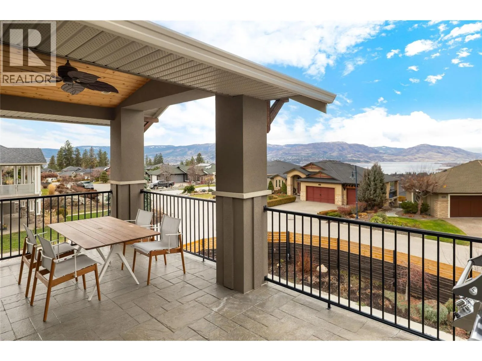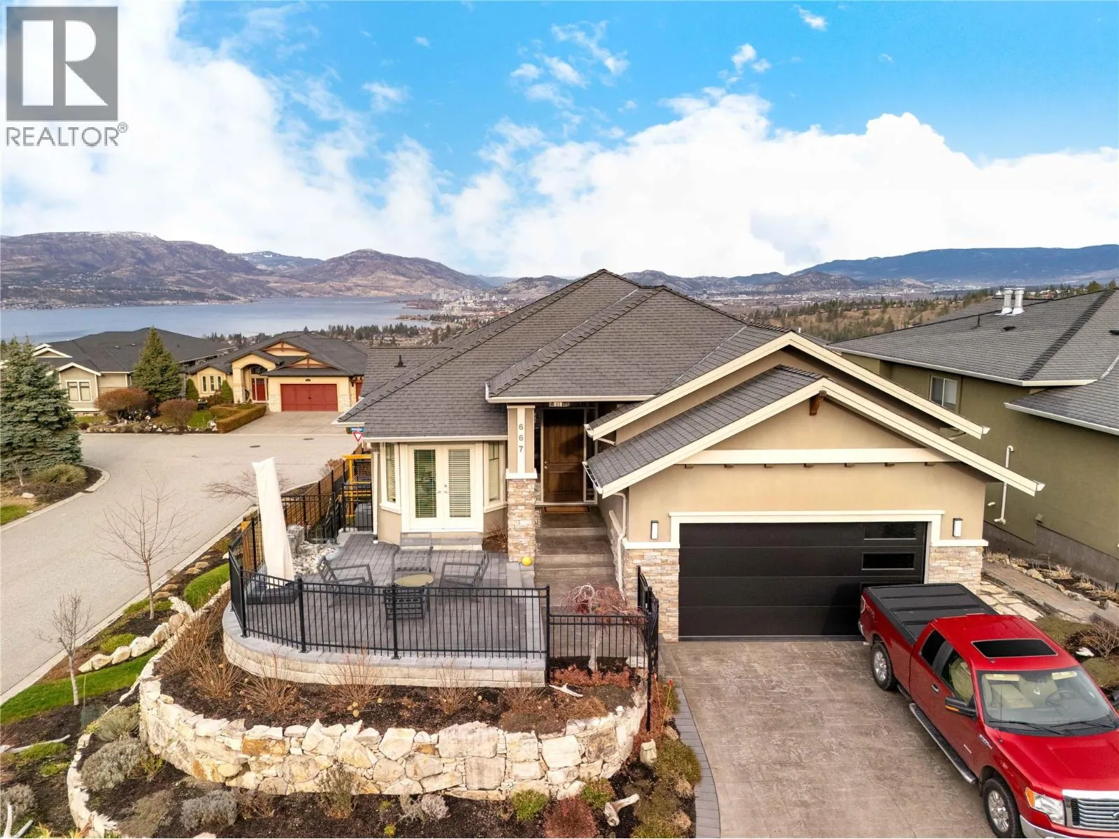 Move-in ready with quality finishing throughout, this immaculately maintained & thoughtfully designed home reflects true pride of ownership at every turn. Numerous upgrades have been completed throughout the home, enhancing both comfort and functionality. The main level is bright and welcoming, offering an open-concept layout with expansive windows, rich hardwood flooring, and seamless flow between the kitchen, dining, and living areasâideal for both everyday living and entertaining. The kitchen features timeless cabinetry, stone countertops, quality appliances, and a generous island with seating, while the living room is anchored by a striking stone fireplace and direct access to the covered deck, perfectly positioned to take in lake, city, and mountain views. The primary suite is a peaceful retreat with oversized windows, deck access, and a spa-inspired ensuite with dual vanities, a soaker tub, and tiled shower. Additional bedrooms are well-proportioned and versatile, ideal for family, guests, or home office use. The lower level is equally impressive, featuring a spacious family and media room, custom wet bar, generous storage, and flexible space for recreation, fitness, or hobbies. Outdoors, enjoy the private saltwater pool complete with an automatic coverâoffering ease of use, added safety, and extended seasonal enjoyment. Meticulously cared for, this exceptional property is located in a sought-after neighbourhood just minutes from schools, shops, wineries, and the lake, offering a rare balance of elevated living and daily convenience. (id:27476)