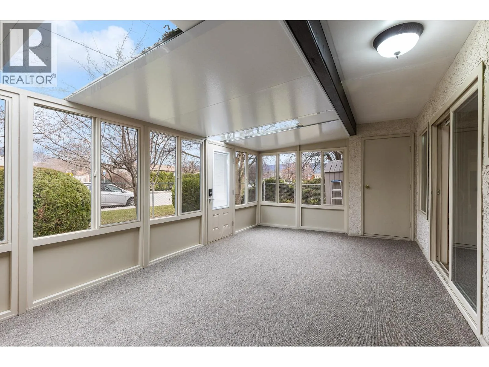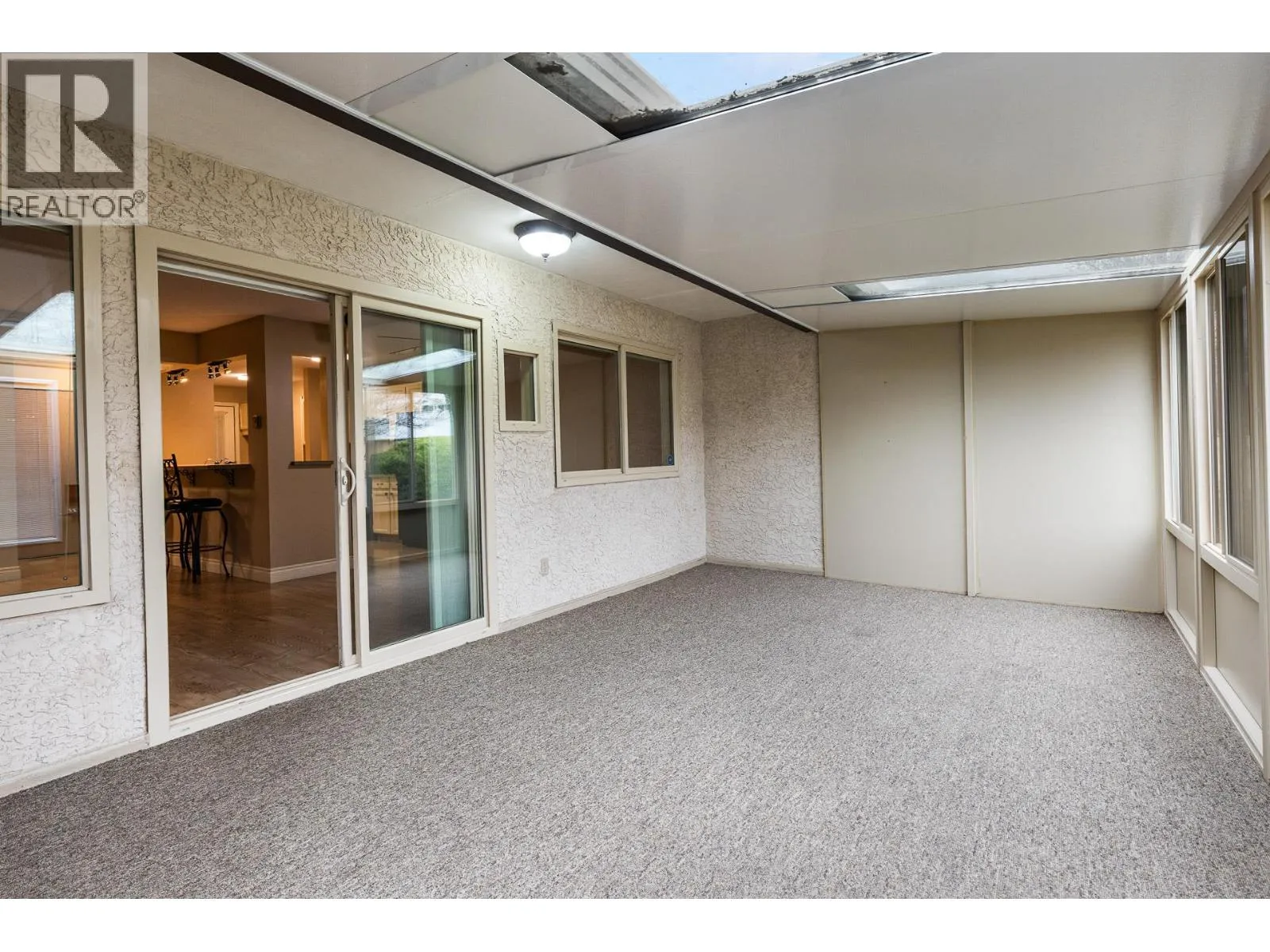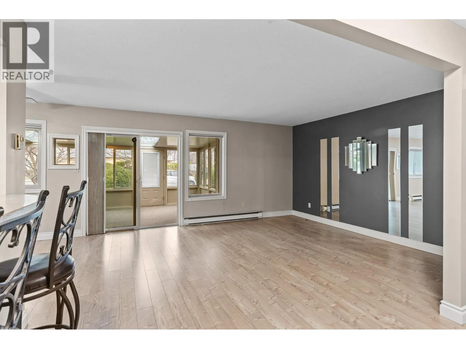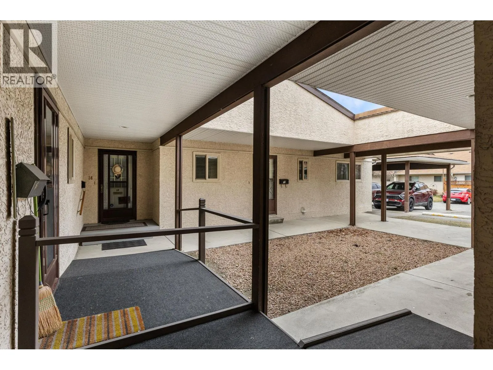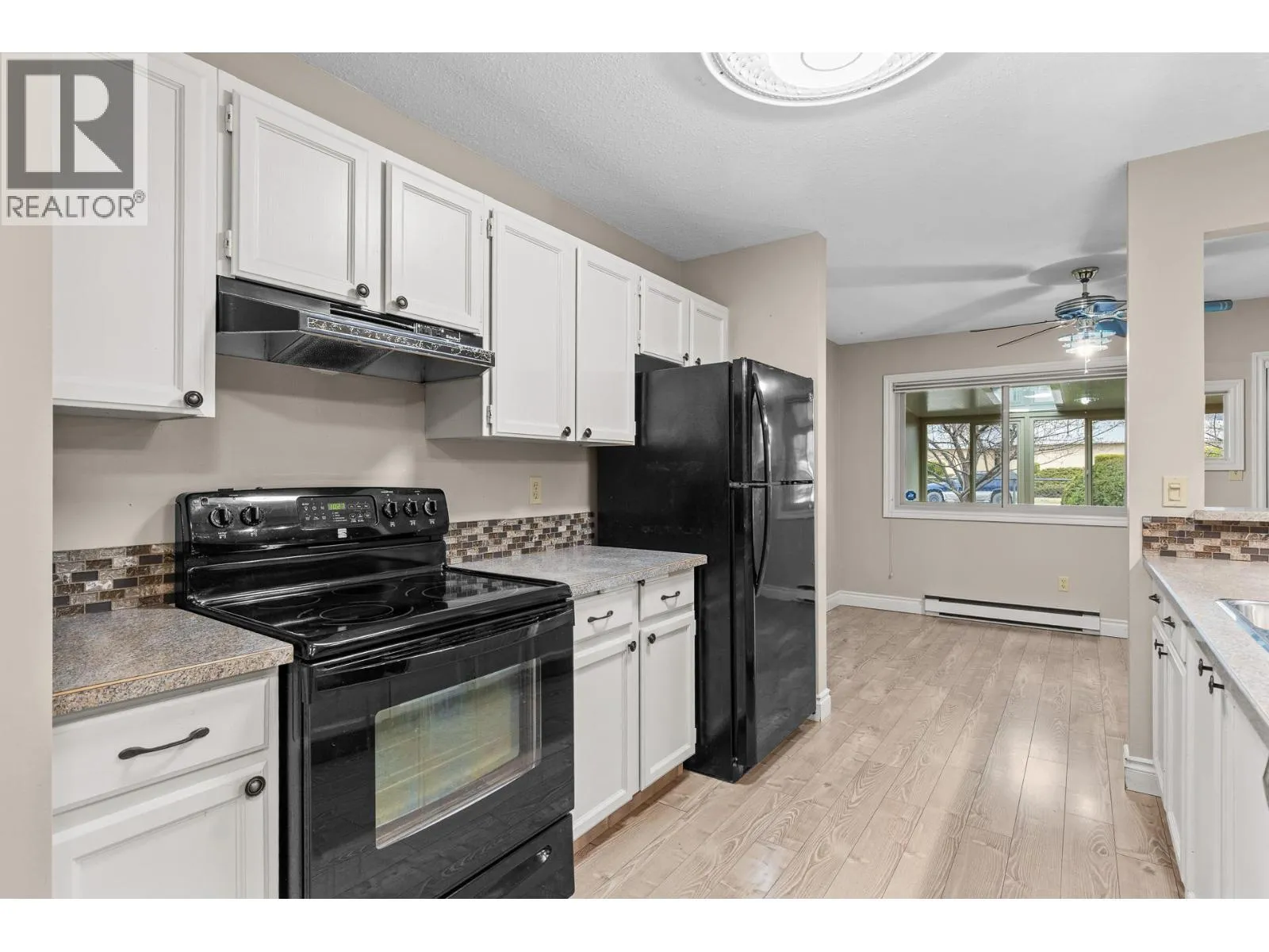OPEN HOUSE Saturday the 28th 2pm-4pm....Beautifully Updated Rancher Townhome â A True Gem! Bright end unit offering exceptional privacy and natural light, this spacious 2 bedroom, 2 bathroom level-entry, one-story 55+ adult-oriented townhome offers approximately 1,400 sq. ft. of living space including the sunroomâone level living like this is so rare to find! Ideally located within walking distance to shopping, transit, and the Mission Creek Greenway, with a convenient bus route nearby. This home features a hard-to-find open floor plan, laminate flooring, updated trim, newer windows, a newer roof, no Poly B plumbing, and a newer hot water tank, with sunny south-facing exposure perfect for relaxing or entertaining. An absolutely amazing 300 sq. ft. quality-built sunroom adds exceptional living space and includes access to a crawl space and storage area, plus a door leading to the adjacent storage unit complete with a seating area. The updated kitchen showcases black appliances, while the expansive living and dining area offers a sliding glass door to the outdoor space. Enjoy two generous bedrooms, including a king-sized primary with walk-in closet and 3-piece ensuite, a full 4-piece main bathroom with skylight, a separate laundry and storage room off the entry, and covered parking, plus tons of visitor parking including a convenient space right at your door. Such a unique and special opportunity in a well-maintained community. PET RESTRICTIONS: 1 cat or 1 dog under 16'! (id:27476)
