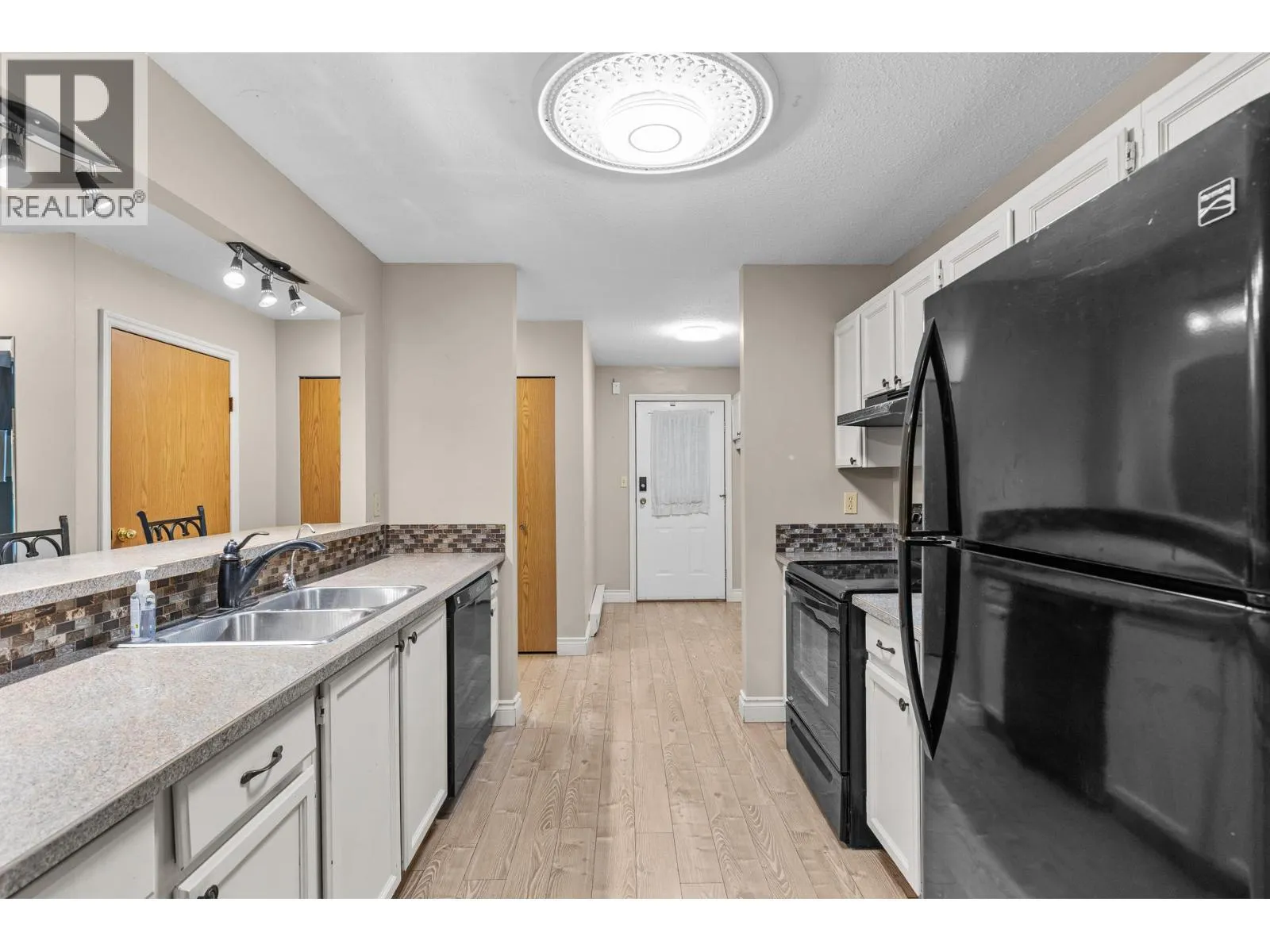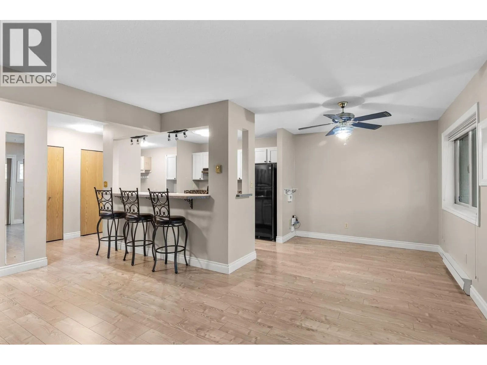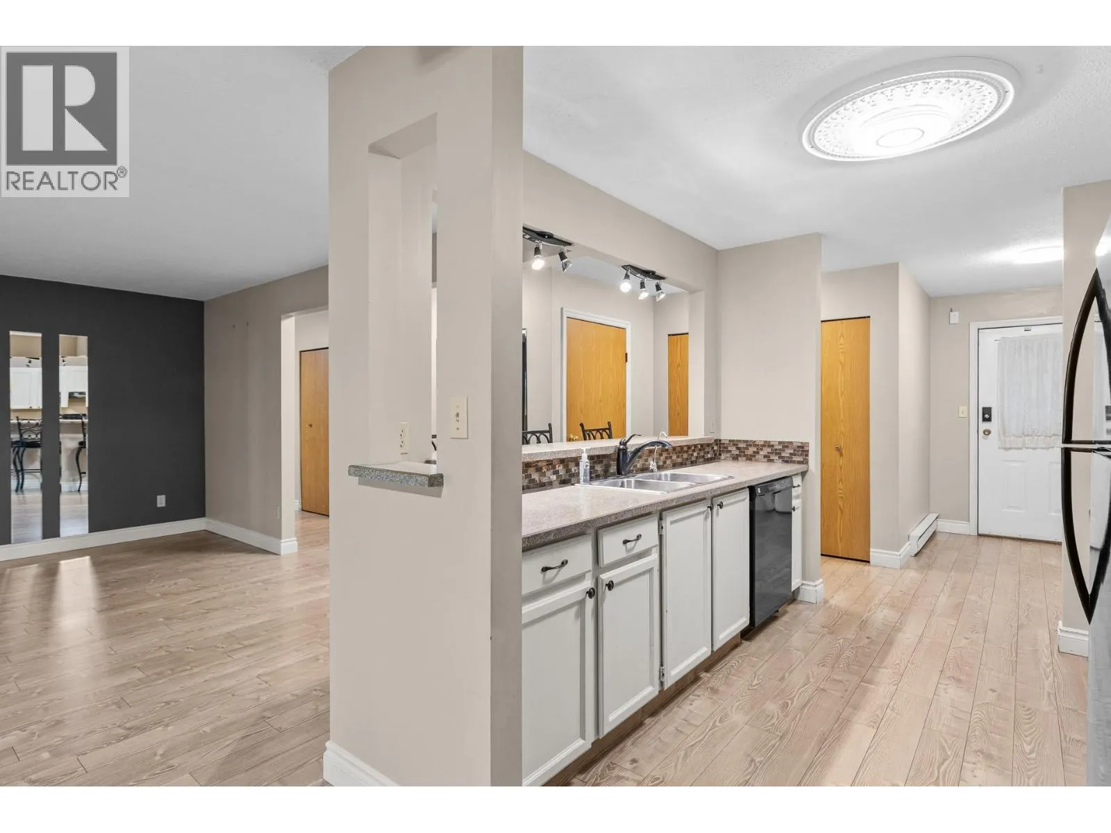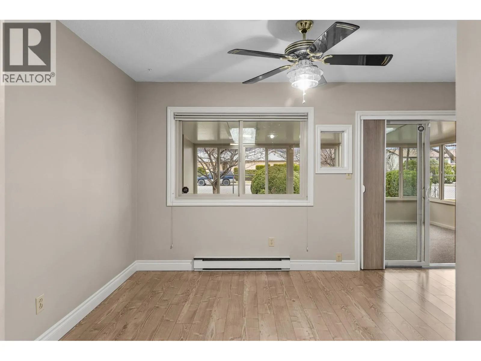 OPEN HOUSE Saturday the 28th 2pm-4pm....Beautifully Updated Rancher Townhome â A True Gem! Bright end unit offering exceptional privacy and natural light, this spacious 2 bedroom, 2 bathroom level-entry, one-story 55+ adult-oriented townhome offers approximately 1,400 sq. ft. of living space including the sunroomâone level living like this is so rare to find! Ideally located within walking distance to shopping, transit, and the Mission Creek Greenway, with a convenient bus route nearby. This home features a hard-to-find open floor plan, laminate flooring, updated trim, newer windows, a newer roof, no Poly B plumbing, and a newer hot water tank, with sunny south-facing exposure perfect for relaxing or entertaining. An absolutely amazing 300 sq. ft. quality-built sunroom adds exceptional living space and includes access to a crawl space and storage area, plus a door leading to the adjacent storage unit complete with a seating area. The updated kitchen showcases black appliances, while the expansive living and dining area offers a sliding glass door to the outdoor space. Enjoy two generous bedrooms, including a king-sized primary with walk-in closet and 3-piece ensuite, a full 4-piece main bathroom with skylight, a separate laundry and storage room off the entry, and covered parking, plus tons of visitor parking including a convenient space right at your door. Such a unique and special opportunity in a well-maintained community. PET RESTRICTIONS: 1 cat or 1 dog under 16'! (id:27476)