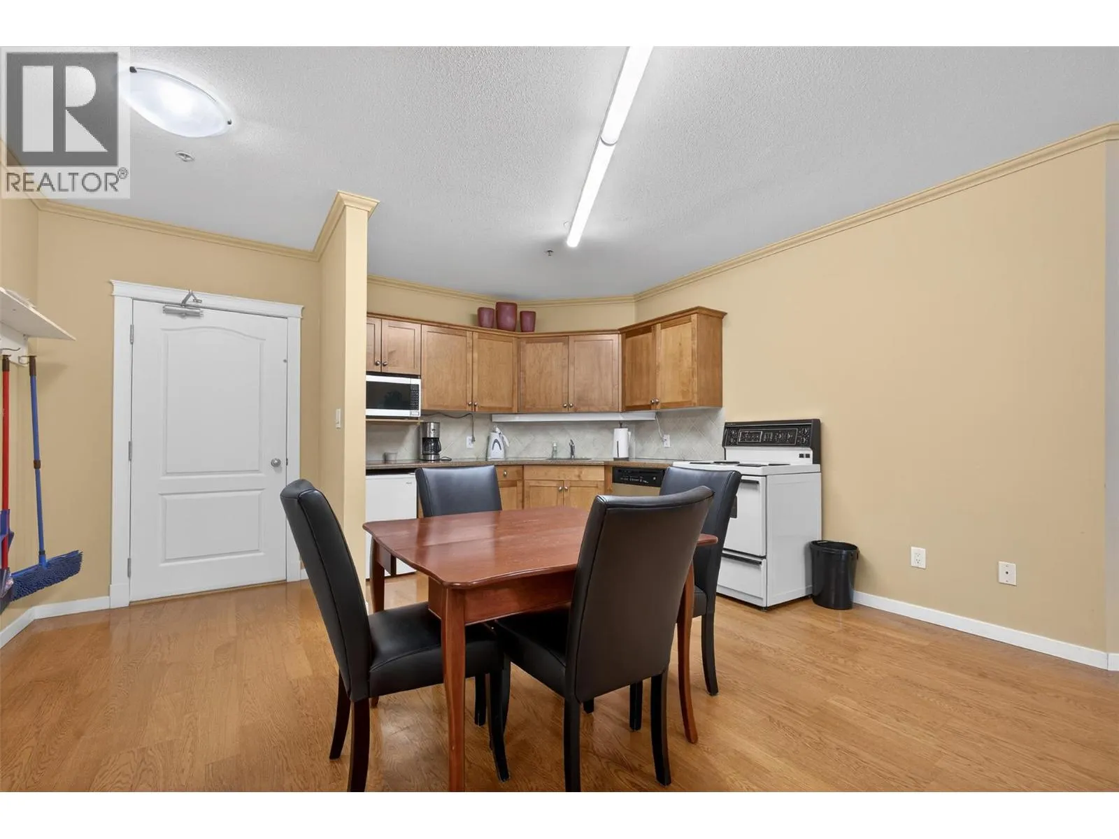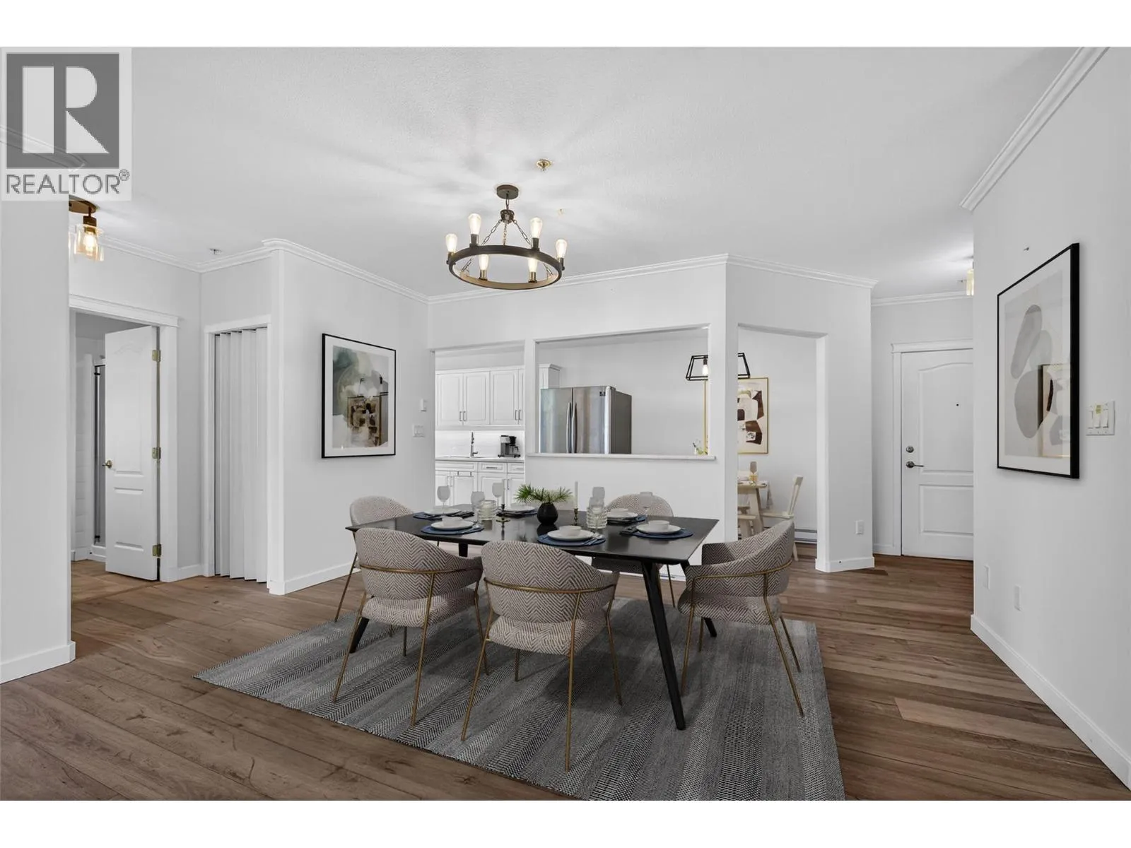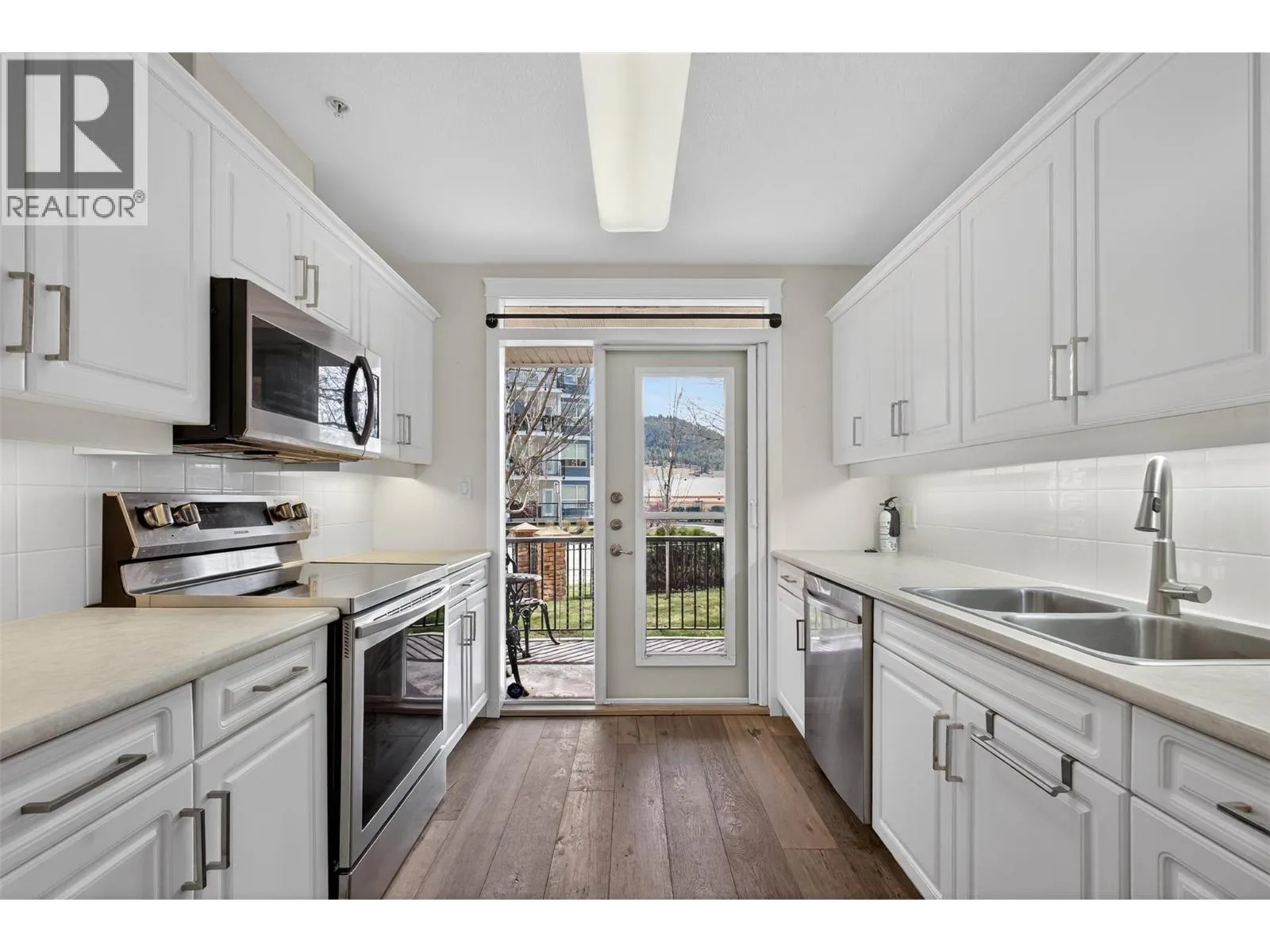 Location truly is everything, and this bright 2-bedroom, 2-bathroom corner unit puts you right in the heart of Glenmoreâone of Kelownaâs most sought-after neighborhoods. Just a 2-minute walk to shopping, coffee shops, groceries, and everyday essentials, you may find your car getting a well-deserved break. Inside, the spacious layout offers a large, light-filled living area with added windows that only a corner unit can provide, along with a functional kitchen featuring space for a table. Step out to the patio for easy BBQing and relaxed outdoor living. Thoughtful updates throughoutâincluding newer appliances, hardwood floors, fresh paint, and modern fixturesâmean you can move in and enjoy right away. Ideal for first-time buyers or downsizers, this home also offers excellent building amenities including a fitness center, amenities room, bike storage, a woodworking shop, and a guest suite for visiting friends or family. With parks, schools, and recreation all within walking distance, this is a lifestyle thatâs as convenient as it is comfortable. (id:27476)