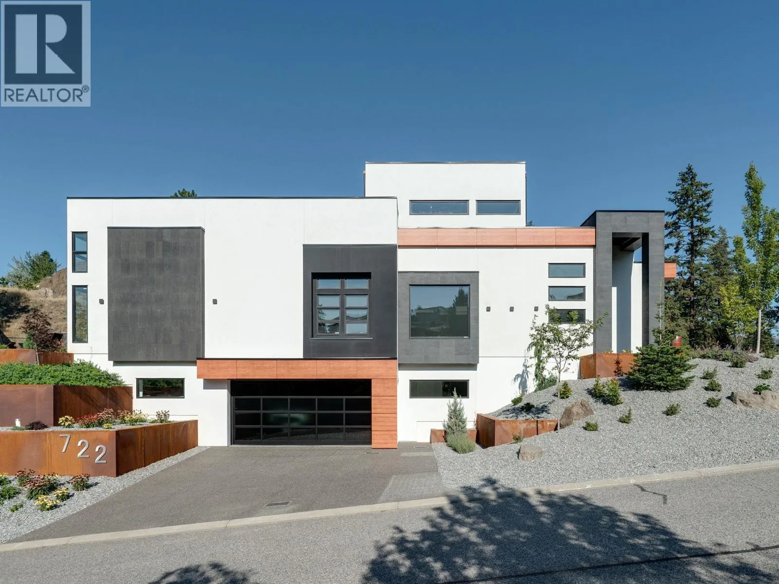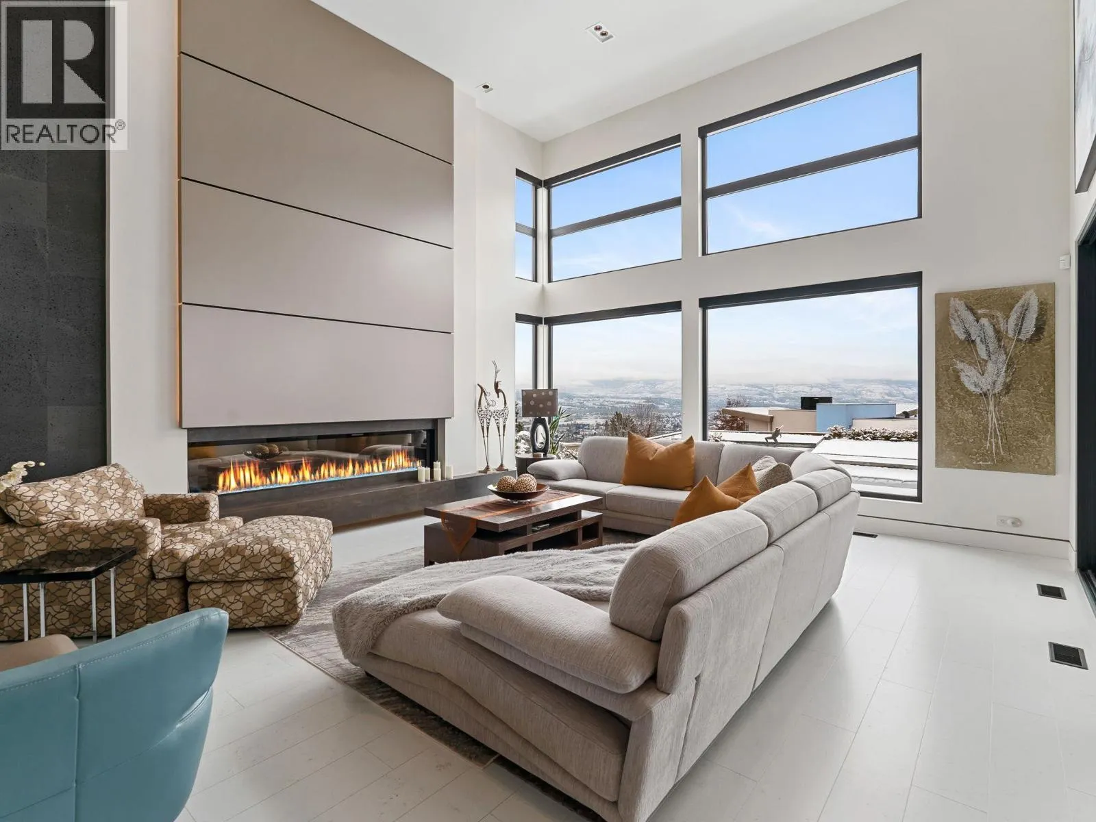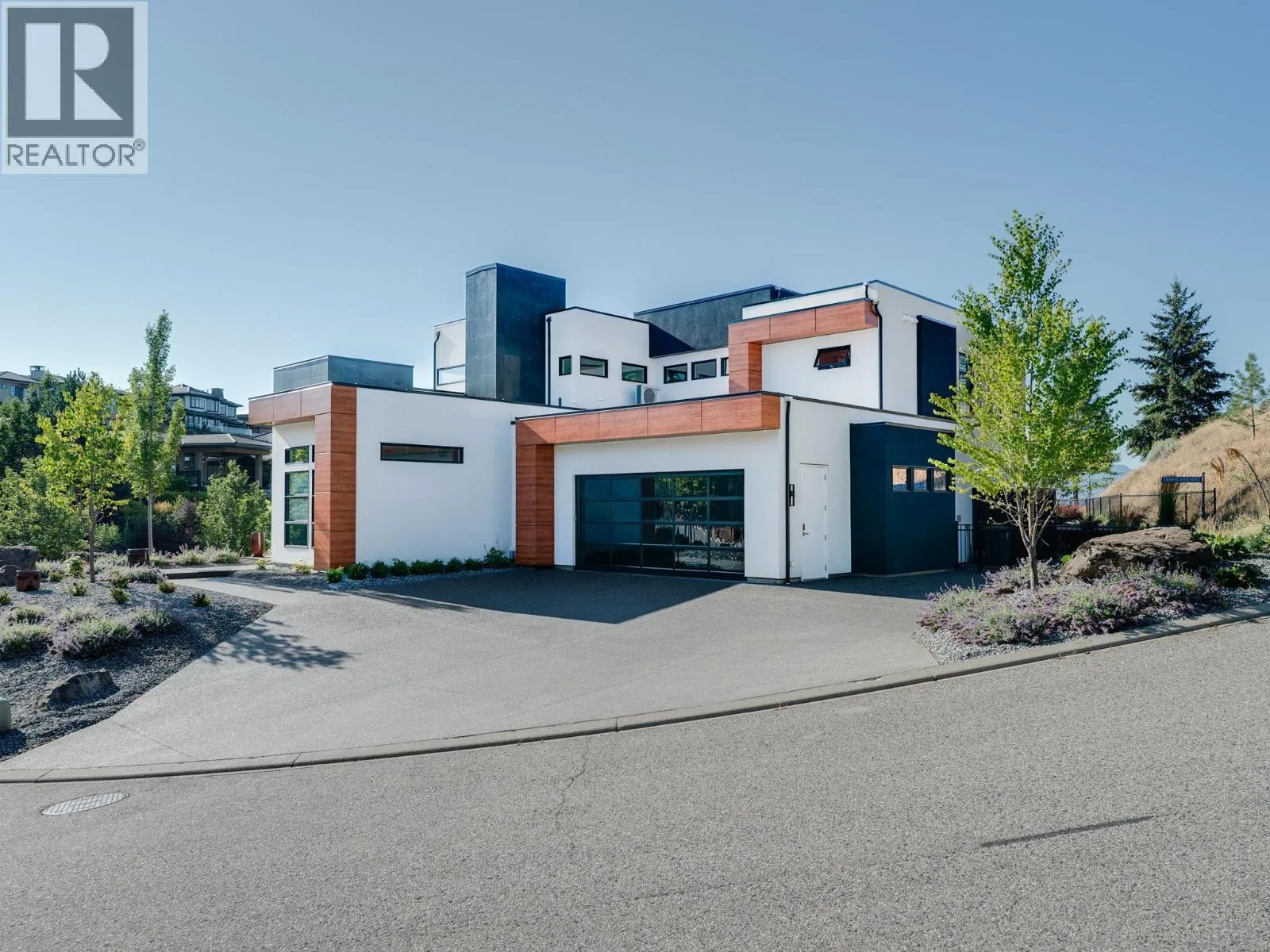 Nestled in the prestigious Highpointe community of Kelowna, this architectural masterpiece redefines modern luxury with views of the city, Okanagan Lake and surrounding mountains. This home is a visual showpiece, with striking geometric lines, floor-to-ceiling windows and meticulous landscaping. The interior boasts an impressive design, double-height ceilings, and seamless negative baseboards that exude elegance. The open-concept living space centers around a stunning linear fireplace, while the gourmet kitchen is a chefâs dream with high-end appliances, a waterfall-edge island, and a butlerâs pantry for effortless entertaining. A custom elevator provides convenient access to all levels, and two separate garages accommodate up to 9 vehicles, perfect for car enthusiasts. Each bedroom is a private retreat with designer finishes and spa-like ensuites, including the luxurious primary suite with a walk-in closet and private outdoor access. The professionally landscaped exterior features a dazzling pool, an outdoor kitchen, and multi-tiered terraces, ideal for entertaining or relaxation. SMART home technology ensures convenience, and the propertyâs location offers both privacy and proximity to downtown Kelowna, world-class wineries, golf courses and recreational trails. This home is a statement of sophistication and lifestyle. (id:27476)