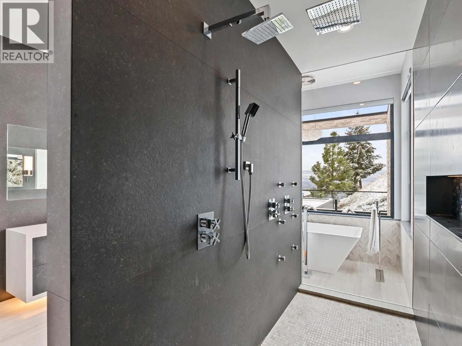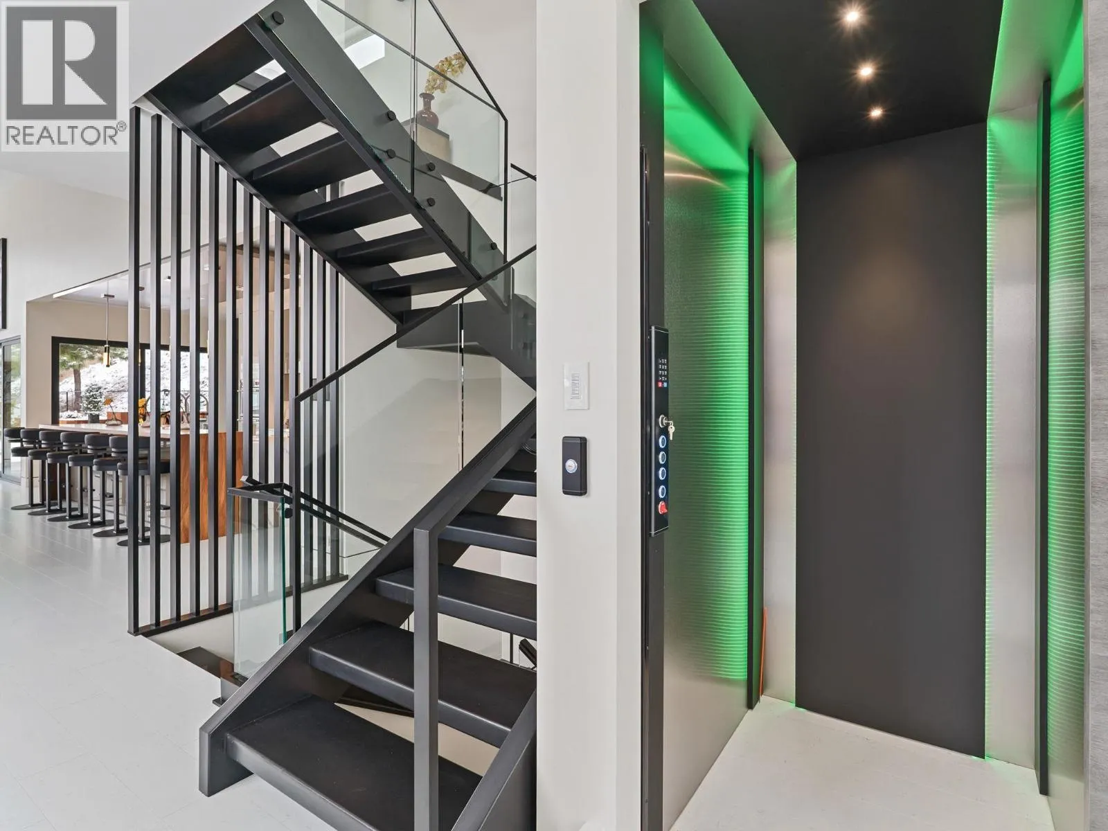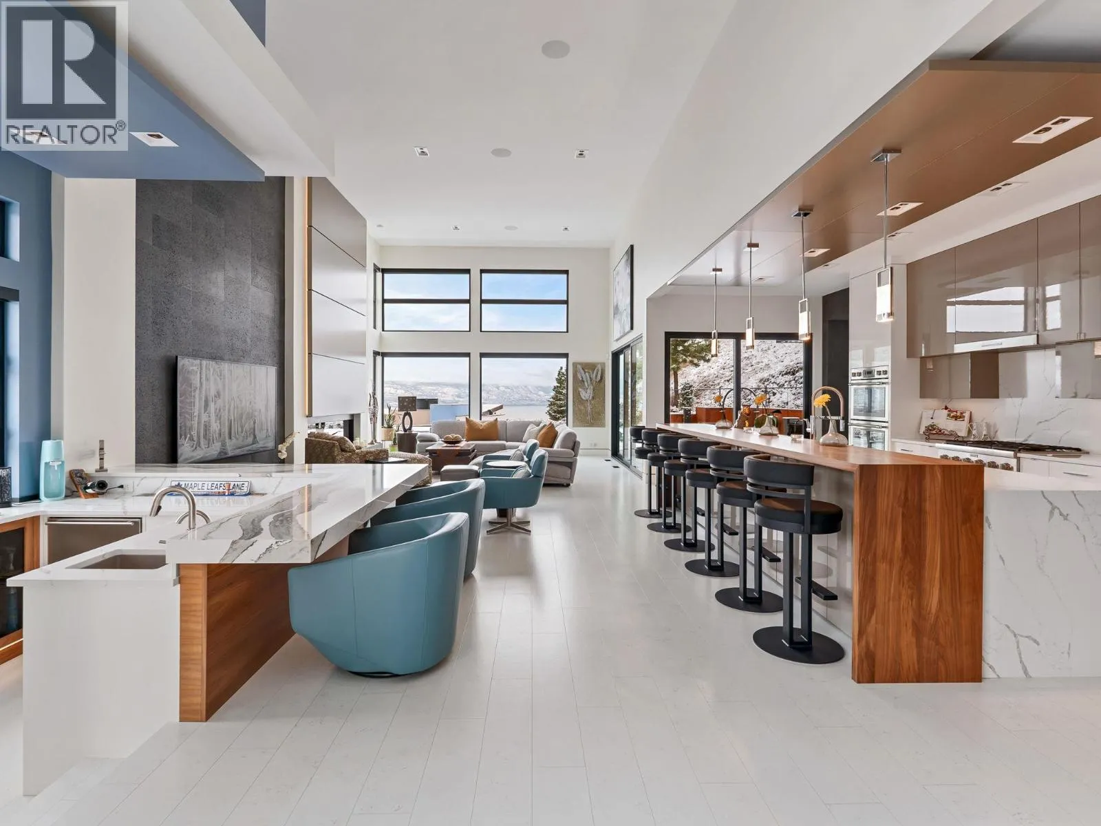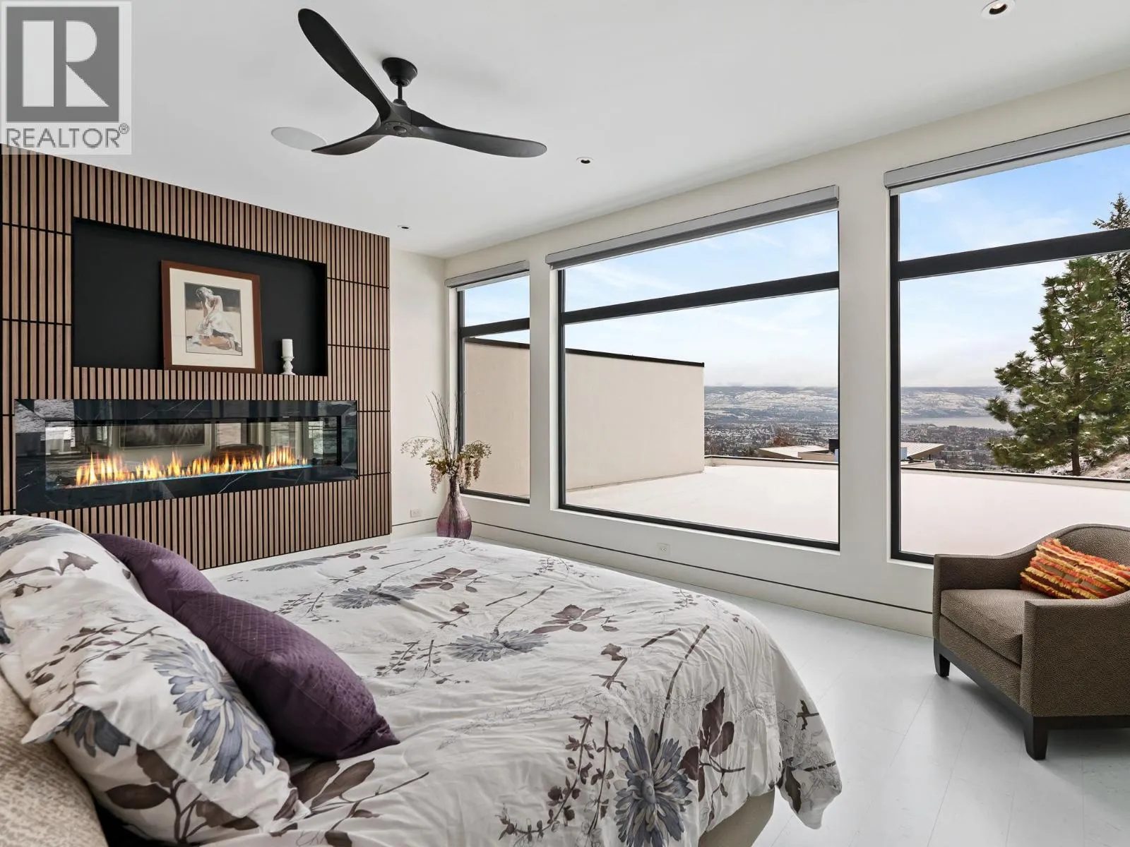 Nestled in the prestigious Highpointe community of Kelowna, this architectural masterpiece redefines modern luxury with views of the city, Okanagan Lake and surrounding mountains. This home is a visual showpiece, with striking geometric lines, floor-to-ceiling windows and meticulous landscaping. The interior boasts an impressive design, double-height ceilings, and seamless negative baseboards that exude elegance. The open-concept living space centers around a stunning linear fireplace, while the gourmet kitchen is a chefâs dream with high-end appliances, a waterfall-edge island, and a butlerâs pantry for effortless entertaining. A custom elevator provides convenient access to all levels, and two separate garages accommodate up to 9 vehicles, perfect for car enthusiasts. Each bedroom is a private retreat with designer finishes and spa-like ensuites, including the luxurious primary suite with a walk-in closet and private outdoor access. The professionally landscaped exterior features a dazzling pool, an outdoor kitchen, and multi-tiered terraces, ideal for entertaining or relaxation. SMART home technology ensures convenience, and the propertyâs location offers both privacy and proximity to downtown Kelowna, world-class wineries, golf courses and recreational trails. This home is a statement of sophistication and lifestyle. (id:27476)
