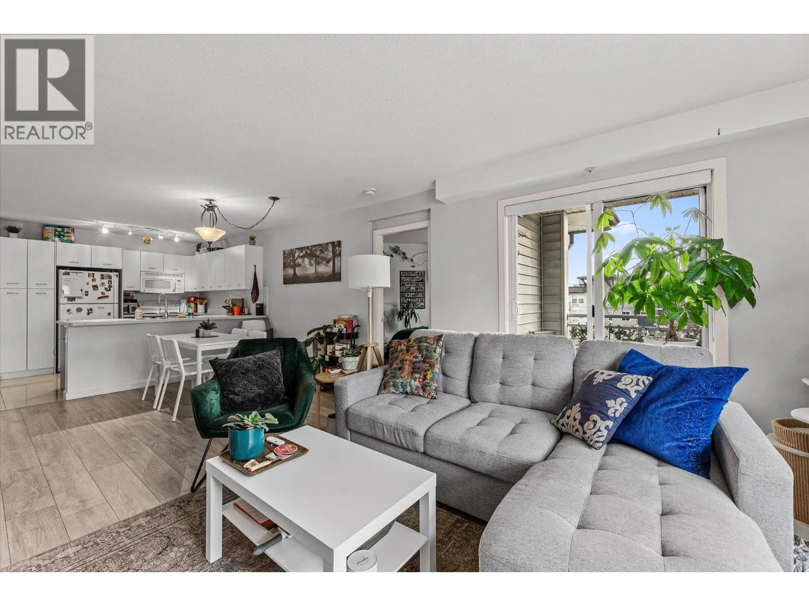 Welcome to top-floor corner living at the Verve - where natural light, privacy, and layout come together in a way most units simply donât. This 2 bedroom, 2 bathroom apartment offers 1,045 sqft with a true split-bedroom design, ideal for separation between bedrooms, guests, or a home office. If youâve seen enough condos, you know the issue, too many feel dark, boxed-in, and noisy. This one solves that. Positioned on the top corner with south and west facing windows, the space is filled with natural light throughout the day, creating a bright, open feel that stands out immediately. With no neighbours above, youâll also enjoy a quieter living experience. The open-concept kitchen, dining, and living area flows seamlessly and extends directly onto a south-facing deck perfect for soaking up the sun and adding functional outdoor living right off your main space. Bedrooms are set on opposite sides, each with access to a full bathroom, while the larger in-suite laundry and storage closet adds practical space where it matters. The Verve permits up to 2 pets and rentals (30 day min), and offers standout amenities including an outdoor pool, sand volleyball courts, BBQ and picnic areas. Walk to groceries, coffee shops and pubs, with easy access to restaurants, schools, UBCO, and YLW. (id:27476)