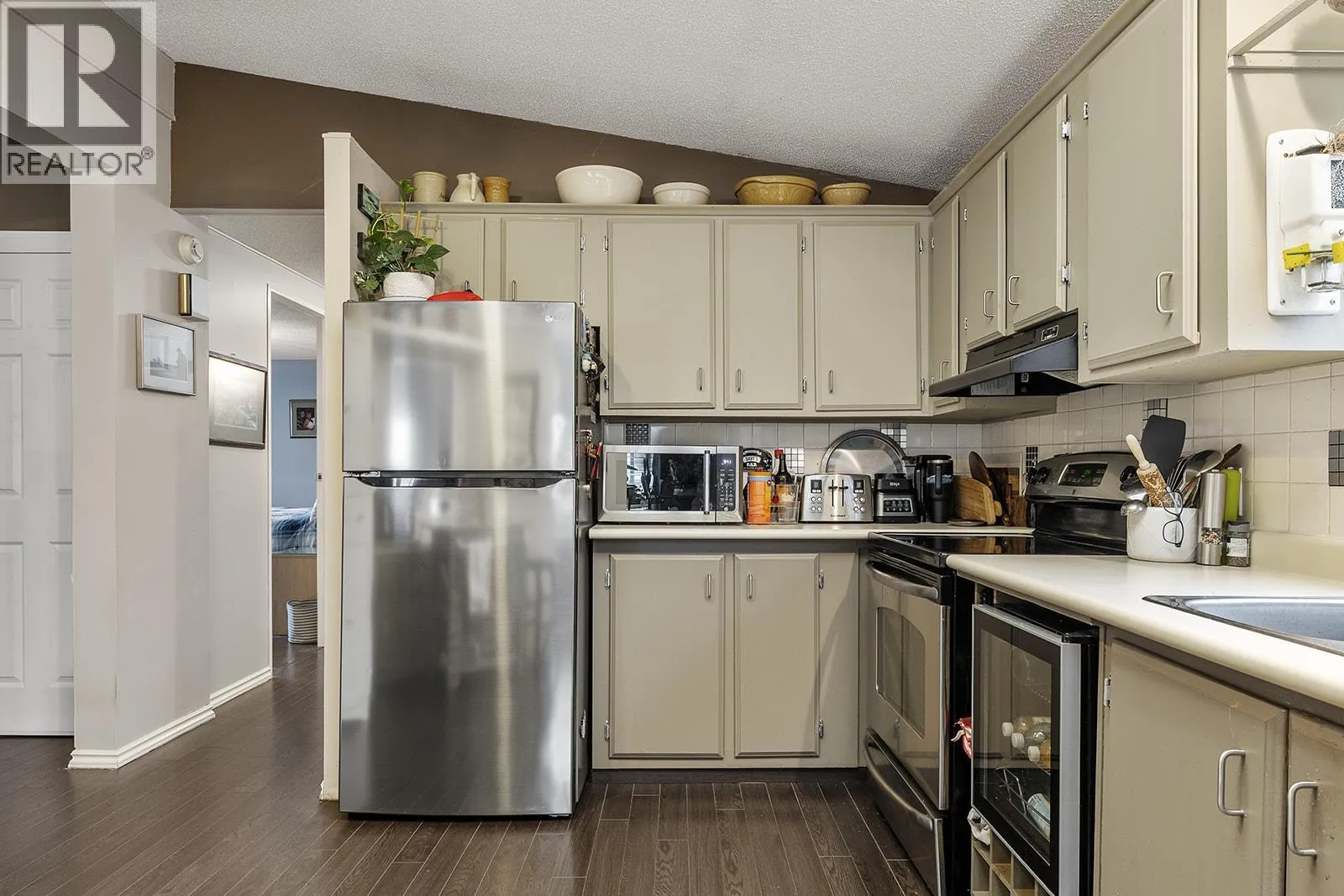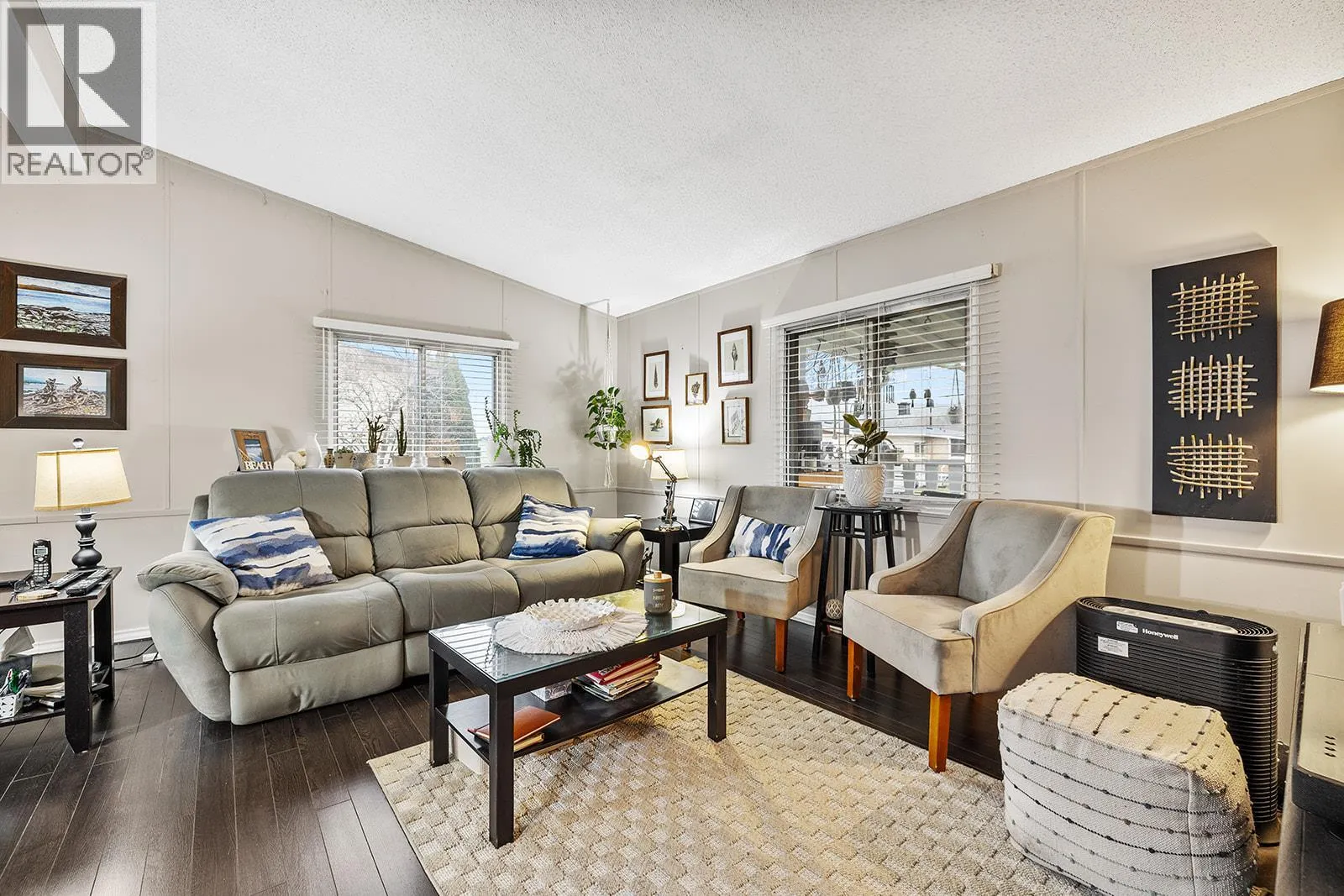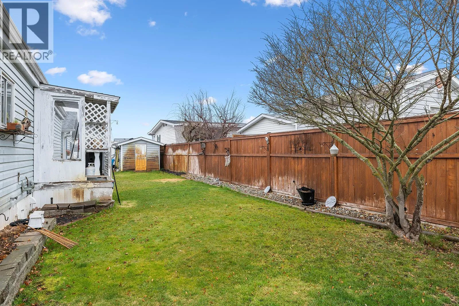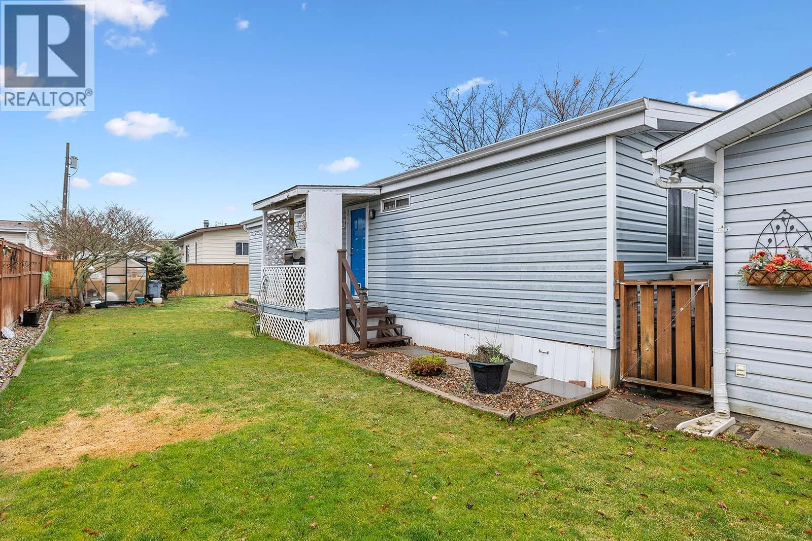 Welcome to easy, affordable living in the heart of Lake Country! This well maintained 2 bedroom, 2 bathroom double-wide home is ideally situated at the end of a quiet cul-de-sac in the family-friendly section of a highly desirable, well managed park. Step inside to a bright and spacious layout featuring vaulted ceilings, a electric fireplace, and central air conditioning for year round comfort. Updated electrical, plumbing (poly B replaced) & new hot water tank. The home offers a functional floor plan with generous living spaces, perfect for both relaxing and entertaining. Outside, enjoy a large fully fenced yard, ideal for kids and pets, along with ample deck space for outdoor living. Property features a detached garage/workshop, large storage shed & plenty of parking provides exceptional flexibility and storage. Conveniently located just minutes from the airport, shopping, schools, parks, and all amenities, this is a fantastic opportunity to own in one of Lake Country's most sought-after affordable communities. (id:27476)