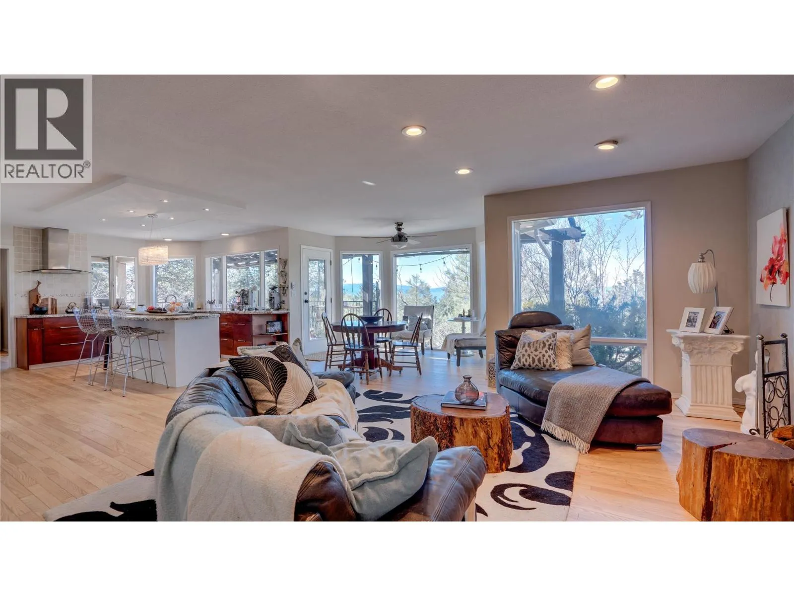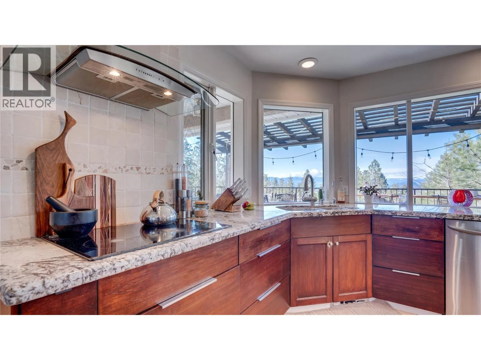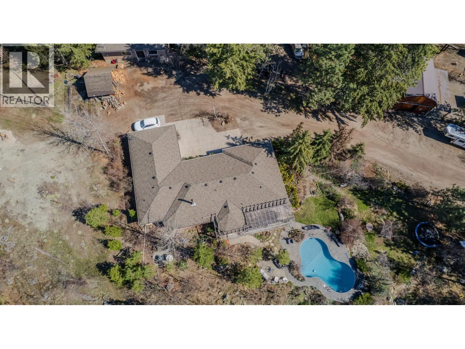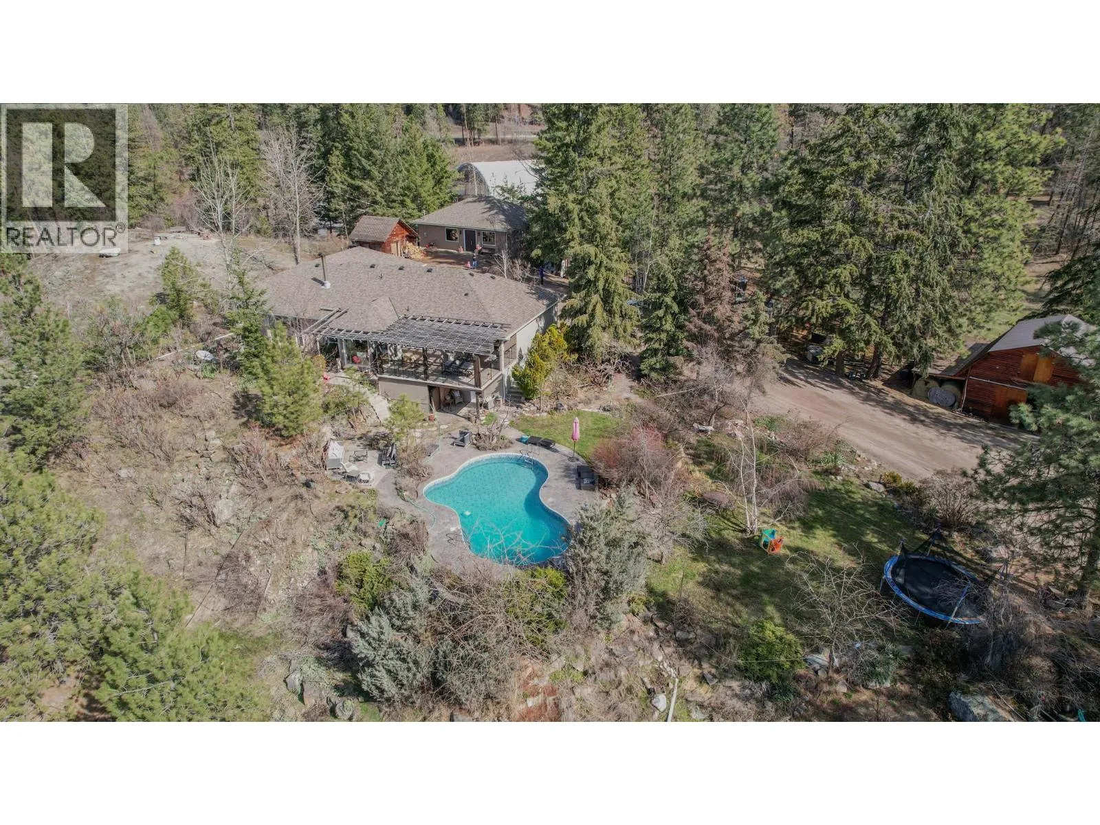 10.499 Acres in Ellison area of Kelowna. Private Acreage Living with Excellent Infrastructure & Shop Space in a executive neighbourhood with supreme views of the Okanagan valley and Lakes while still being private. The property features three producing drilled wells for reliable water supply. An excellent horse property set up with fenced pasture and paddocks and a heated automatic Ritchie water bowl near the barn which has hay storage and a tack room. Hay barn has lean too storage and room to put in stalls. There is a gate out the back and you can ride for miles right from your property on to the riding trails up Batta or Postill. You can drive right up to James Lake. The shop is fully serviced with power and in-floor heat from the boiler system. Above the shop is additional space that could be suited to a variety of uses. There is walk-in freezer in the garage with wired in backup generator that can be included in the sale if desired. Stunning Kafeo in ground pool â with new vinyl liner in 2025. The home is beautifully updated with a gleaming quartz island and updated cabinetry. Hardwood flooring leads up to the floor to ceiling windows and the partially covered view deck. The master bedroom and ensuite are magazine worthy with a dual sinks soaker tuba nd a walk in closet. 2 additional bedrooms a full bath and mudroom round off the mainfloor. Downstairs would be easily suited with a separate entrance to a living room bedroom and full bathroom. Not in the ALR. (id:27476)
