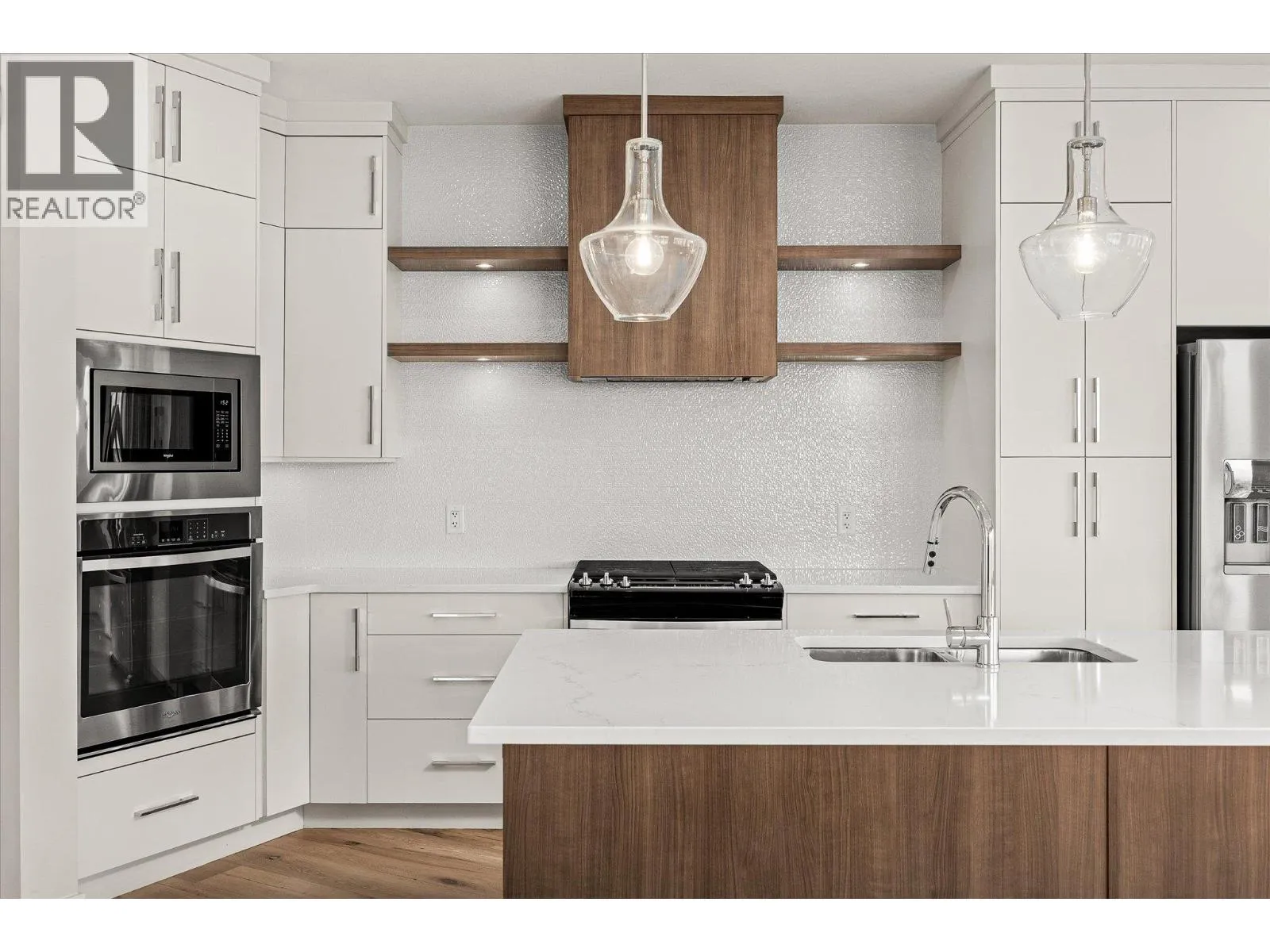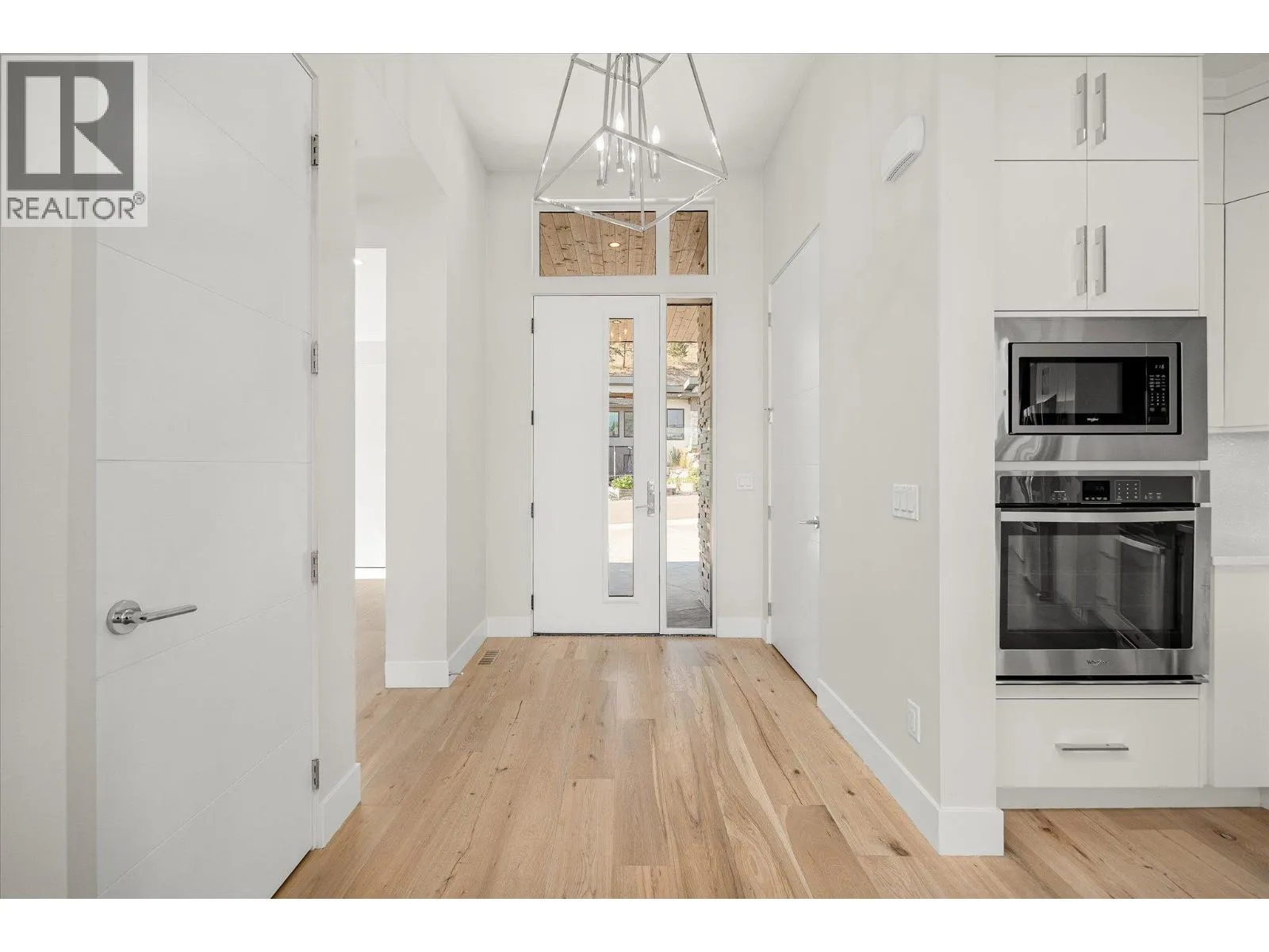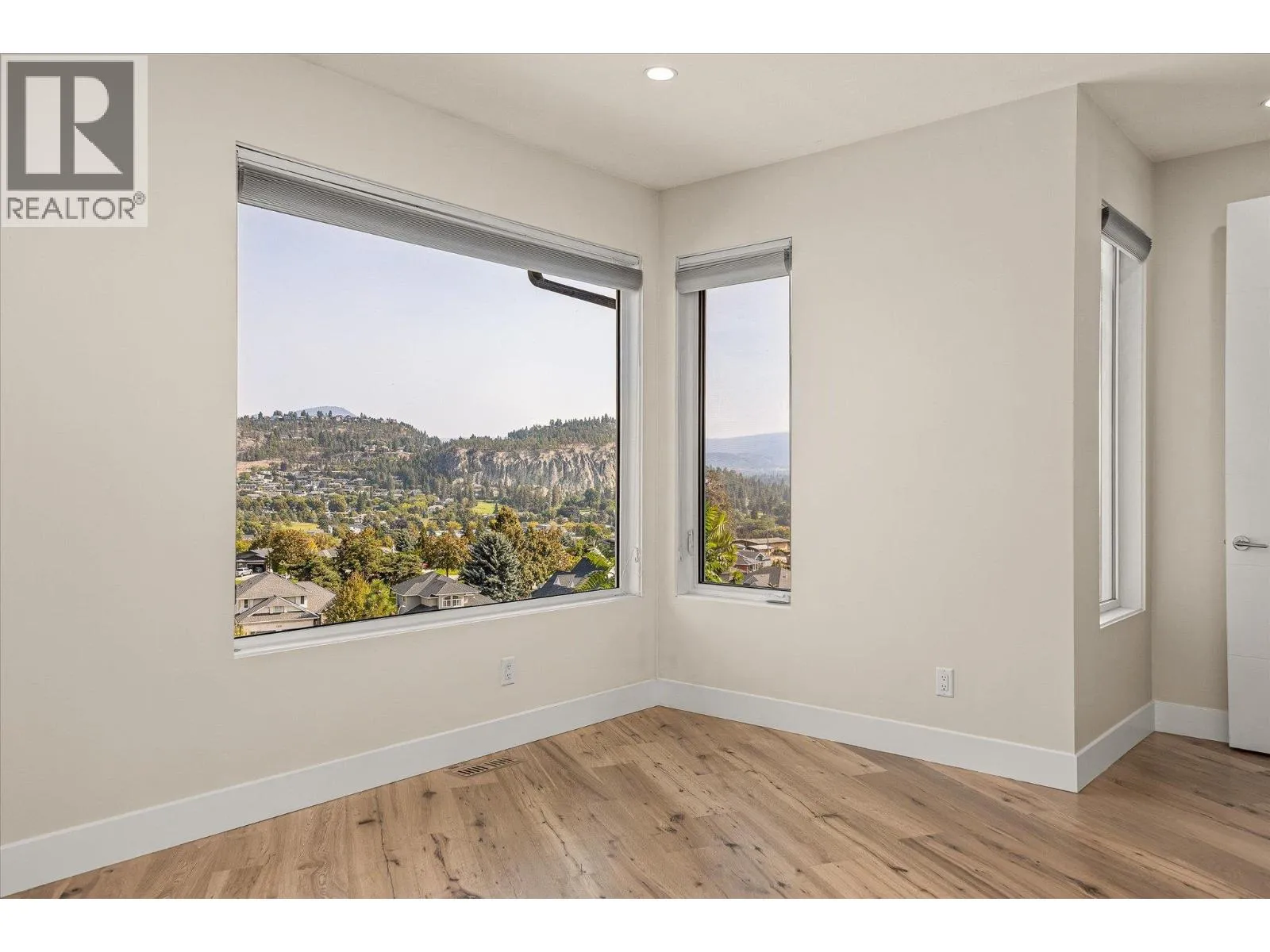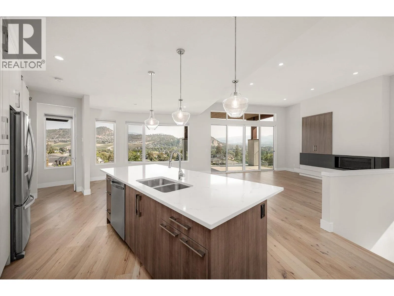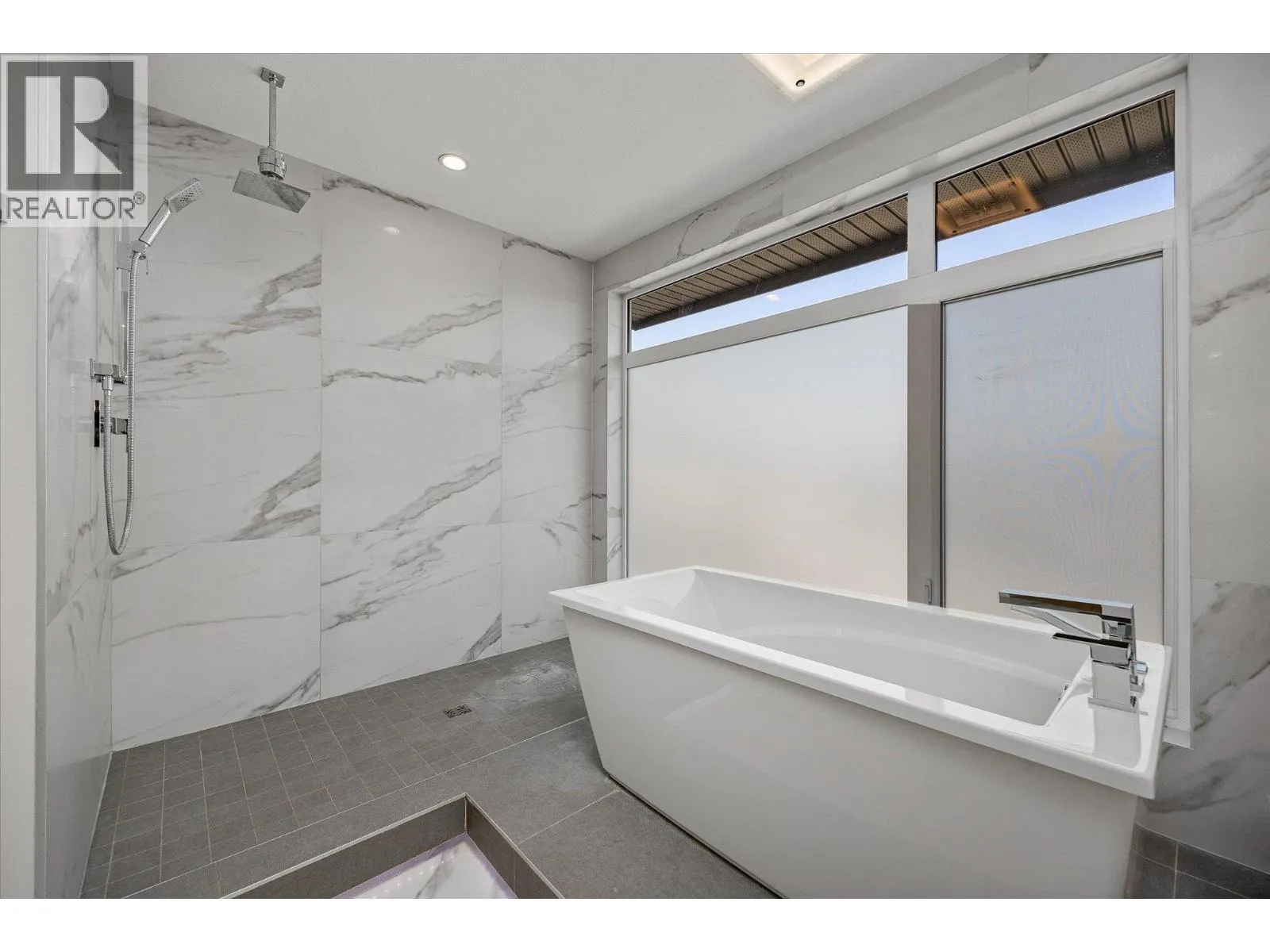 Welcome to this stunning four-bedroom, four-bathroom walk-out rancher with a fully self-contained one-bedroom suiteâan exceptional opportunity you wonât want to miss. Built by award-winning Gibson Homes, this residence showcases thoughtful design and quality craftsmanship throughout. From the moment you enter, soaring eleven-foot ceilings create a grand first impression, leading into a bright and expansive open-concept living space. The gourmet kitchen is designed for both everyday living and entertaining, featuring quartz countertops, stainless steel appliances, and a spacious dining area. Step out onto the large balcony and take in breathtaking mountain and valley viewsâperfect for morning coffee or unwinding in the evening. The primary suite offers a true retreat, complete with a walk-through closet and a spa-inspired ensuite. Enjoy marble-style tile, heated floors, motion-sensor lighting, a freestanding platform tub, and a sleek glassless shower for a luxurious, elevated experience. The lower level provides a generous recreation room, an additional bedroom, and a full bathroomâideal for family or guests. The one-bedroom suite features a private side entrance and is thoughtfully positioned to maintain privacy from the main living areas, making it perfect for extended family or rental income. Still under partial home warranty and conveniently located just minutes from downtown Kelowna, shopping, schools, the airport, UBCO, and golf courses, this home offers both comfort and convenience in an unbeatable location. (id:27476)
