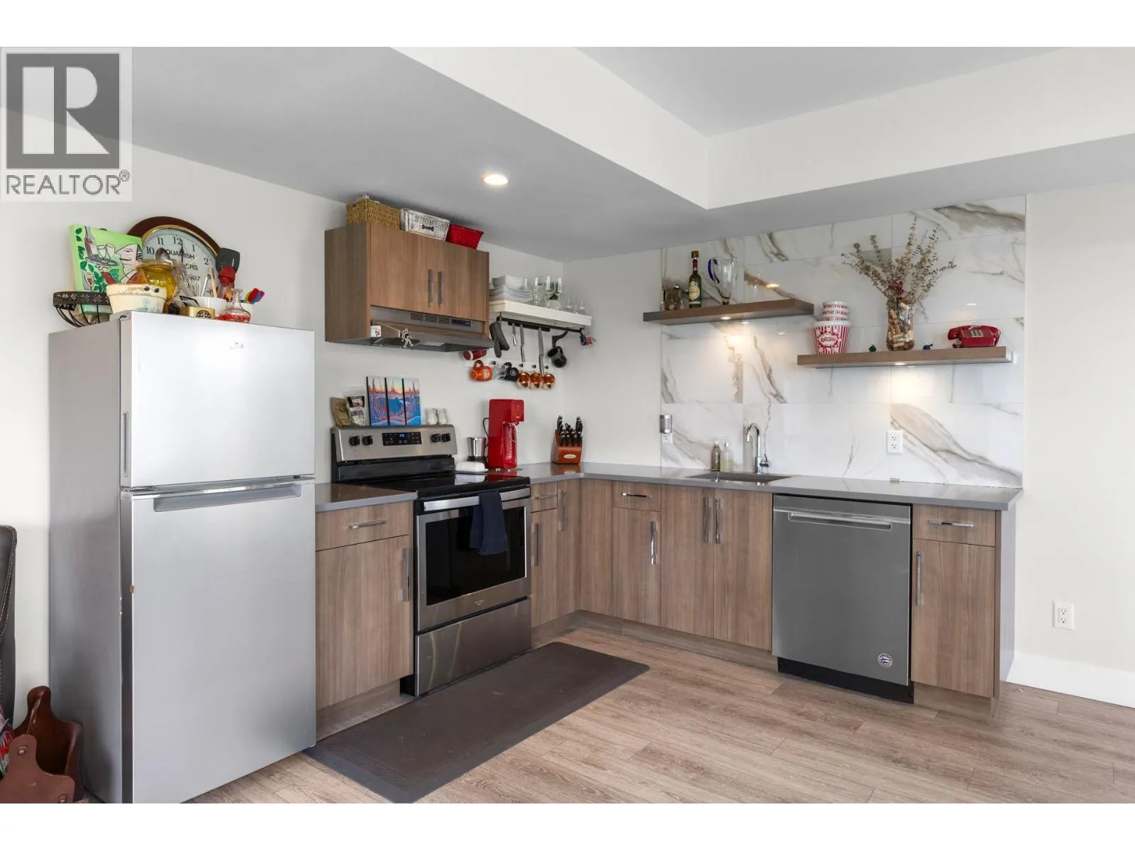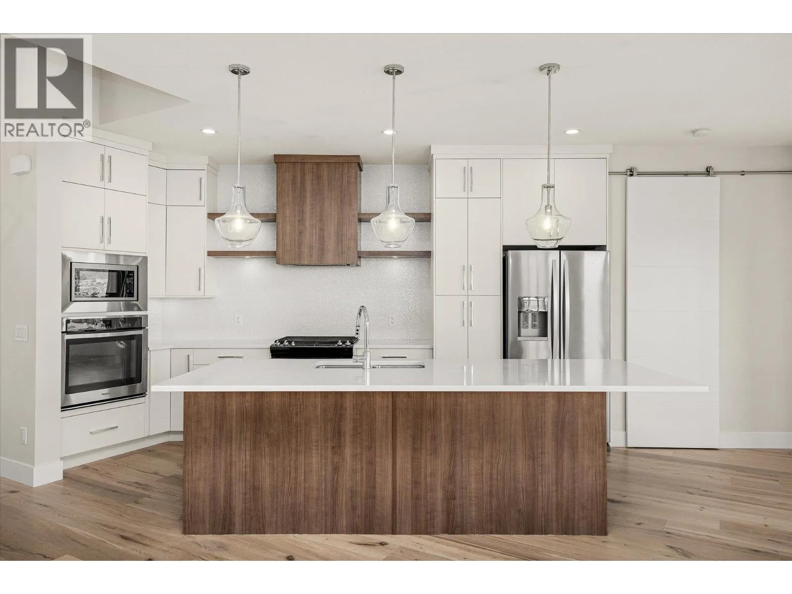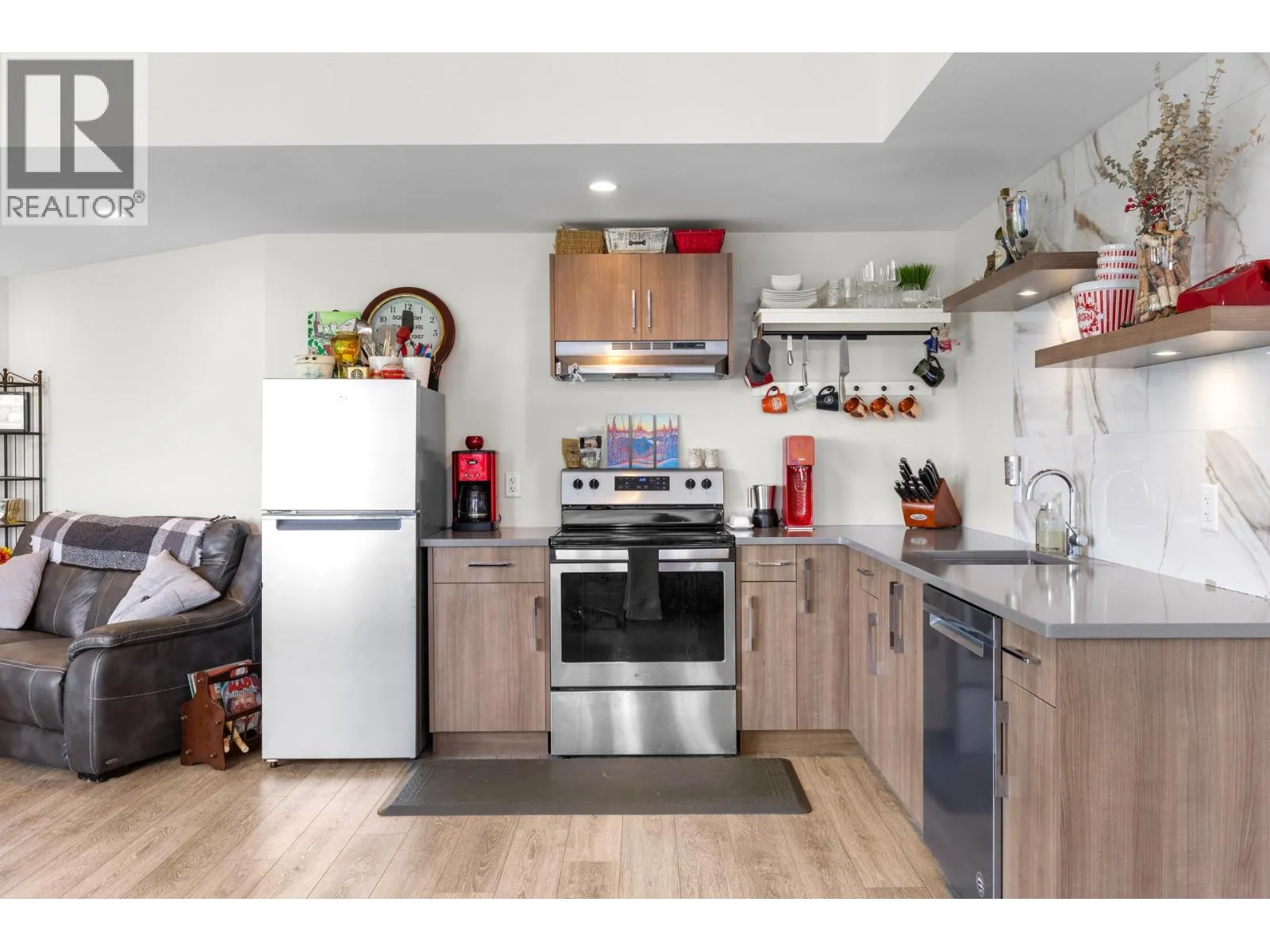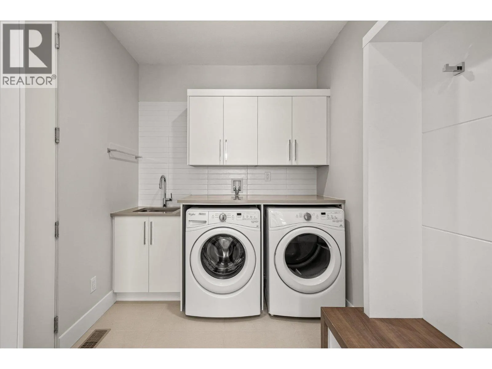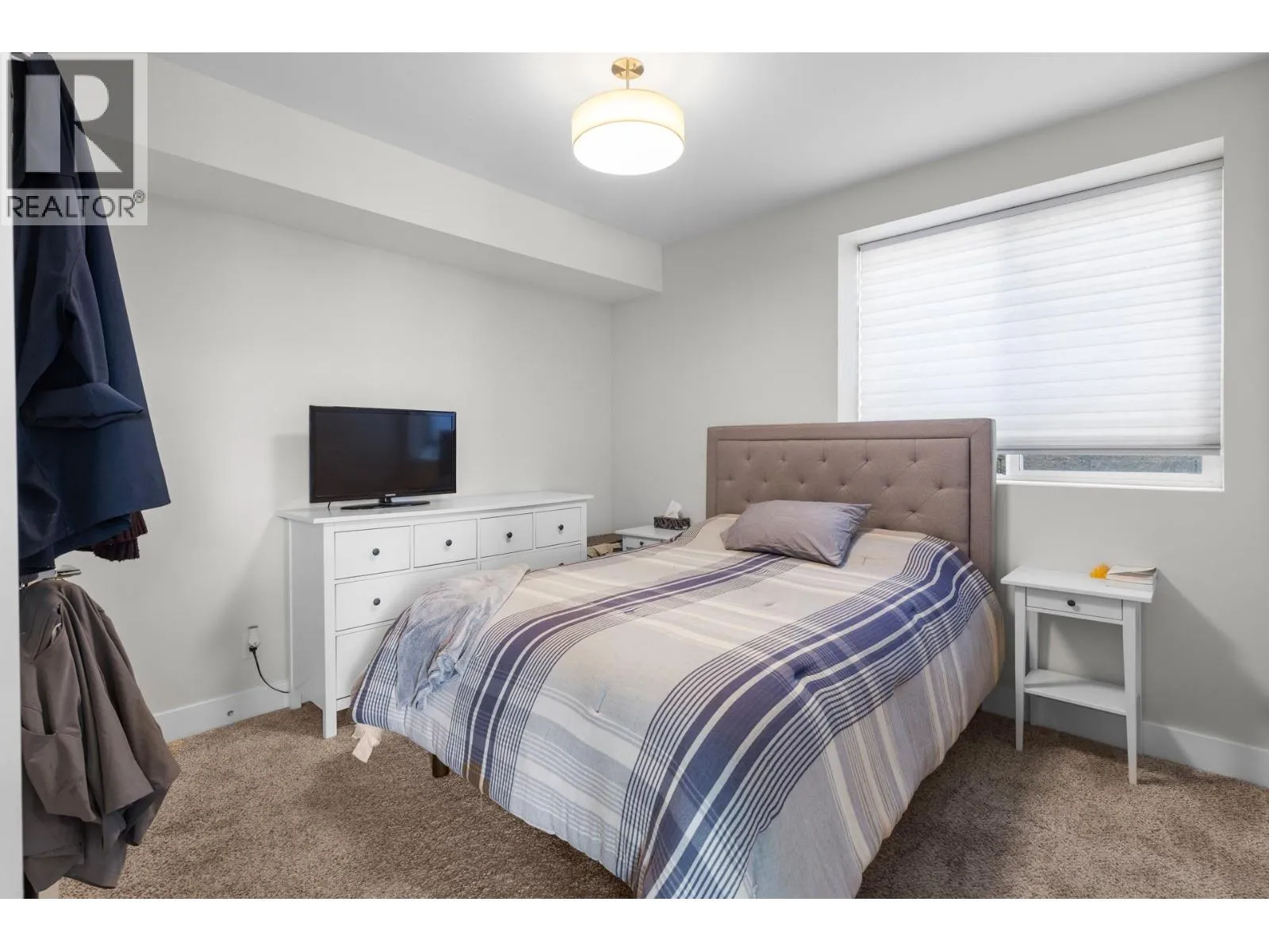Welcome to this stunning four-bedroom, four-bathroom walk-out rancher with a fully self-contained one-bedroom suiteâan exceptional opportunity you wonât want to miss. Built by award-winning Gibson Homes, this residence showcases thoughtful design and quality craftsmanship throughout. From the moment you enter, soaring eleven-foot ceilings create a grand first impression, leading into a bright and expansive open-concept living space. The gourmet kitchen is designed for both everyday living and entertaining, featuring quartz countertops, stainless steel appliances, and a spacious dining area. Step out onto the large balcony and take in breathtaking mountain and valley viewsâperfect for morning coffee or unwinding in the evening. The primary suite offers a true retreat, complete with a walk-through closet and a spa-inspired ensuite. Enjoy marble-style tile, heated floors, motion-sensor lighting, a freestanding platform tub, and a sleek glassless shower for a luxurious, elevated experience. The lower level provides a generous recreation room, an additional bedroom, and a full bathroomâideal for family or guests. The one-bedroom suite features a private side entrance and is thoughtfully positioned to maintain privacy from the main living areas, making it perfect for extended family or rental income. Still under partial home warranty and conveniently located just minutes from downtown Kelowna, shopping, schools, the airport, UBCO, and golf courses, this home offers both comfort and convenience in an unbeatable location. (id:27476)