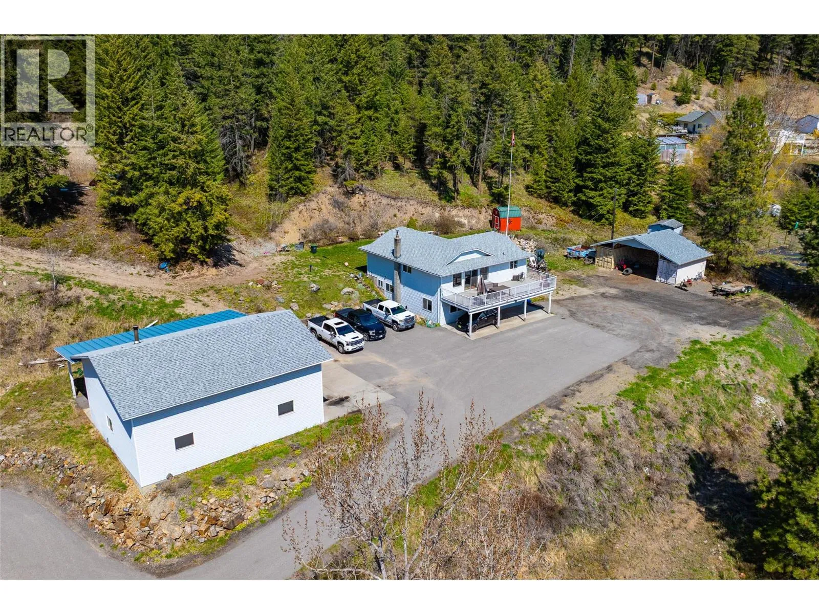 Charming two-storey home on 10.17 acres in Joe Rich! Discover the perfect blend of rural tranquility and modern convenience with this spacious two storey single family home situated on 10.171 acres in the rural Joe Rich community. Boasting four bedrooms plus a den and two and a half bathrooms, this home offers ample space for growing families or multi-generational living, with the added bonus of being easily suiteable—two full kitchens already in place, and room for customization making it great for extended family or rental income. Step outside to take in the incredible valley views from your large entertainer’s deck, or explore the expansive property featuring two versatile outbuildings and a massive detached garage and shop space. The garage is a mechanic's dream, complete with a 20 foot overhead door, servicing pit, wood-burning stove for heat, and a 50 foot head of water pump at 220 feet—ideal for a home business or hobbyist. Practical features include a recently serviced water well with new pump and piping, underground irrigation, a paved driveway, and covered parking for your recreational vehicles. Storage will not be an issue with ample space throughout the home and property. Not located in the ALR, this property offers flexibility for future use. Joe Rich is known for its tight-knit community, stunning natural surroundings, and easy access to all that Kelowna has to offer being just twelve minutes from town. Whether you're looking for a peaceful retreat or a place to run your home based business, this property checks all the boxes. (id:27476)