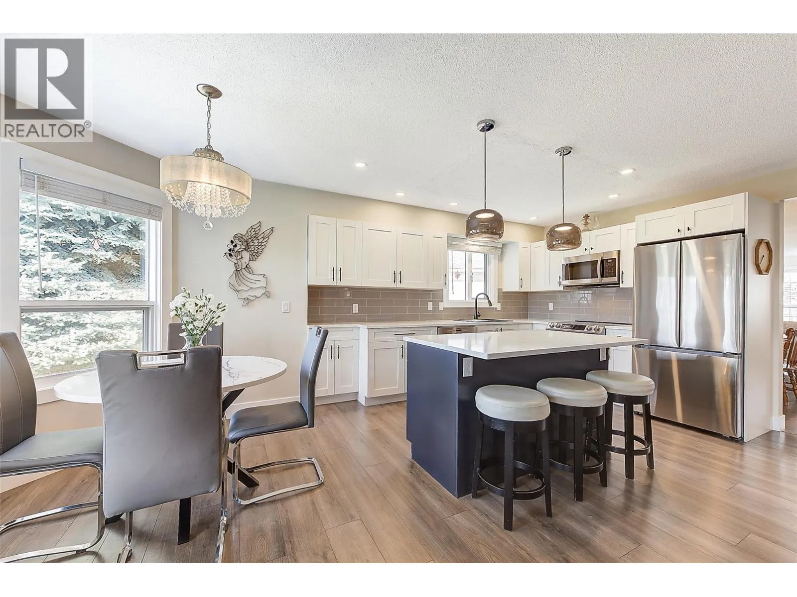 Comfort, convenience,& carefree living define this move-in ready rancher in the highly sought-after 55+ gated community of Sandstone. Thoughtfully updated & easy to maintain, this home is ideal for downsizers seeking a simplified lifestyle without sacrificing quality or space. The bright white island kitchen features quartz counters, pantry cupboards, quality Samsung appliances, and a sunny bay-window nookâperfect for relaxed mornings. The layout offers two bdrms & two full baths (spacious primary suite with walk-in shower). A family room with brick gas fireplace is a welcoming place to unwind. An enclosed sunroom provides year-round enjoyment with minimal upkeep. Rancher style home makes day-to-day living effortless. Recent upgrades incl a Bosch three-rack dishwasher, Samsung washer and dryer, LED lighting throughout, added ceiling light in the primary bedroom, updated furnace, and a new garage door with opener motor. All Poly-B plumbing in the home and to the street has been replaced. The double garage includes added ceiling insulation and a 220 plugâideal for an electric heater or future EV charger. Step outside and enjoy walkable access to Guisachan Village for groceries, cafés, and daily needs, with Kelowna General Hospital, parks, beaches, and the Greenway just minutes away. Residents enjoy exceptional amenities including indoor and outdoor pools, swirl pool, clubhouse, gym, library, RV parking, and wide, level roads. One dog or one cat permitted (size restrictions). (id:27476)