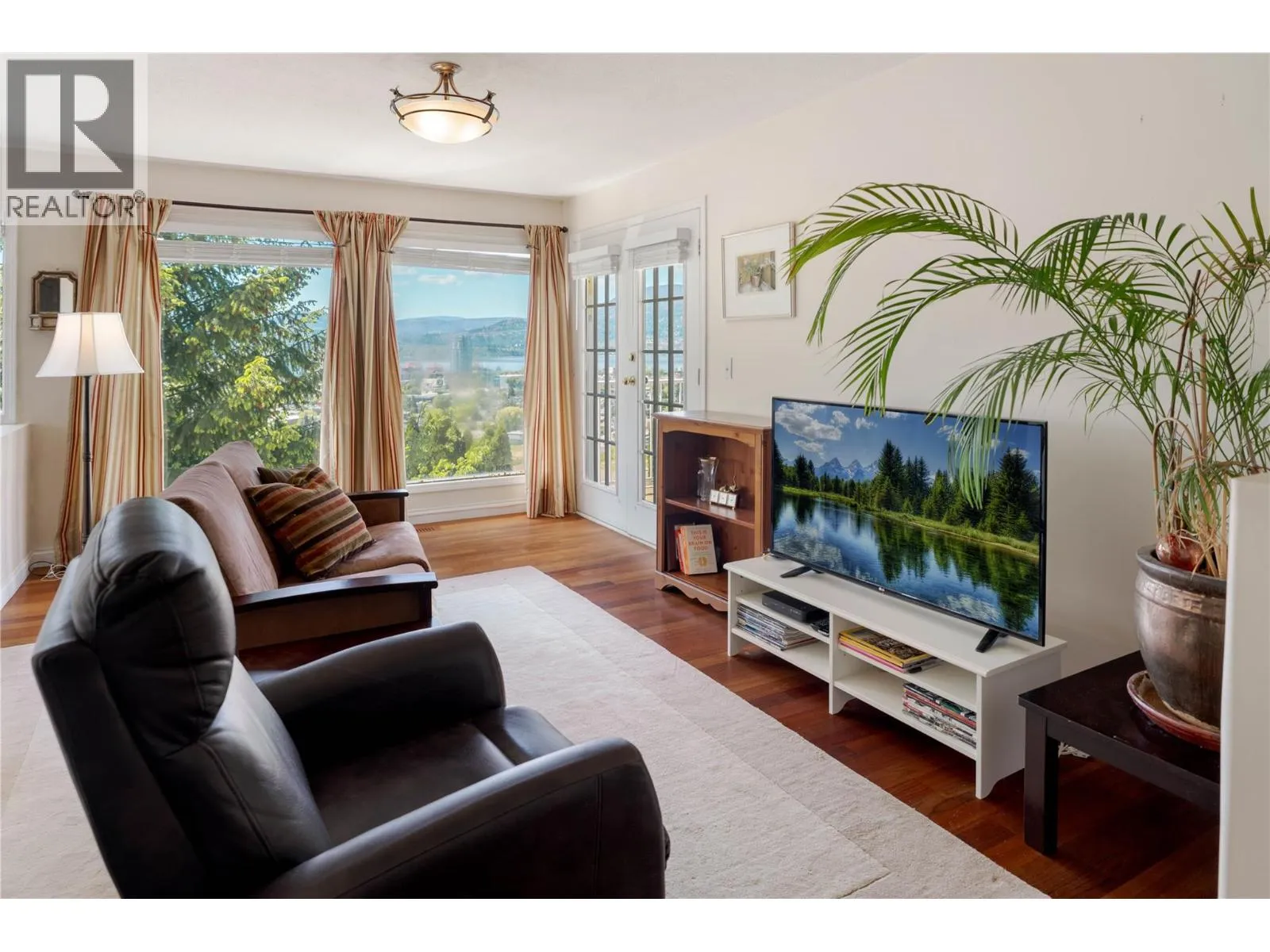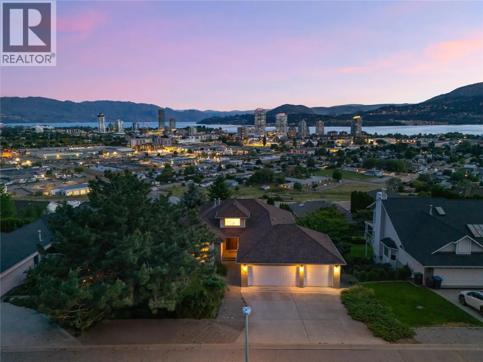 Perfectly positioned to capture panoramic lake, city, bridge, and mountain views, this spacious walk-out rancher offers over 3,600 sq. ft. of well-maintained living in a central yet quiet Kelowna neighbourhood. Set on a 0.25-acre lot minutes to downtown, shops, schools, and dining, the home blends comfort, flexibility, and character. Inside, large windows flood the home with natural light and frame the breathtaking scenery. Ideal for family life, the layout includes 4 bedrooms, 3 full bathrooms, multiple living areas, and space to easily convert to a 5th bedroom. Real hardwood and tile flooring, granite countertops, and stainless appliances reflect quality throughout. The kitchen opens to a casual family room and view deckâperfect for relaxed mornings and sunset evenings. The formal living and dining rooms offer refined hosting space, while the primary suite enjoys a walk-in closet, ensuite, and deck access. The lower level holds additional bedrooms, a full bath, and flexible space for gym, office, or studio. Walk out to a private yard with fruit trees, mature landscaping, garden, and flat green space suited for play or a future pool. A third level with garden access offers added storage and plumbing for future potential. A triple garage provides ample storage and hobby space. With Knox Mountainâs trails steps away, this is a rare opportunity to own a lake view property in one of Kelownaâs most sought-after settings. (id:27476)