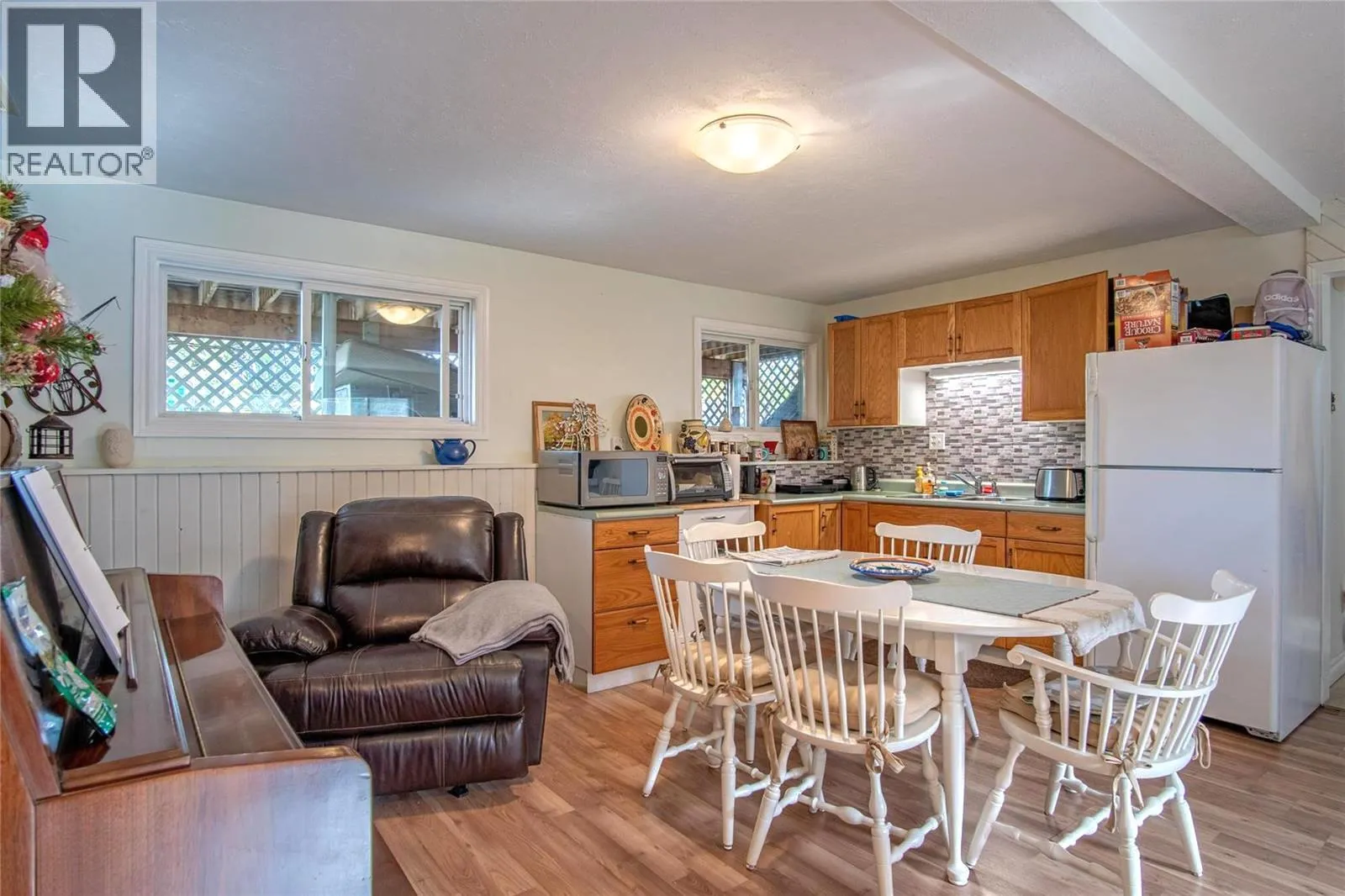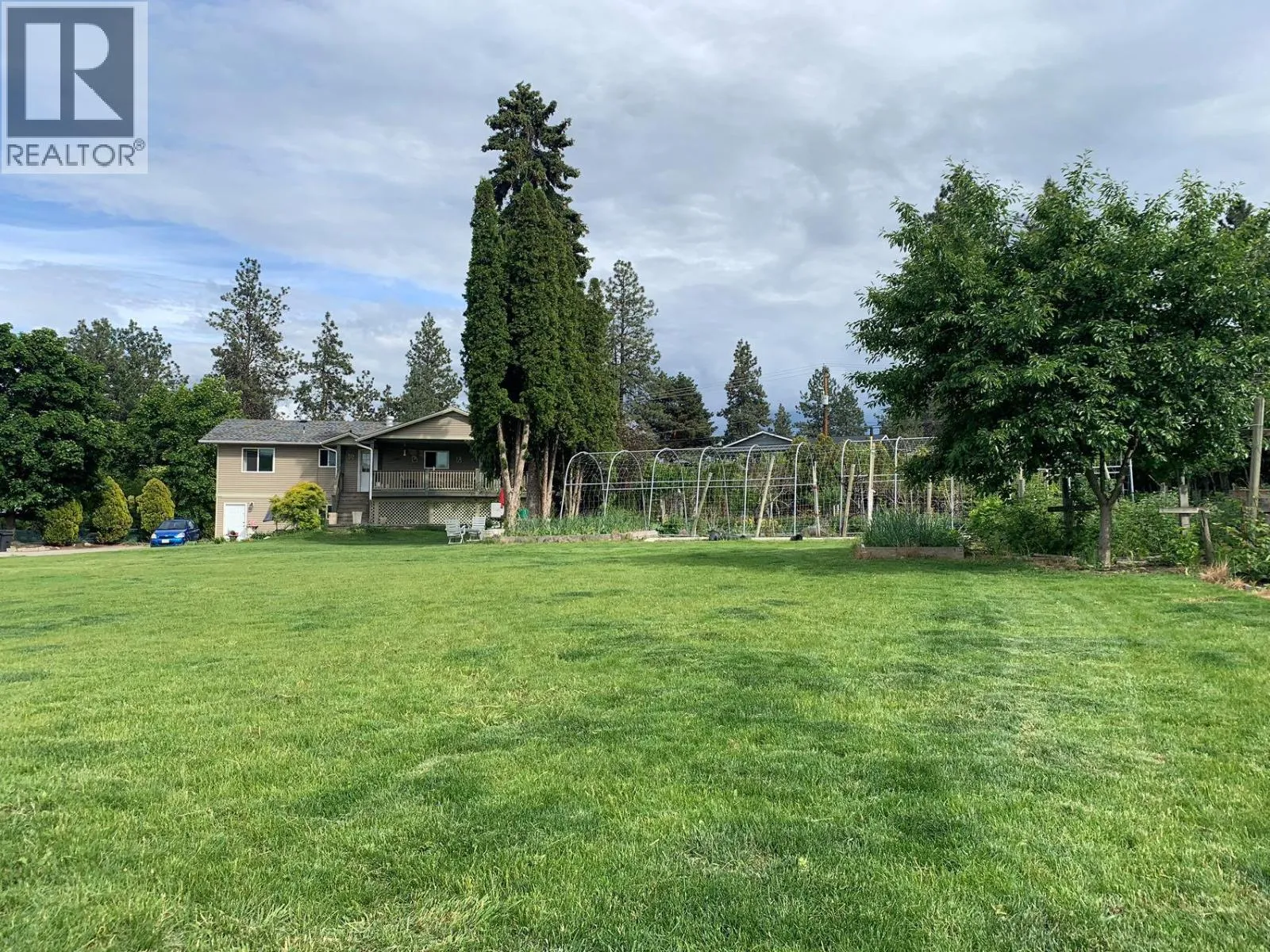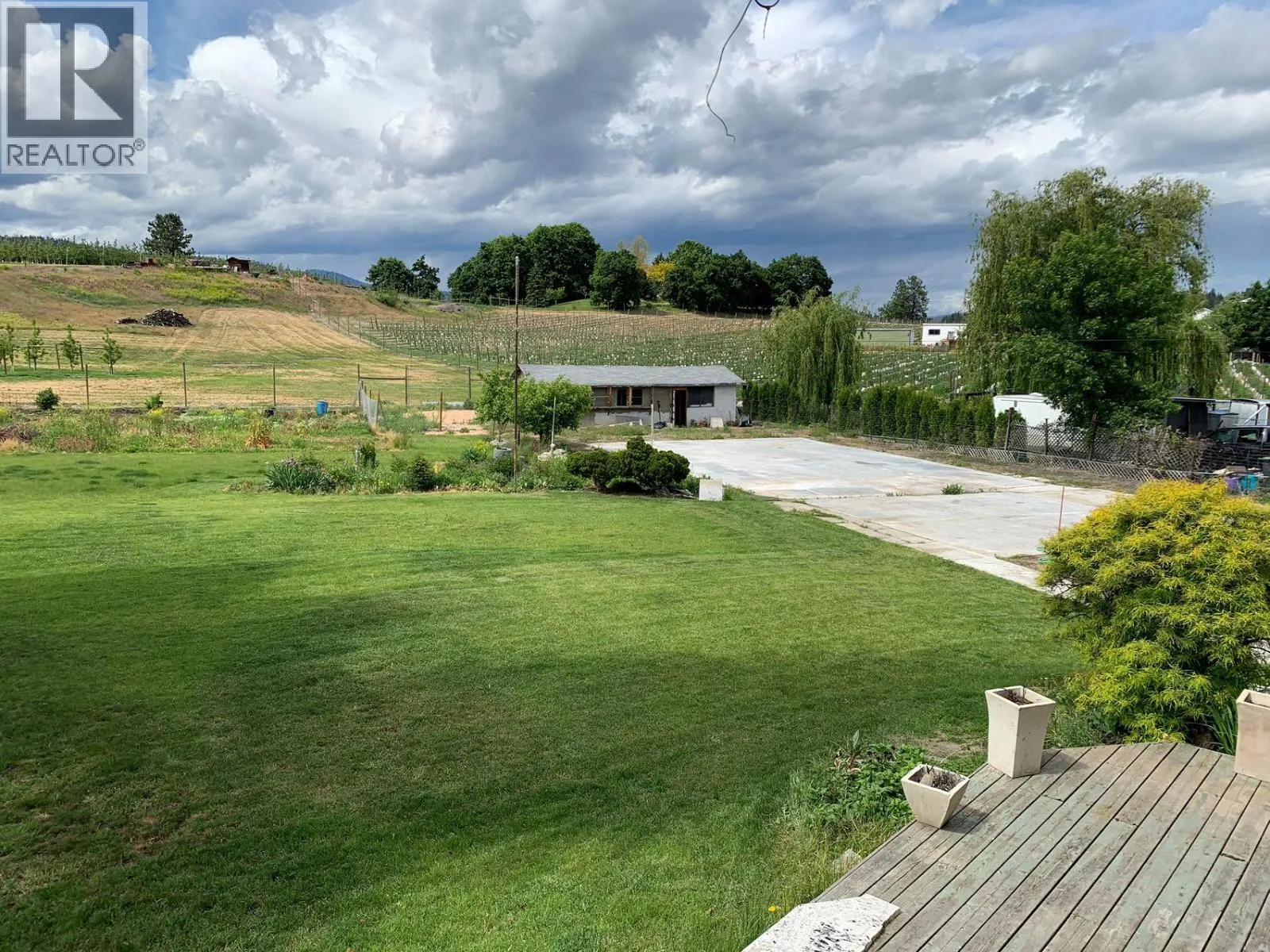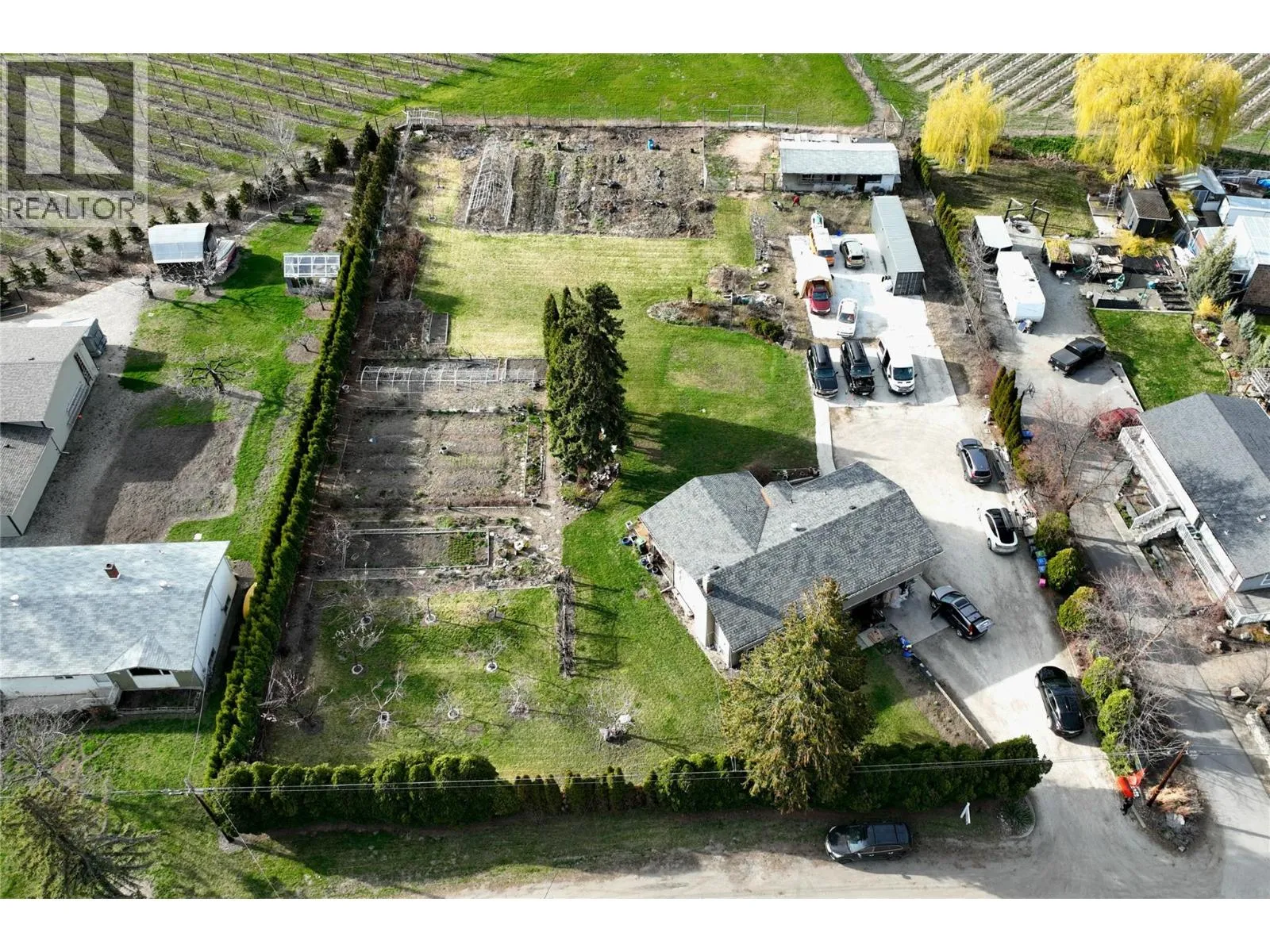 Rare opportunity to own 1 acre in the heart of Glenmore just 5 minutes to the airport, shopping, schools, and everyday amenities, offering excellent rental income of over $5,000 per month and strong long-term holding potential, all while being outside the ALR which provides flexibility for future development opportunities. This 4 bedroom, 2 bathroom home includes a 1 bedroom in-law suite with separate entrance that serves as a valuable mortgage helper or rental unit, with the main floor featuring a semi open concept kitchen, three bedrooms, one bathroom, hardwood floors, ceiling molding, gas fireplace, water softener, and warm vintage character, while the basement offers a self-contained one bedroom suite with kitchen and bathroom and its own entrance. Enjoy peaceful outdoor living with a covered deck overlooking a private landscaped setting with approximately 30 fruit trees including peaches, apples, pears, cherries, plums, and apricots, along with perennial flowers, vegetable gardens, lush greenery, and fenced chicken coop area creating a quiet retreat. Recent updates include demolition of the previous workplace structure in 2023, new fencing and hot water tank in 2024, new deck, updated upstairs fridge, stove, washer and dryer, and new downstairs washer and fridge in 2025, making this a move-in ready property with future potential for a carriage home, workshop, B&B, or long-term land appreciation in one of Glenmore's most desirable locations. (id:27476)