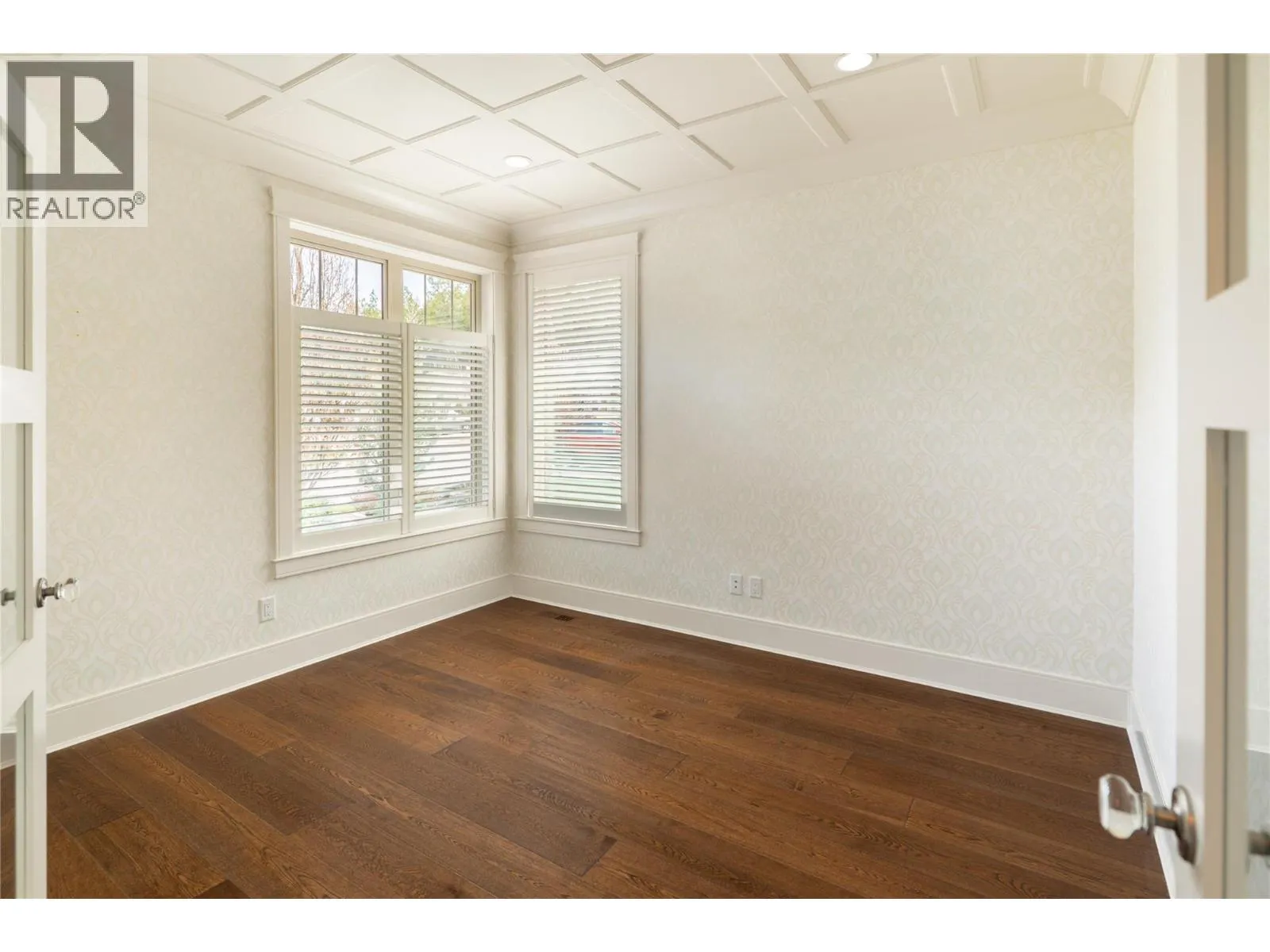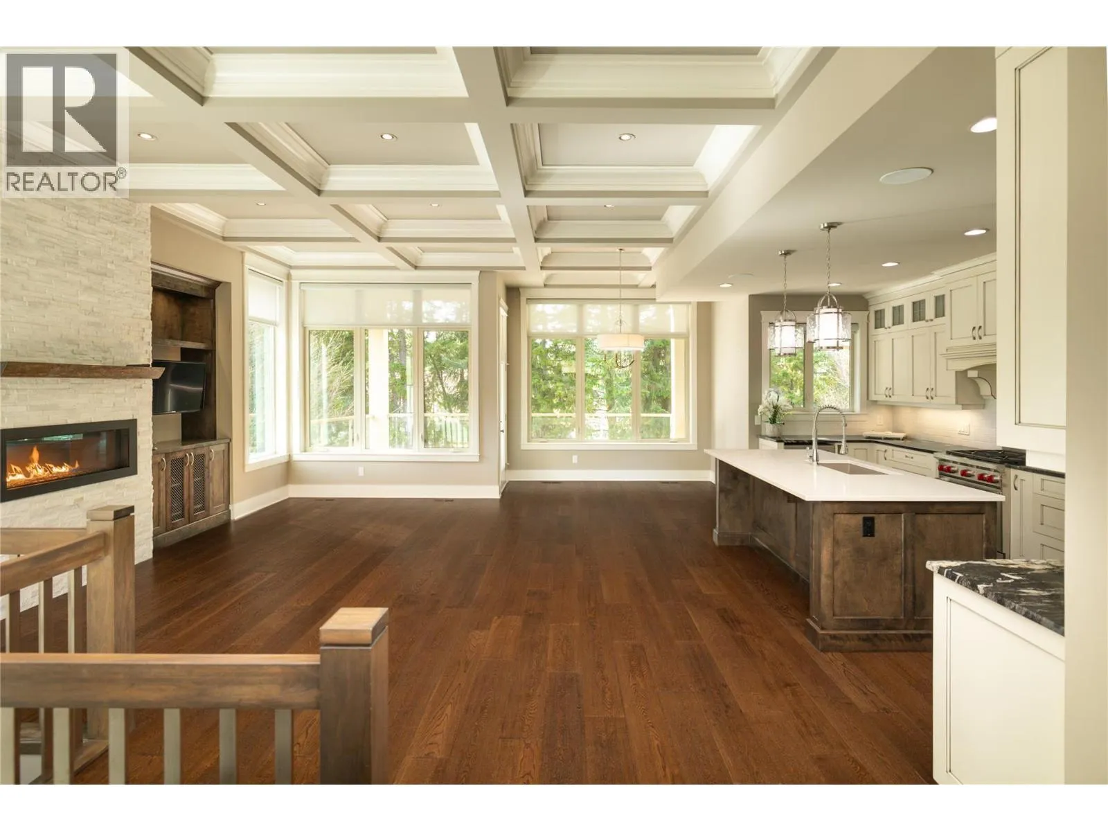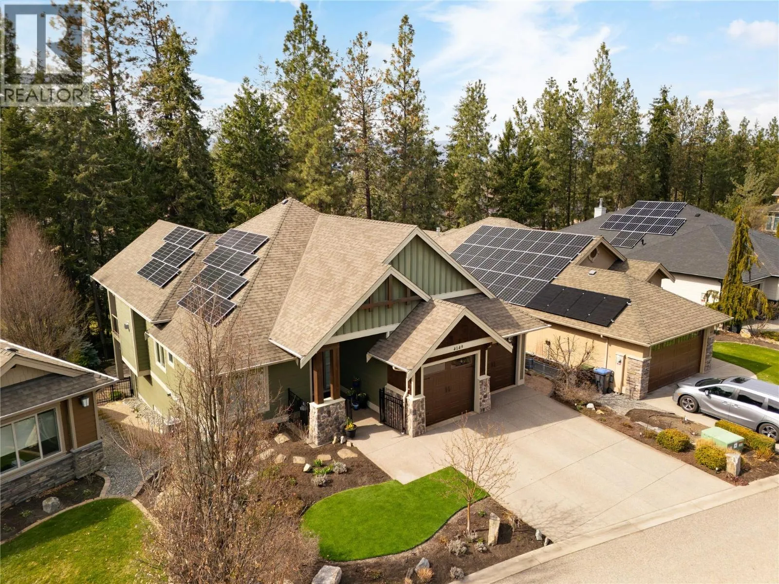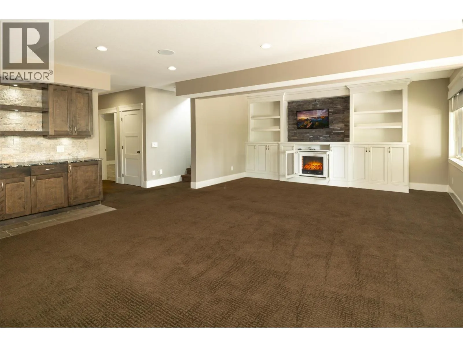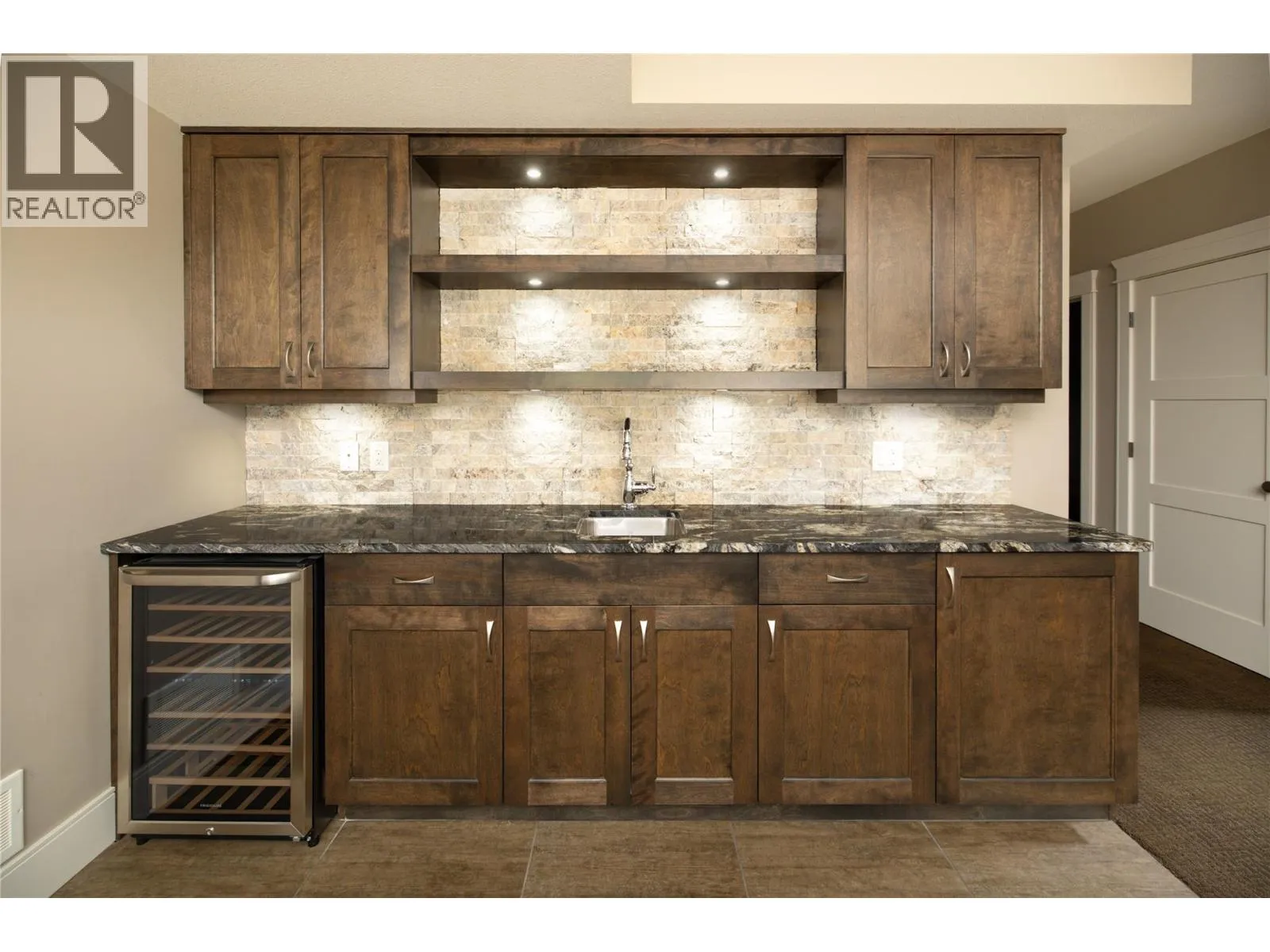 Set within the sought-after community of Gallaghers Canyon, this beautifully finished home offers timeless design, thoughtful upgrades, and a private setting surrounded by mature greenery. Striking curb appeal with stone and Hardie siding, a covered entry, and a charming front patio welcomes you in. Inside, tall ceilings and coffered detailing create a refined feel throughout. The kitchen blends style and function with classic white cabinetry, large island, Wolf range, and walk-in pantry. The living room centres around a floor-to-ceiling stone fireplace with custom built-ins, while a main floor office/den with custom ceiling detail adds versatility. The primary suite is a true retreat with crown moulding accents, designer wallpaper, and a well-appointed ensuite featuring dual sinks, a soaker tub, and walk-in shower. Cohesive cabinetry and finishes carry throughout the home. The lower level is designed for entertaining, offering a spacious recreation area, family room with built-ins, and a stunning wet bar with storage. Walk out to a covered patio overlooking private, lush greenspace. Two additional bedrooms and a full bathroom complete the space. Low-maintenance landscaping, water feature in the front, built-in speakers, and electric blinds add to the homeâs comfort and convenience. Enjoy the Gallaghers lifestyle with access to golf, fitness centre, indoor pool, tennis courts, clubhouse, and scenic walking trailsâjust minutes from everyday amenities. (id:27476)