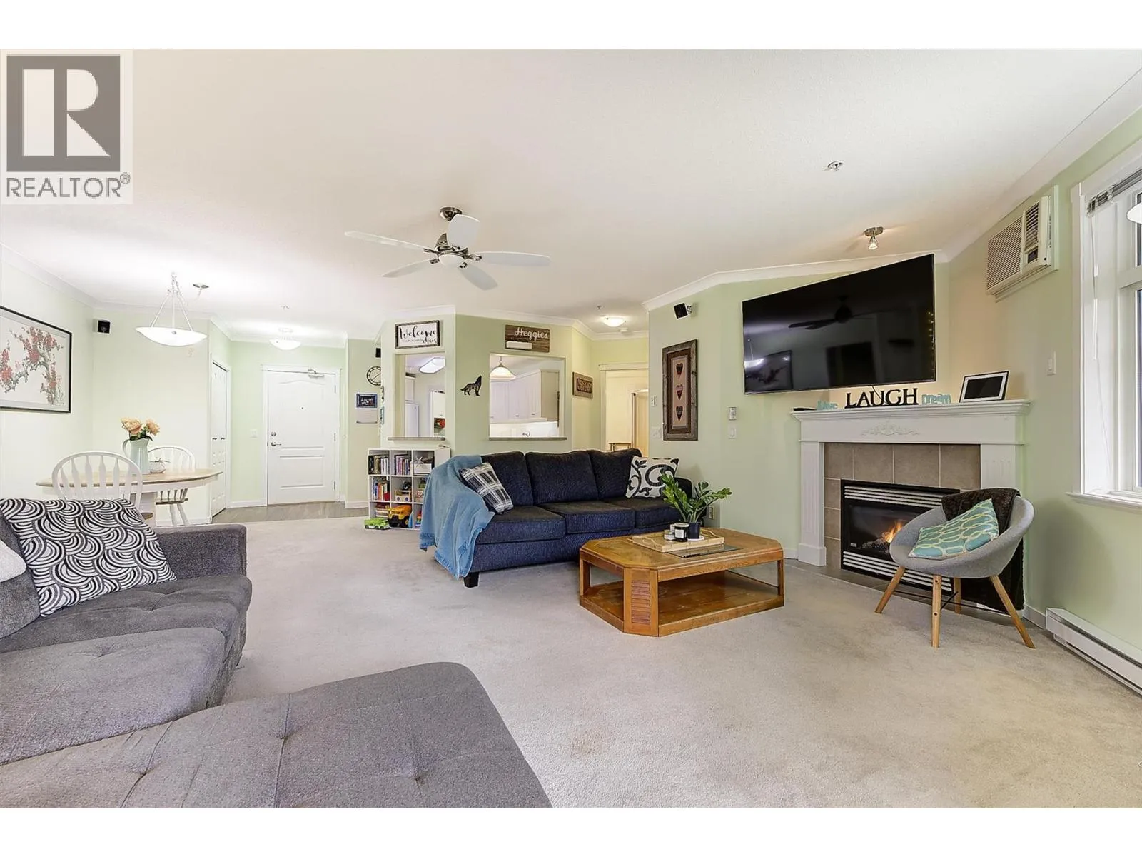 Welcome home to this bright and spacious 2 bed, 2 bath + den corner unit in the heart of family friendly North Glenmore. Bathed in natural light from large windows and tall ceilings, this inviting home offers an open, airy feel ideal for busy family life. The oversized living room is a cozy gathering spot, complete with a gas fireplace for chilly Okanagan evenings and a large wrap-around deck perfect for summer BBQs or morning coffee. The kitchen features generous storage, a convenient eat-in dining area, and pass-through windows to the living room that create a wonderful open concept flow, making it easy to cook while staying connected with the family. The huge master bedroom is a true retreat, boasting a walk-in closet and a full ensuite. A flexible den provides extra space for a home office, playroom, or homework station. The second bedroom is well-sized for kids or guests. This meticulously maintained complex is packed with amenities including: a fitness center, amenities room, bike storage, woodworking shop, and even a guest suite.. One underground parking spot and a spacious storage locker are included. Location is unbeatable for families â you're directly across the street from a park, and only a short walk to groceries, shops, and restaurants. Enjoy North Glenmoreâs quiet, safe streets and proximity to top-rated schools in this established, welcoming neighborhood. Book your private showing today! (id:27476)