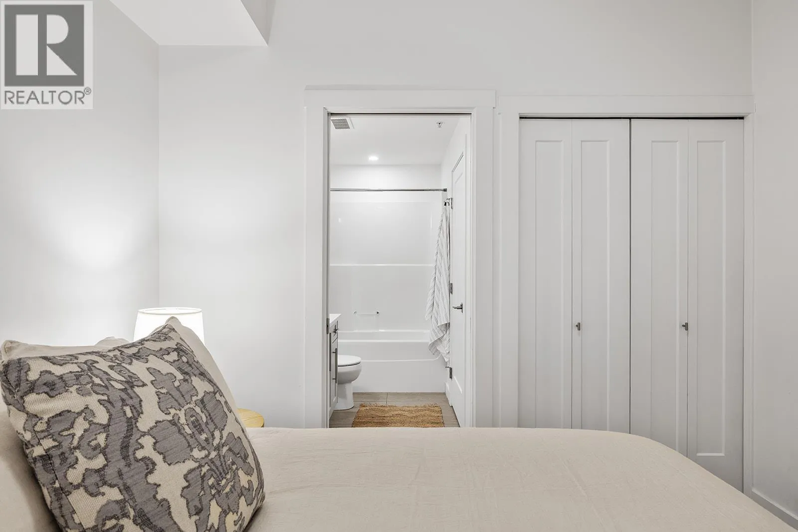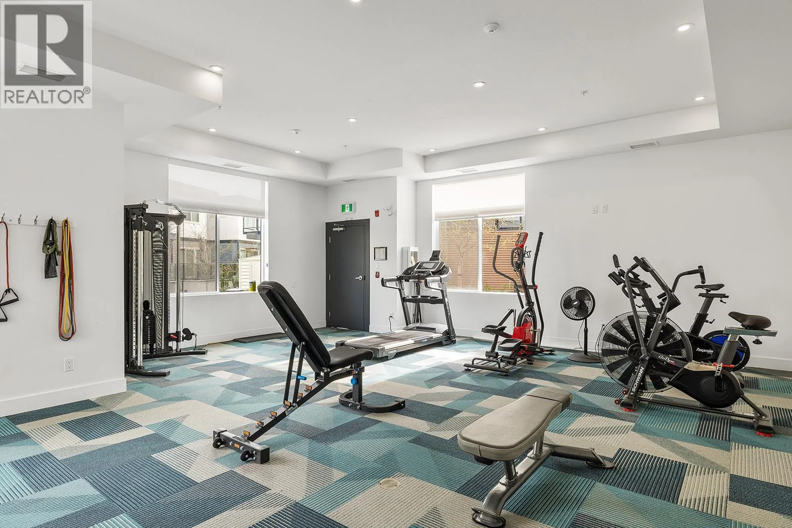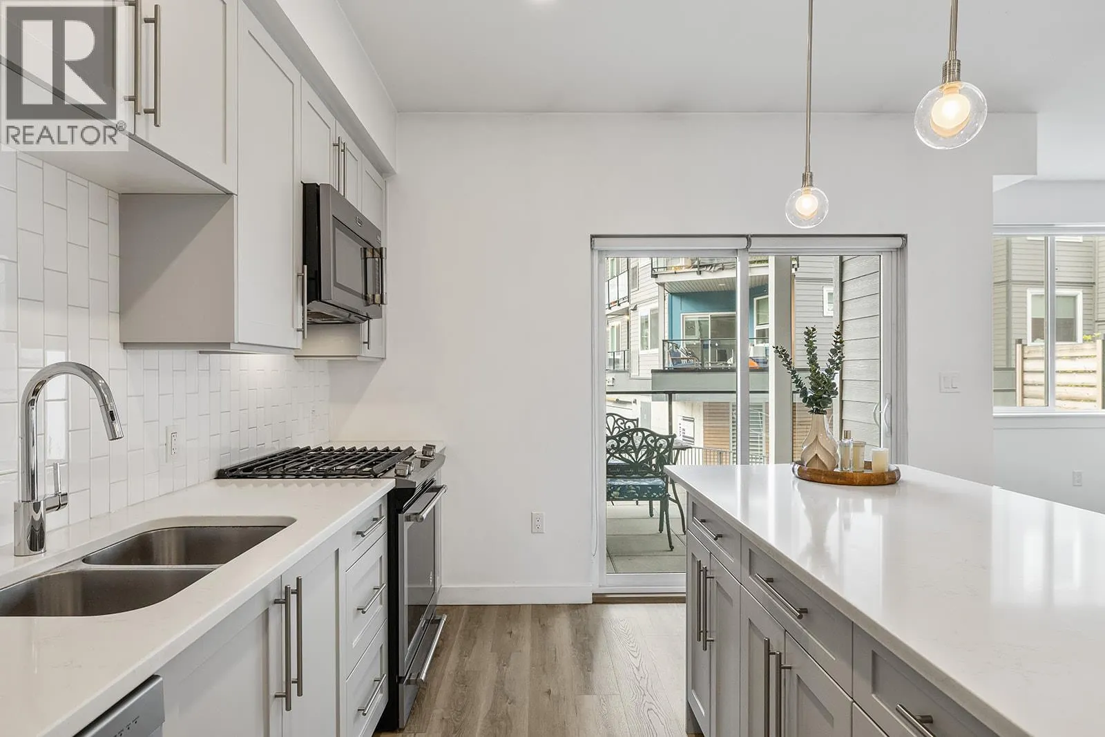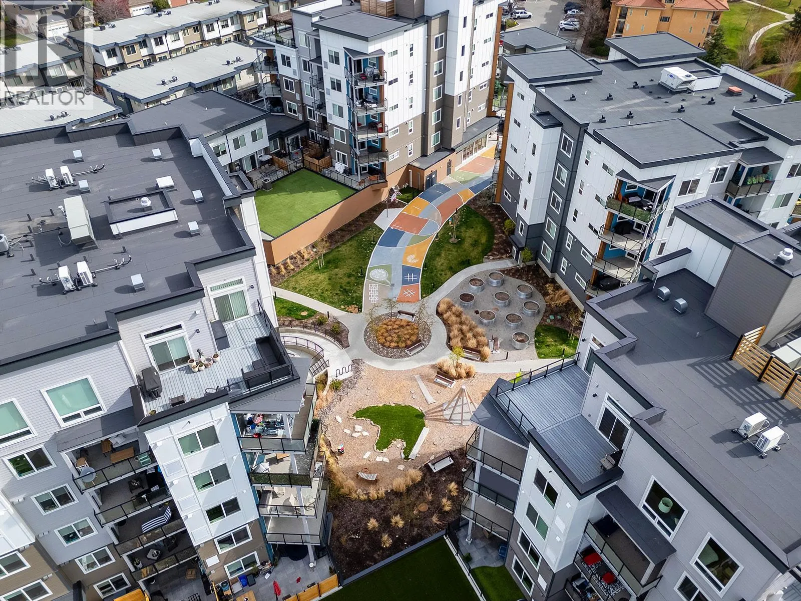 Immaculate 2 bed, 1 bath condo in Green Square, perfectly positioned in the heart of the Lower Mission. This lightly lived-in home shows like new and offers outstanding value for first-time buyers, professionals, or investors. Located just steps to schools, parks, beaches, and the future Casorso Park, and close proximity to Okanagan College and H2O Adventure + Fitness Centre, shopping, and restaurants. The modern kitchen features a large island with quartz countertops, upgraded Maytag stainless steel appliances, and sleek soft-close cabinetry. The open-concept layout flows seamlessly into the living space, leading to a massive partially covered deck complete with natural gas BBQ hookup, glass railings, and beautiful mountain views. Both bedrooms have large closets and sliding barn doors, offering flexibility for privacy or an open feel. The second bedroom easily functions as a home office or guest space. Green Square offers a full range of amenities including a fitness centre, rooftop patio with BBQ area, community garden, childrenâs playground, and a convenient dog wash station. Pet-friendly living at its best with 2 dogs (no vicious breeds), 2 cats or 1 of each allowed! Vacant and move-in readyâan exceptional opportunity in one of Kelownaâs most sought-after neighbourhoods. (id:27476)