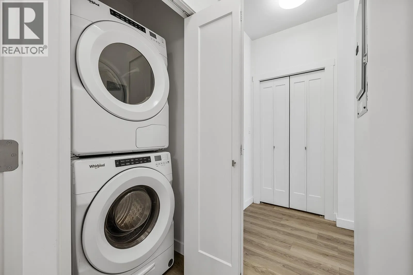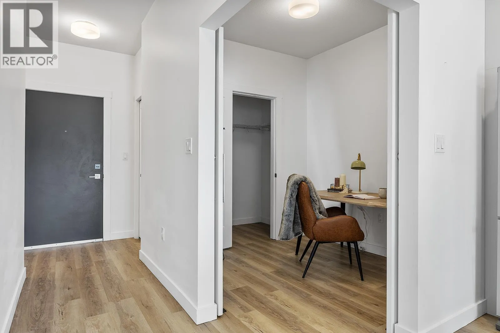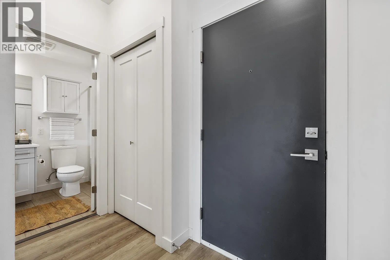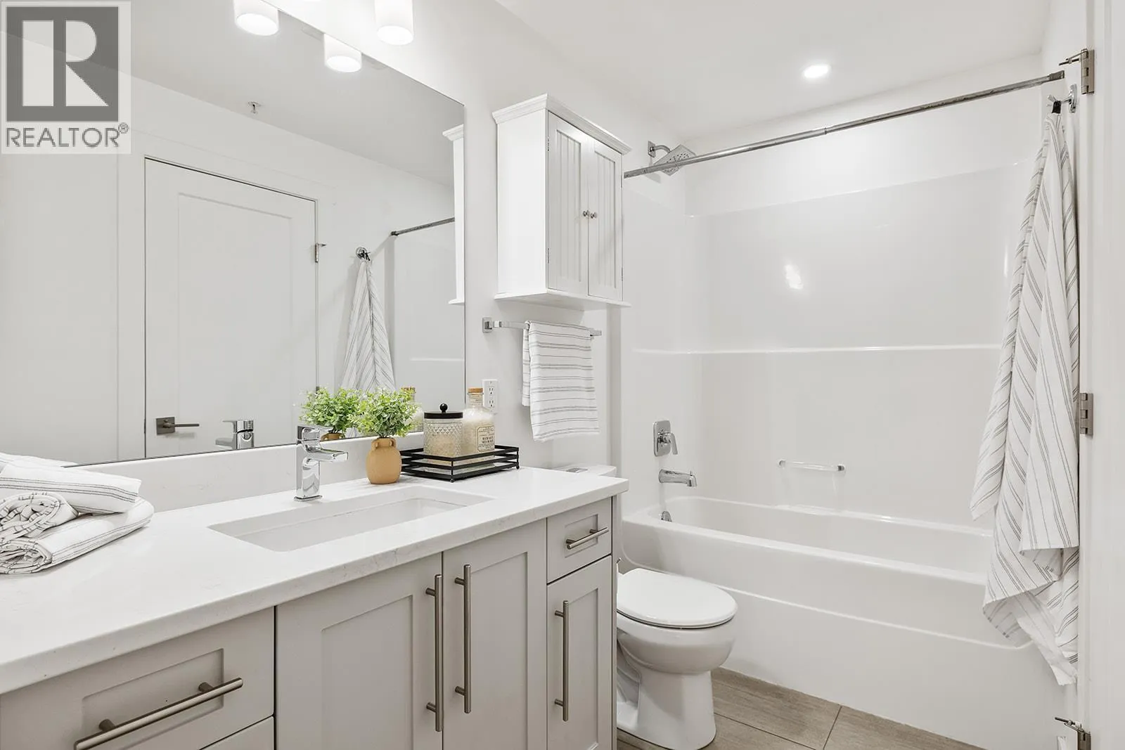 Immaculate 2 bed, 1 bath condo in Green Square, perfectly positioned in the heart of the Lower Mission. This lightly lived-in home shows like new and offers outstanding value for first-time buyers, professionals, or investors. Located just steps to schools, parks, beaches, and the future Casorso Park, and close proximity to Okanagan College and H2O Adventure + Fitness Centre, shopping, and restaurants. The modern kitchen features a large island with quartz countertops, upgraded Maytag stainless steel appliances, and sleek soft-close cabinetry. The open-concept layout flows seamlessly into the living space, leading to a massive partially covered deck complete with natural gas BBQ hookup, glass railings, and beautiful mountain views. Both bedrooms have large closets and sliding barn doors, offering flexibility for privacy or an open feel. The second bedroom easily functions as a home office or guest space. Green Square offers a full range of amenities including a fitness centre, rooftop patio with BBQ area, community garden, childrenâs playground, and a convenient dog wash station. Pet-friendly living at its best with 2 dogs (no vicious breeds), 2 cats or 1 of each allowed! Vacant and move-in readyâan exceptional opportunity in one of Kelownaâs most sought-after neighbourhoods. (id:27476)