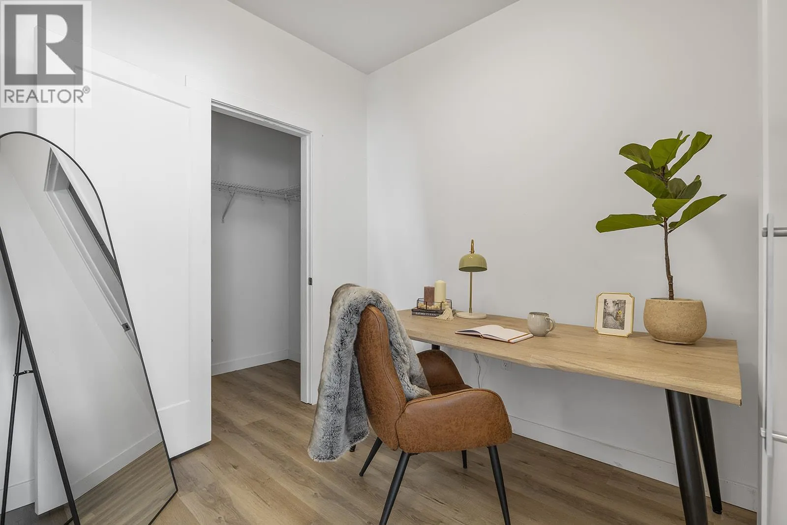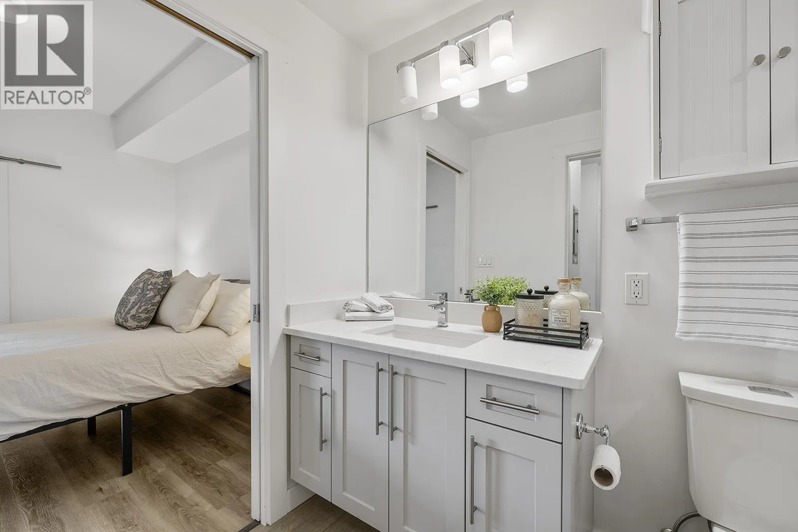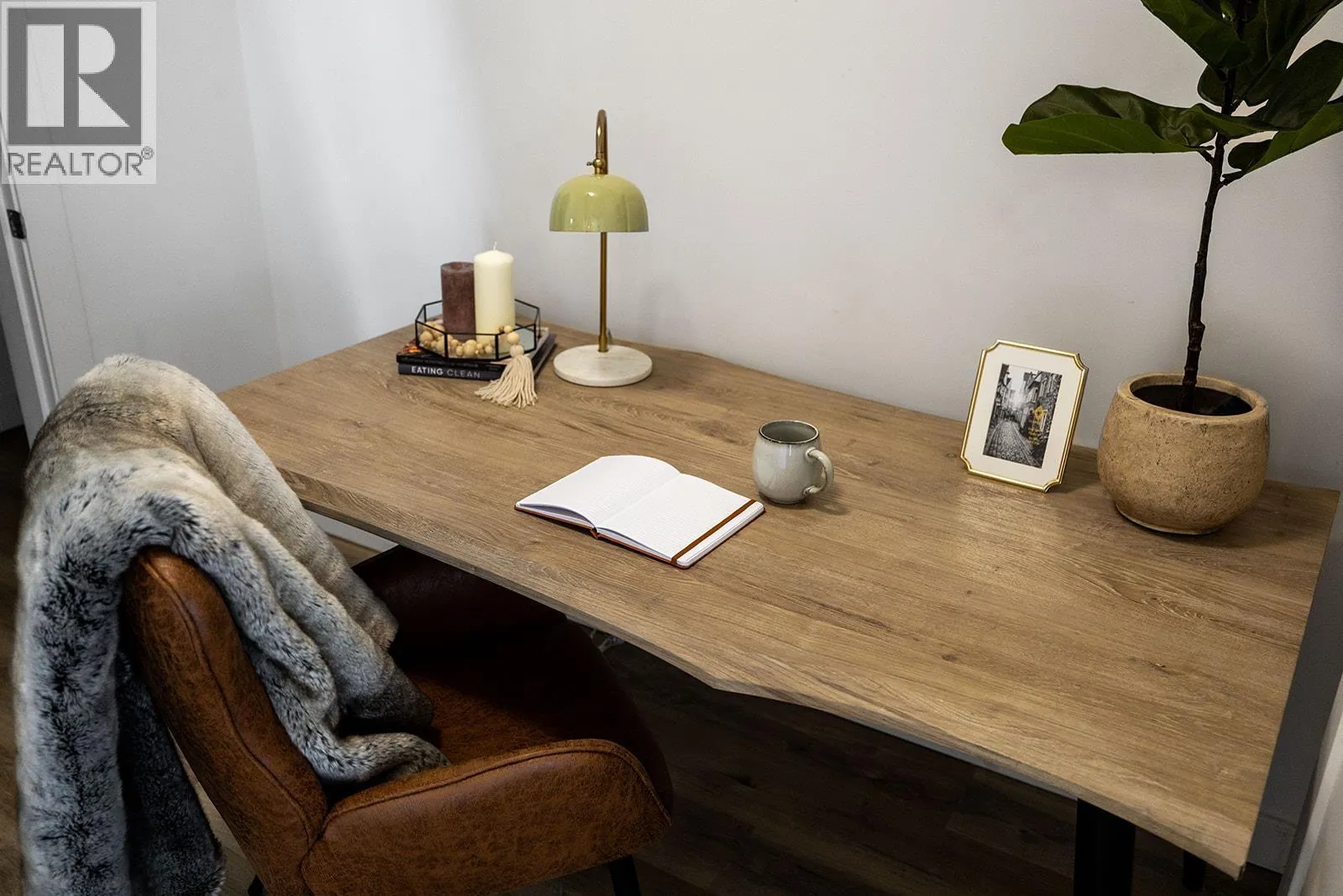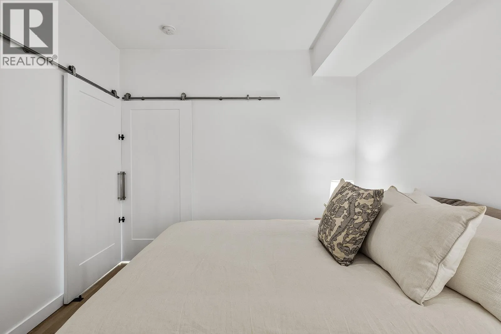 Immaculate 2 bed, 1 bath condo in Green Square, perfectly positioned in the heart of the Lower Mission. This lightly lived-in home shows like new and offers outstanding value for first-time buyers, professionals, or investors. Located just steps to schools, parks, beaches, and the future Casorso Park, and close proximity to Okanagan College and H2O Adventure + Fitness Centre, shopping, and restaurants. The modern kitchen features a large island with quartz countertops, upgraded Maytag stainless steel appliances, and sleek soft-close cabinetry. The open-concept layout flows seamlessly into the living space, leading to a massive partially covered deck complete with natural gas BBQ hookup, glass railings, and beautiful mountain views. Both bedrooms have large closets and sliding barn doors, offering flexibility for privacy or an open feel. The second bedroom easily functions as a home office or guest space. Green Square offers a full range of amenities including a fitness centre, rooftop patio with BBQ area, community garden, childrenâs playground, and a convenient dog wash station. Pet-friendly living at its best with 2 dogs (no vicious breeds), 2 cats or 1 of each allowed! Vacant and move-in readyâan exceptional opportunity in one of Kelownaâs most sought-after neighbourhoods. (id:27476)