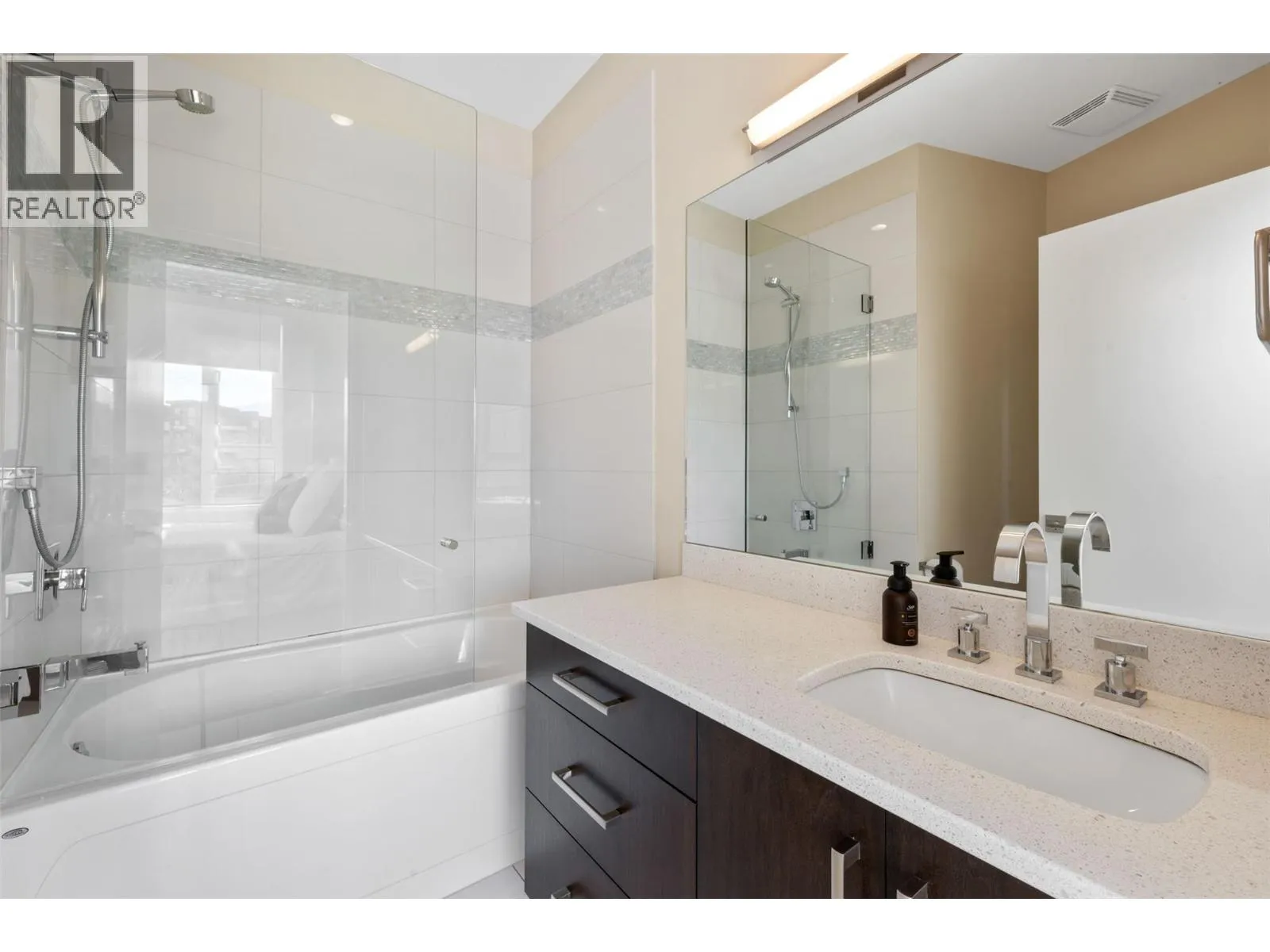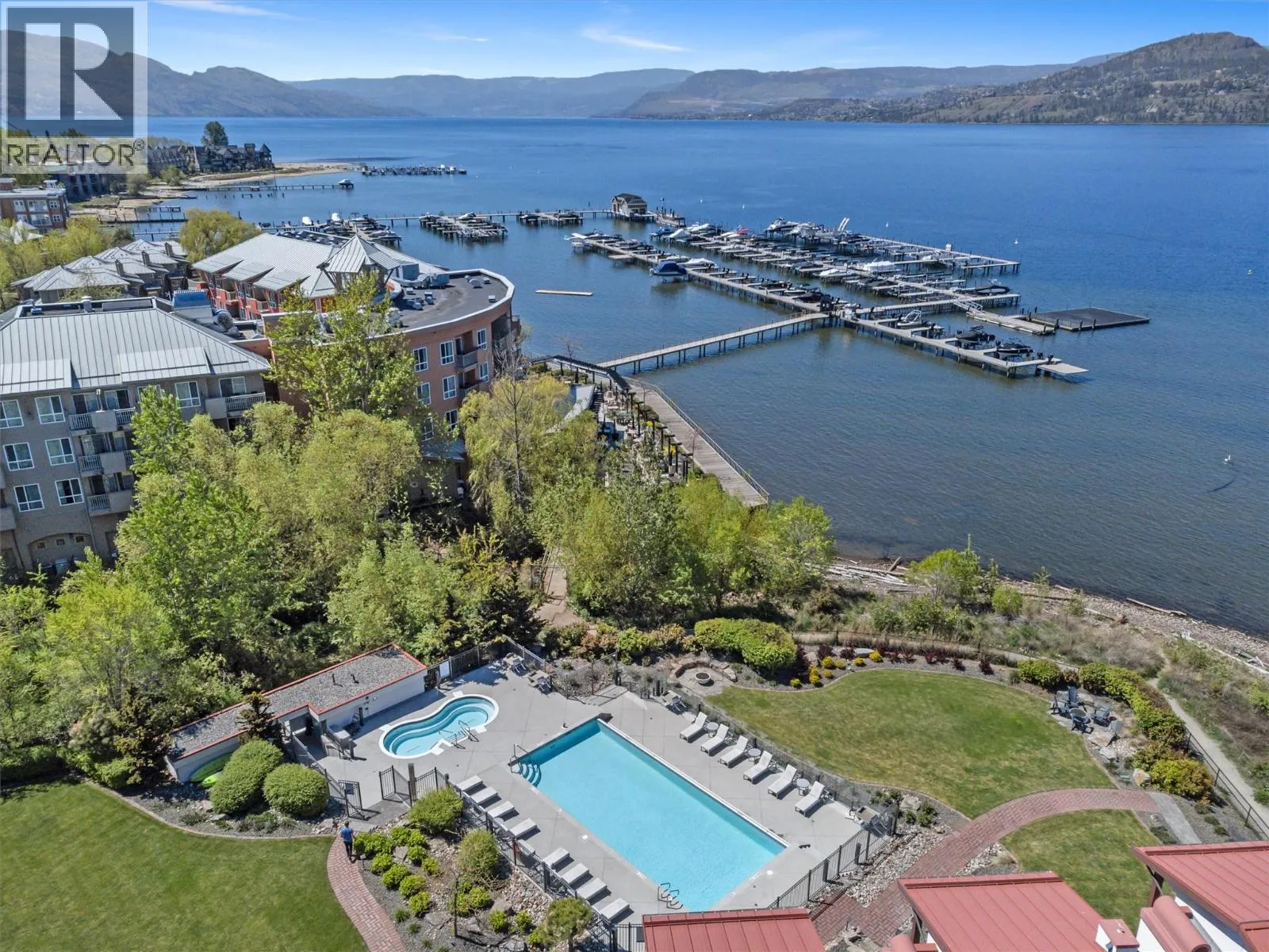 Exceptional lakefront value!This is your opportunity to own a stunning lakefront townhome in one of the Lower Missionâs most exclusive, resort-style communities. Perfectly located between Manteo Resort and Rotary Beach, this sought-after complex offers a private, upscale lifestyle that feels like a year-round vacation.This split-level corner unit offers incredible value for lakefront living, featuring 2 oversized bedrooms, 3 full bathrooms, and a bright open-concept layout designed for entertaining. Seamless indoor-outdoor living with bi-fold glass doors off the living room and primary bedroom.The chef-inspired kitchen includes a premium Wolf gas range, large island, and built-in wine fridge. Enjoy your private patio overlooking Rotary Beach with a built-in Napoleon BBQ.Resort-style amenities include a heated lakeside infinity pool, hot tub, and private beach access. Includes your own boat slip at Eldorado Marina with an upgraded 8000 lb lift just steps from your door. Geothermal heating/cooling, garage + 2 parking spots. (id:27476)