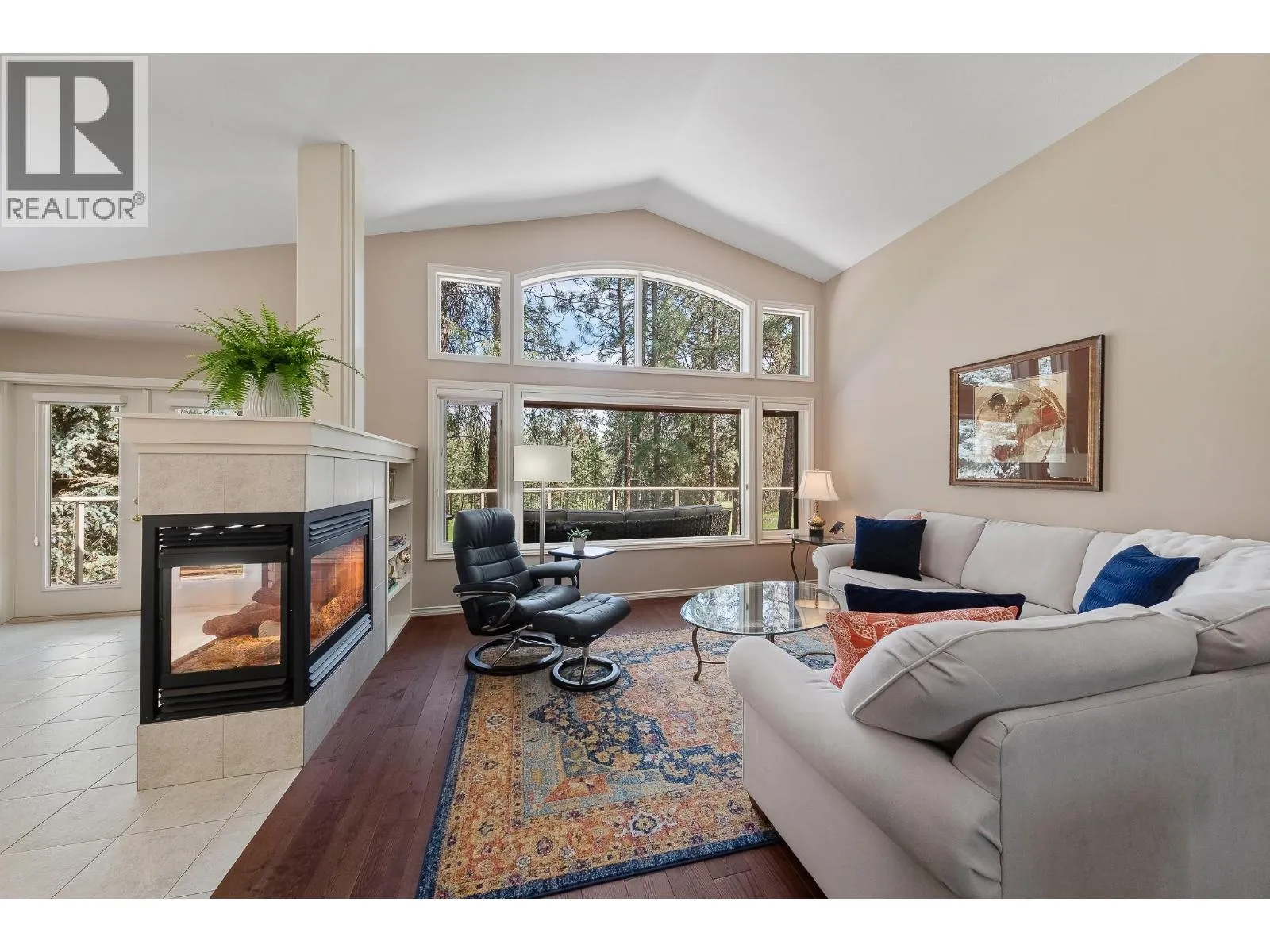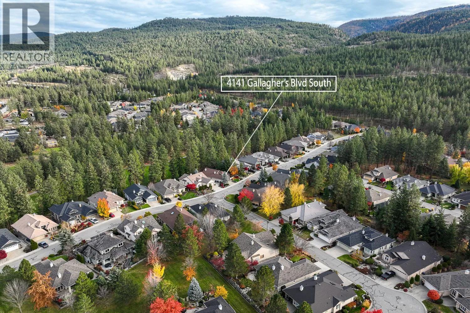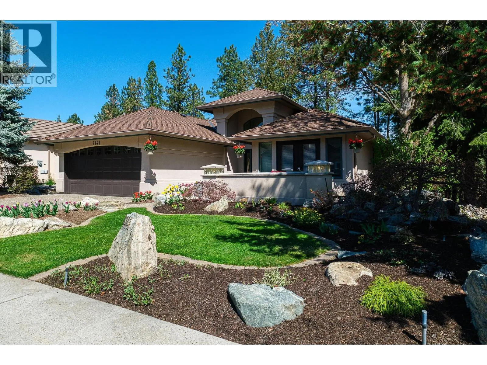 Welcome to 4141 Gallaghers Blvd S! This beautifully maintained 4 Bed + Den walk-out rancher offers both comfort and lifestyle in Kelowna's exclusive Gallaghers Canyon community. Enjoy the open living plan with luxurious 3-sided gas fireplace and crisp white kitchen with Bosch wall oven. King-sized primary suite features access to the upper deck, walk-in closet and spa-like ensuite bathroom with dual sink vanity, walk in shower and soaker tub! This level includes in-law suite potential with over 1,400 sq. ft. of living space, two bedrooms, a bathroom, a wet bar, a 2-sided gas fireplace, and radiant in-floor heating. Thoughtfully designed with plenty of built-in storage and multiple options for enjoying the beautiful Okanagan weather in your courtyard or overlooking the 14th fairway in the back. Gallagher's Canyon offers prized Golfing, Social Events, Pool, Fitness Center, Tennis, Arts and Crafts, and much more! Gallaghers is the Ultimate Okanagan Lifestyle community. (id:27476)