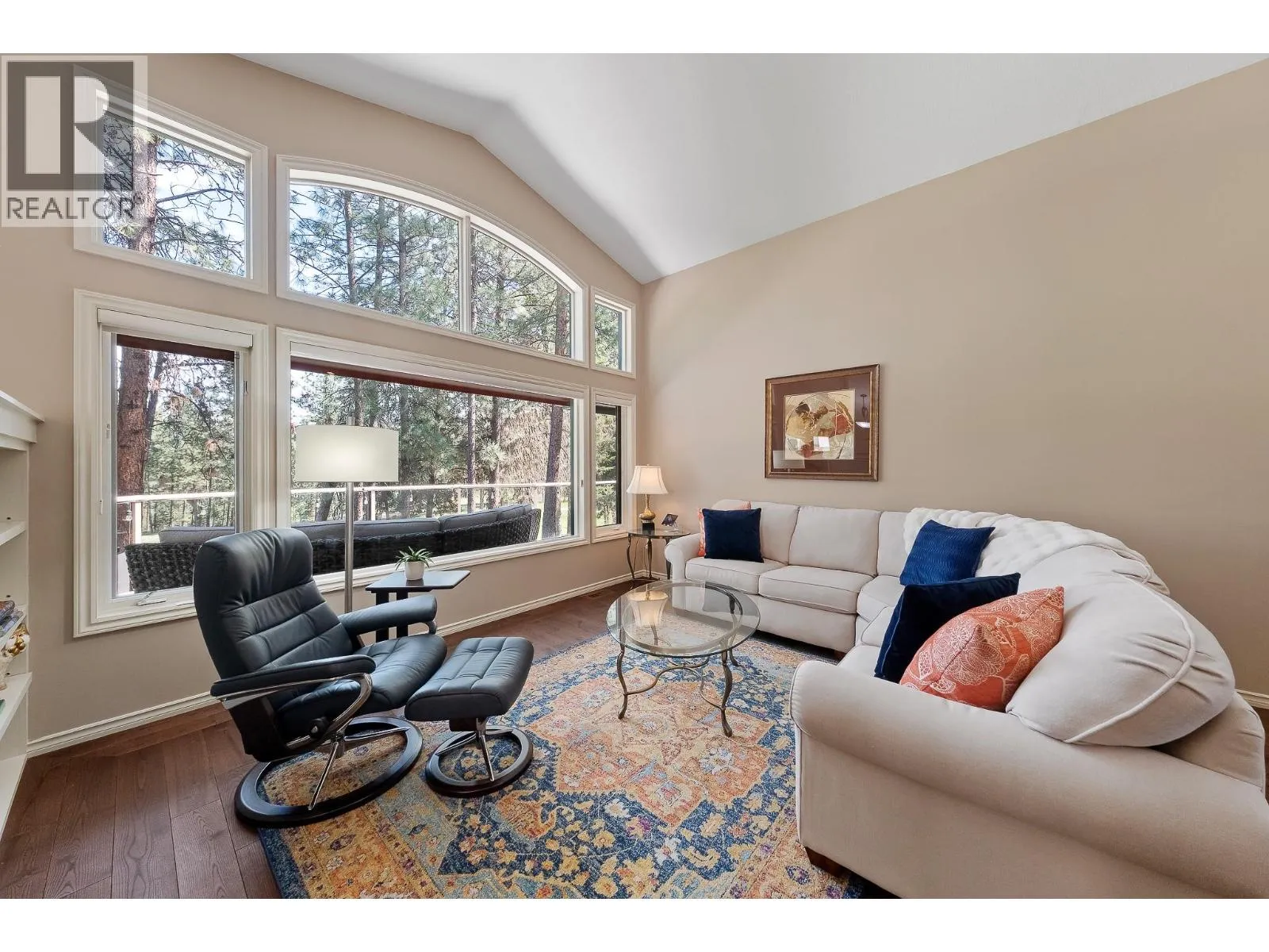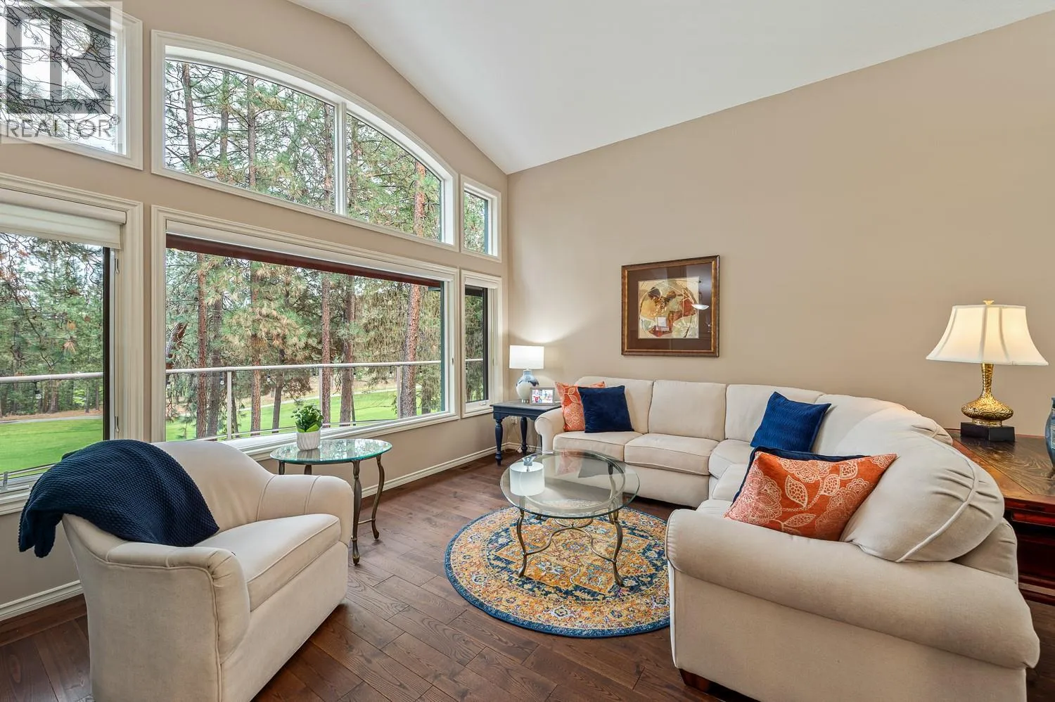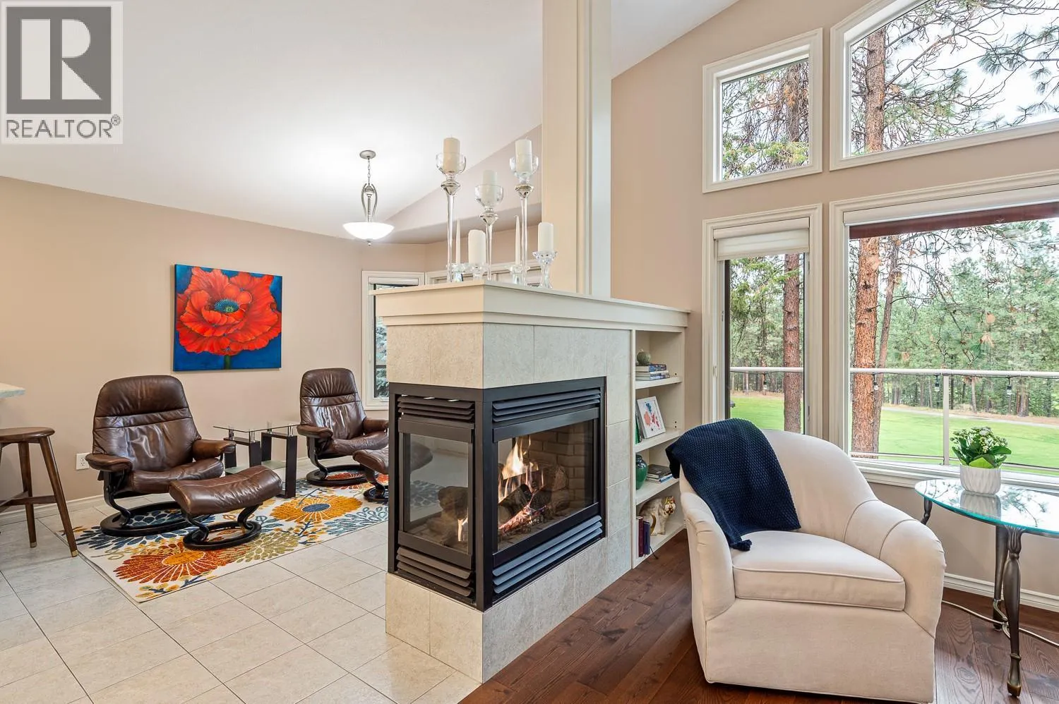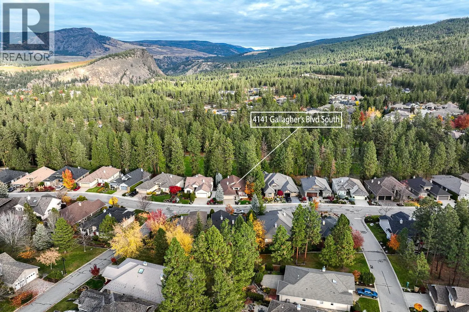 Welcome to 4141 Gallaghers Blvd S! This beautifully maintained 4 Bed + Den walk-out rancher offers both comfort and lifestyle in Kelowna's exclusive Gallaghers Canyon community. Enjoy the open living plan with luxurious 3-sided gas fireplace and crisp white kitchen with Bosch wall oven. King-sized primary suite features access to the upper deck, walk-in closet and spa-like ensuite bathroom with dual sink vanity, walk in shower and soaker tub! This level includes in-law suite potential with over 1,400 sq. ft. of living space, two bedrooms, a bathroom, a wet bar, a 2-sided gas fireplace, and radiant in-floor heating. Thoughtfully designed with plenty of built-in storage and multiple options for enjoying the beautiful Okanagan weather in your courtyard or overlooking the 14th fairway in the back. Gallagher's Canyon offers prized Golfing, Social Events, Pool, Fitness Center, Tennis, Arts and Crafts, and much more! Gallaghers is the Ultimate Okanagan Lifestyle community. (id:27476)
