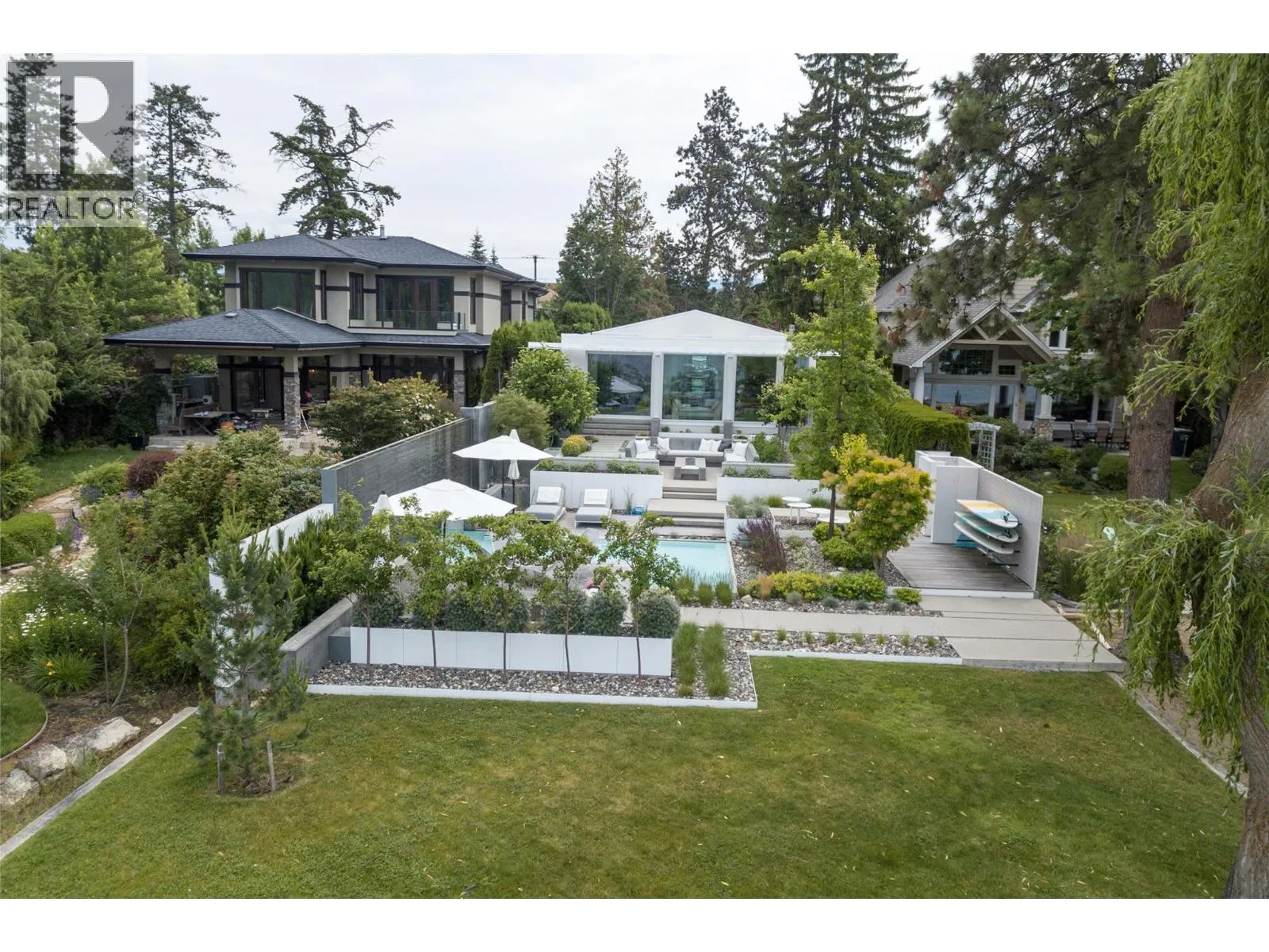 Set along the coveted stretch of Lakeshore, this exceptional waterfront home offers a rare expression of modern luxury, privacy, and design integrity. Originally conceived as a 1979 Pan-Abode beach home, this home has been thoughtfully reimagined into a retreat of enduring quality and quiet sophistication. Edge-grain cedar interiors lend warmth and texture, while a fully integrated smart home system provides seamless control of lighting, climate, and sound. The kitchen and baths are executed with a refined, minimalist sensibility balancing form, function, and timeless appeal. A dramatic sunroom anchors the living experience, an architectural centerpiece enveloped in glass. The grounds unfold as a series of curated moments positioned to capture varying perspectives of the lake, gardens, and sky. A sculptural fire feature with ambient lighting and integrated sound defines the evening atmosphere, while reflection pool and cascading water element introduce a sense of calm. A private fitness studio with steam amenities is complemented by a lower-level retreat featuring an infrared sauna, cold plunge tub offering a complete, spa-calibre experience. At the shoreline, a private 50 ft sandy beach and newly surfaced dock equipped with a 6000lb. boat lift and a SeaDoo lift - mean easy access to the lake. Quiet, extraordinary and rarely available, this property represents a singular opportunity to acquire a thoughtfully crafted waterfront estate in the Okanaganâs most desirable area. (id:27476)