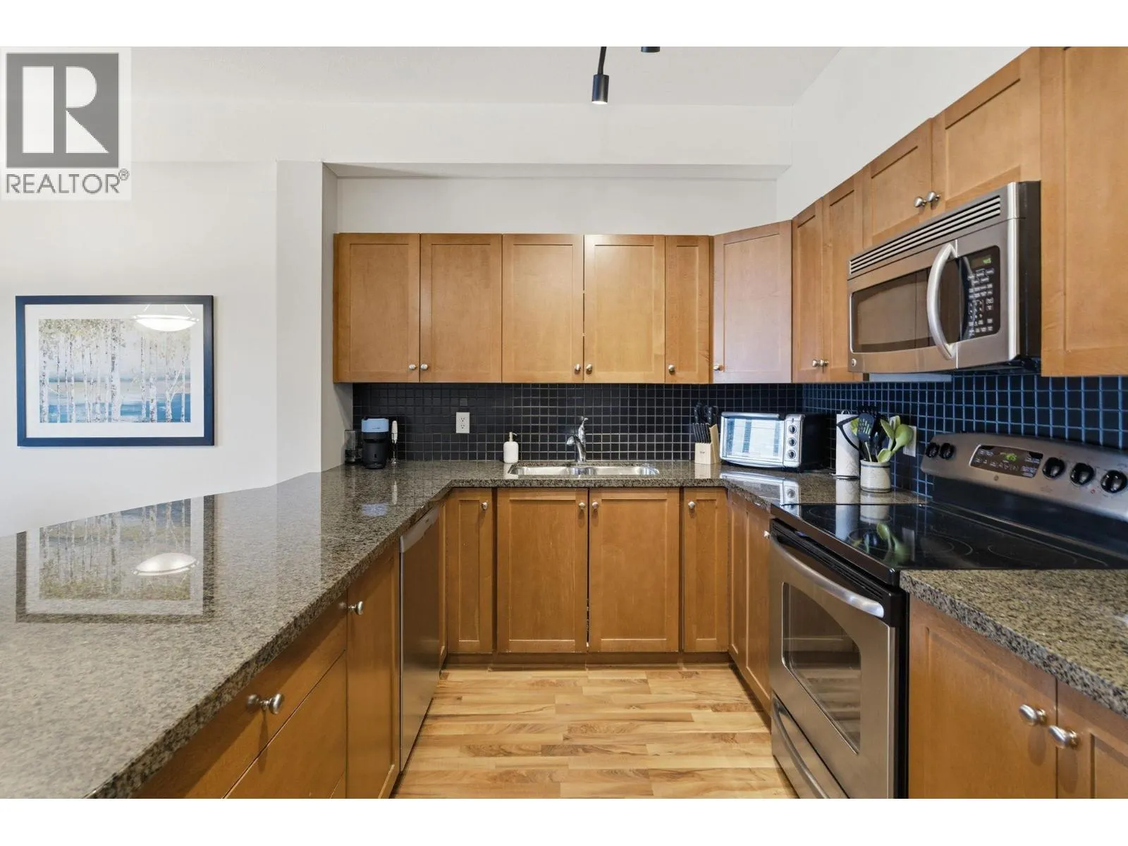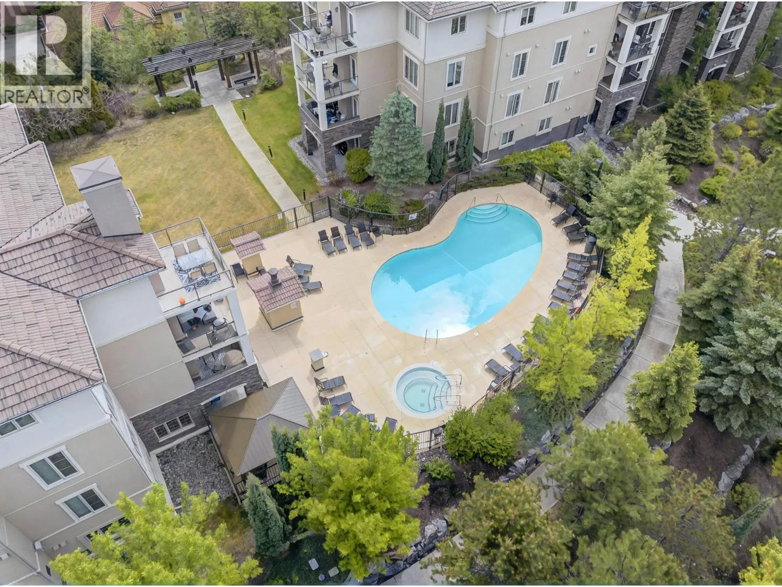 Welcome to this top-floor 2 bed, 2 bath condo at Pinnacle Pointe overlooking The Quail Golf Course. This property offers a rare blend of privacy, views, and a highly functional layout in the sought-after Quail Ridge community. Beautifully maintained and move-in ready, this home is ideally positioned on the quiet side of the building, overlooking the golf course, arguably the best view in the complex. Just a short walk to UBCO and minutes to championship golf, the airport, shopping, and everyday amenities, the location offers exceptional convenience while maintaining a peaceful setting. Downtown Kelowna is a quick drive away for easy access to restaurants, entertainment, and the waterfront. Inside, the bright open-concept design flows seamlessly to a spacious deck, perfect for relaxing or enjoying Okanagan summers. Gas heating and central air conditioning provide year-round comfort. Pinnacle Pointe features resort-style amenities including an outdoor pool, hot tub, fitness centre, and meeting room. Strata fees include water, heating, cooling, parking, management, and common property insurance. Pet-friendly (1 cat or dog), no age restrictions, and short term rentals allowed This is an ideal option for investors, students, or those seeking low-maintenance living in a prime location. (id:27476)