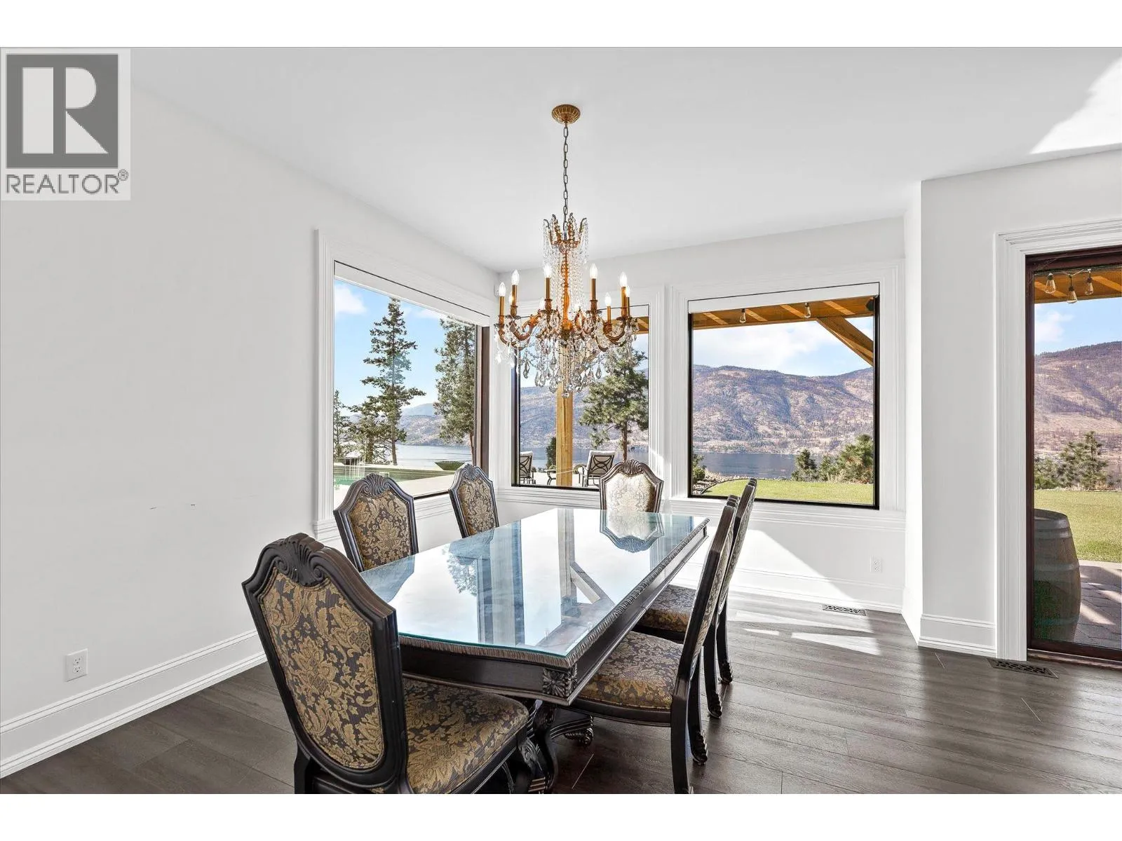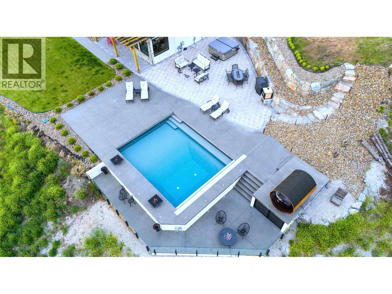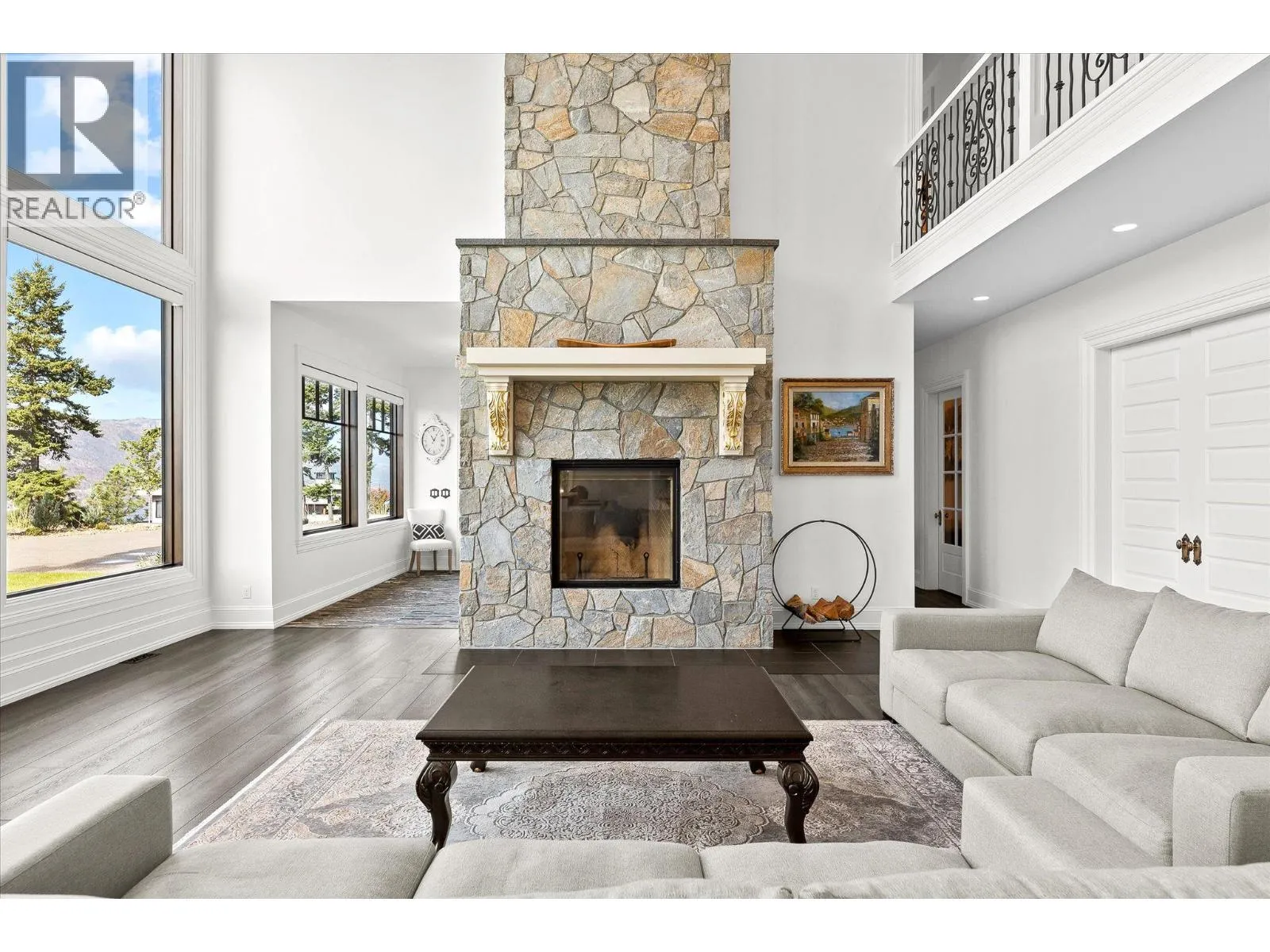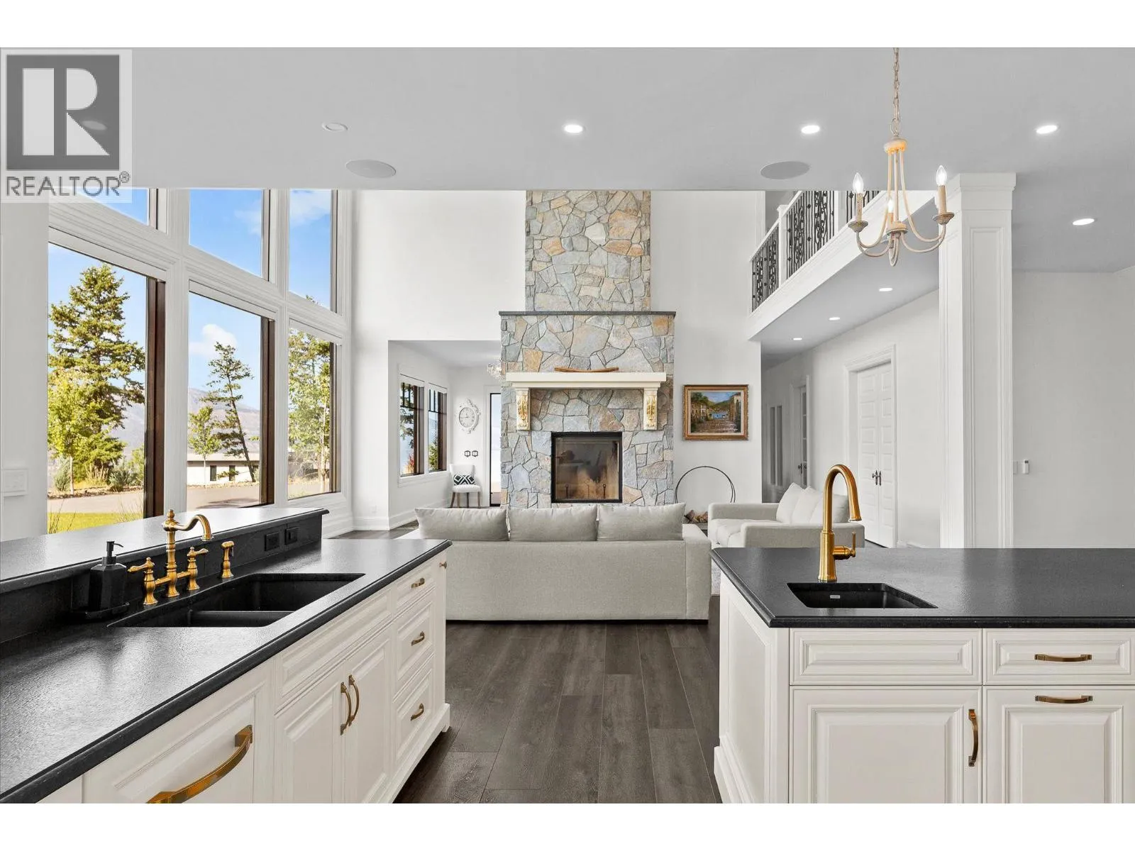 Experience Okanagan living on this remarkable 2.89 acre, gated estate in McKinley Landing. Built in 2018, this custom masterpiece offers breathtaking, unobstructed panoramic views of Okanagan Lake and spans nearly 5,000 square feet with six bedrooms and five bathrooms. At the heart of the home, a dramatic double height great room showcases floor to ceiling windows and a grand stone fireplace. The elevated kitchen boasts sleek custom cabinetry, premium integrated appliances, two islands and separate prep kitchen and is open to the dining room. An office, powder room, and theatre room finish off this level creating thoughtful spaces for relaxing and entertaining. The upper level features a sprawling primary suite complete with a private patio, a coffee bar, a spa like ensuite where a copper clawfoot tub overlooks the lake. The luxurious walk in closet and dressing room Is a dream, with custom cabinetry and centre island. The upper levels features three additional bedrooms and a sitting room. Step outside to enjoy sun soaked days by the pool and hot tub, or unwind in the sauna while taking in the sweeping lake views. The meticulously landscaped grounds feature a timber framed pergola and several lounging areas, offering exceptional privacy and tranquility. Additional highlights include high end finishes throughout, an oversized garage, and close proximity to Kelownaâs renowned wineries and beaches. This is a unique opportunity to own a gated estate in one of Kelownaâs most sought after settings. (id:27476)
