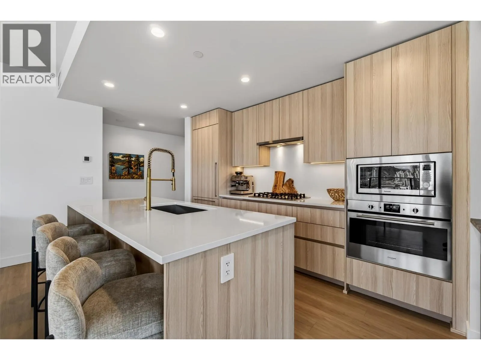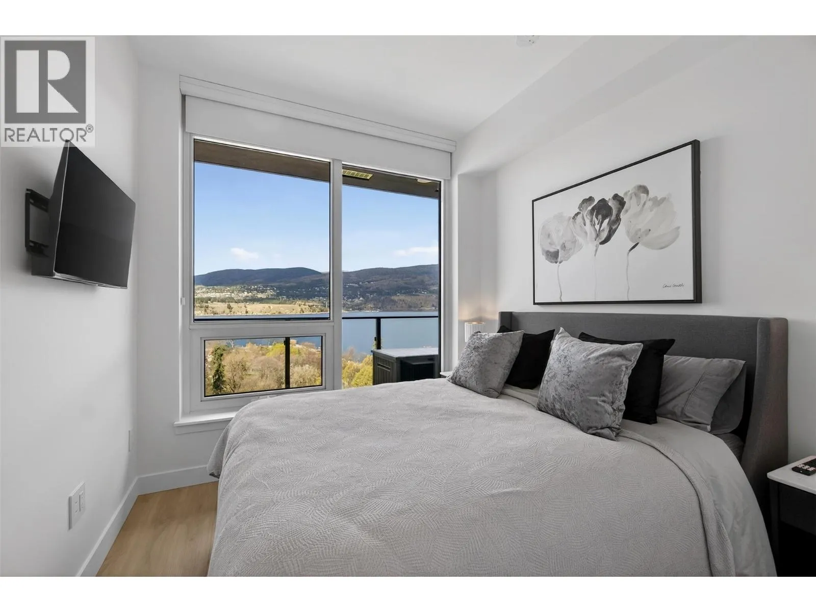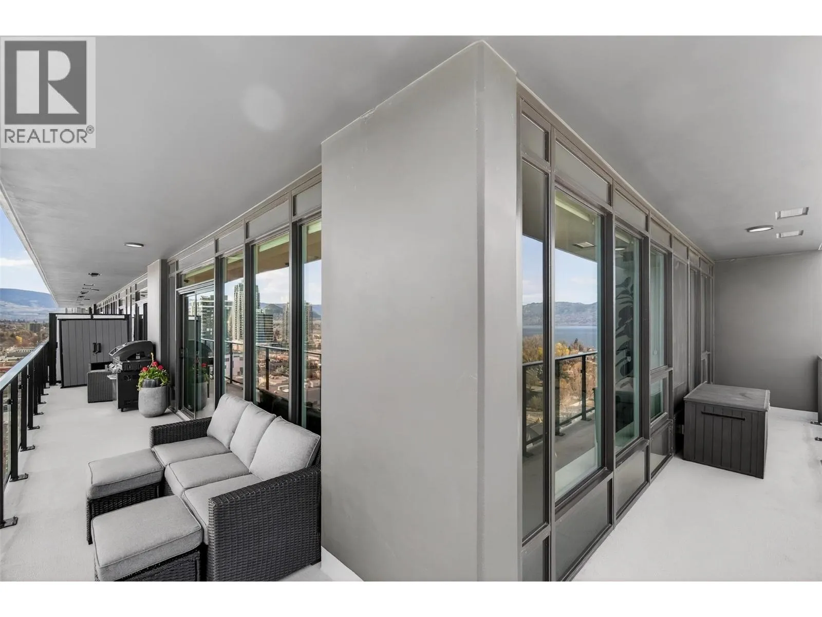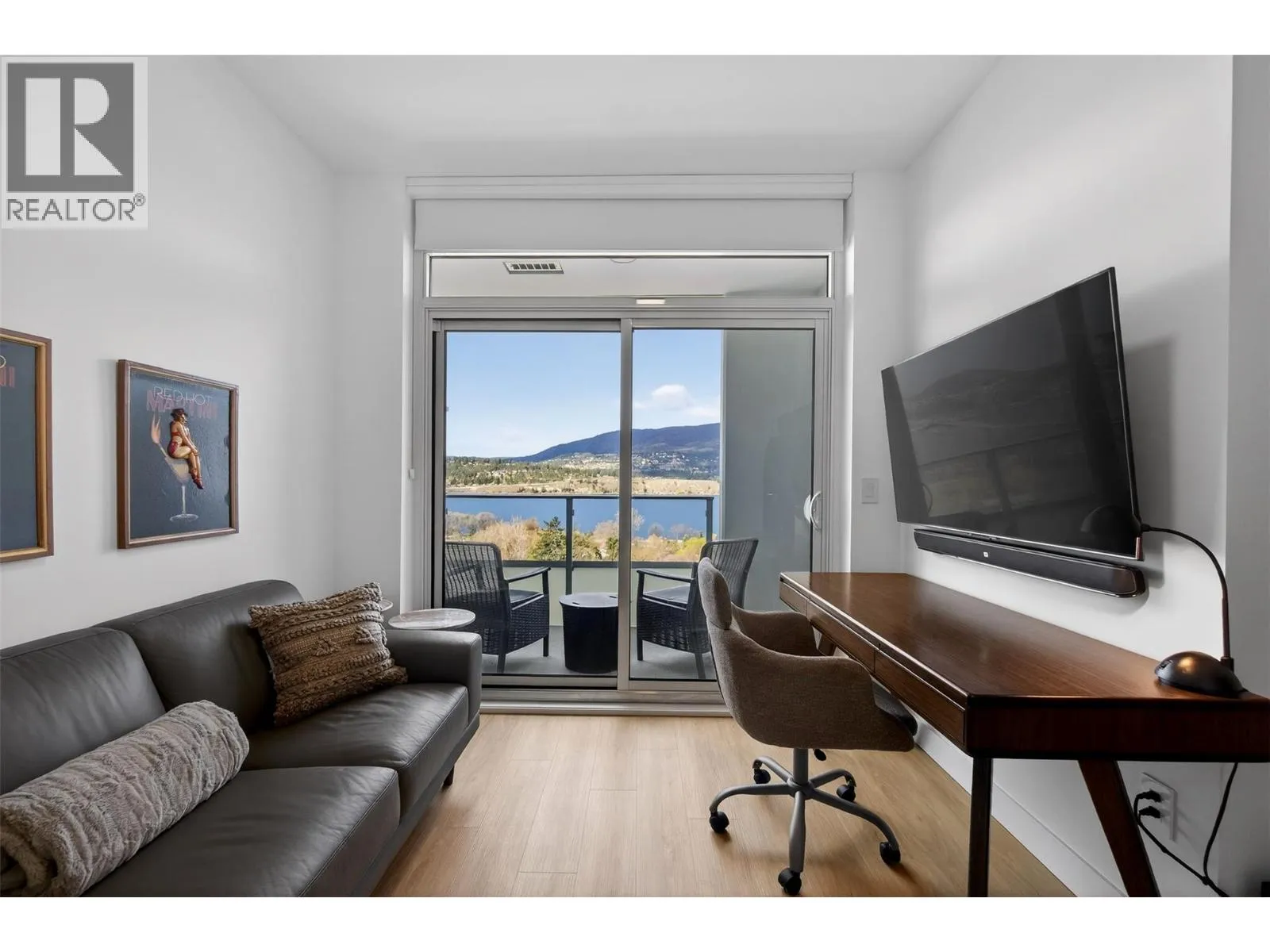 Stunning 2025, 3 bedroom + den condo in the heart of downtown Kelowna. This is a large corner unit with breathtaking views of Okanagan Lake, City Park, Kelowna Yacht Club, Bennett Bridge, as well as sparkling city lights on both sides of the lake. This unit is located on the quiet side of the building (NW corner) and has an excellent split-plan layout & offers lots of upgrades which include beverage center, entertainment center, closet & storage improvements, etc.. It also has a panoramic wraparound balcony, c/w natural gas BBQ hookup. All rooms have spectacular views; currently, the 2nd bedroom is set up as a guest bedroom, the 3rd bedroom is set up as an office & the den is set up as an additional bedroom - lots of flexibility with basically 4 bedrooms. The living room features a built-in 75"" TV & 72"" electric fireplace. Resort-like amenities include large outdoor pool, hot-tubs, games room, golf simulator, putting green, sauna, steam, party rms & more. This is an exceptional condo and the location is 2nd to none - short walk to shops, restaurants, Safeway, coffee shops, lakefront boardwalk, water sports rental facilities, the community theater, Prospera Place & City Park which gives immediate access to tennis courts, beautiful beach, walking & bike trails, dog park & more. Included in price are 2 side-by-side, heated, indoor parking stalls in a premium location & a storage locker. Additional storage capacity is provided with 2 large deck boxes. Turnkey option available! (id:27476)