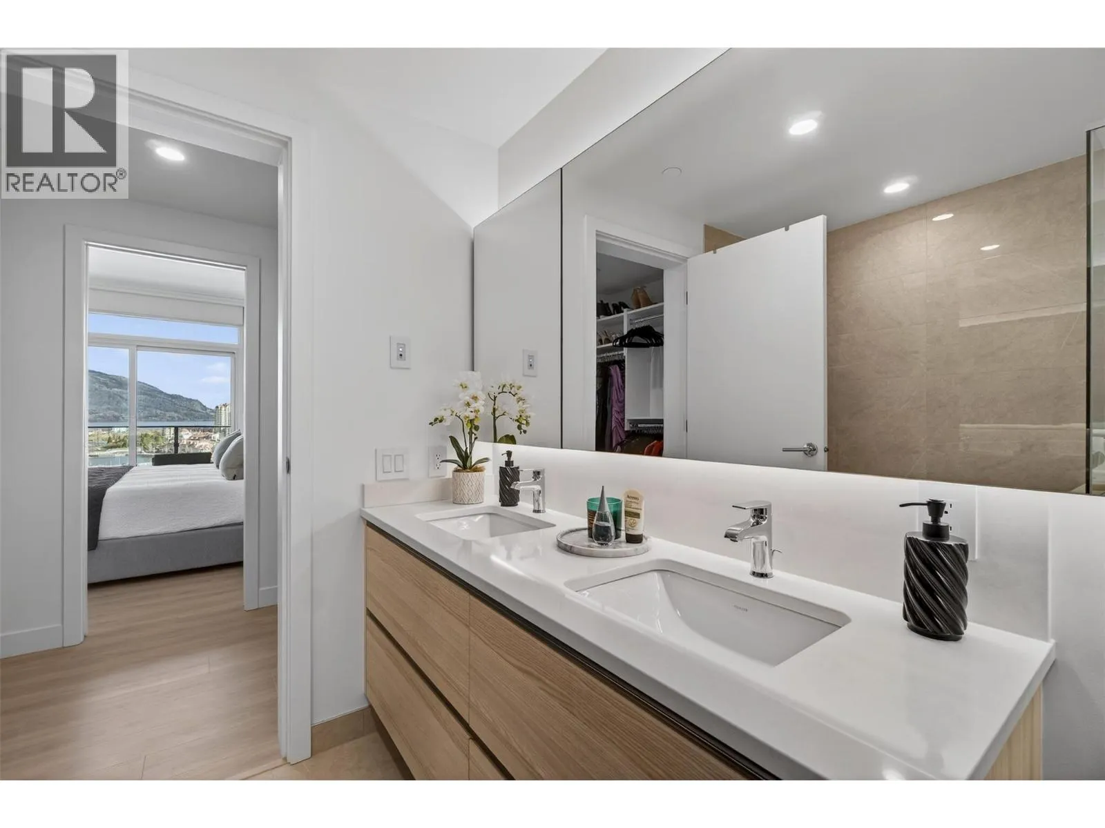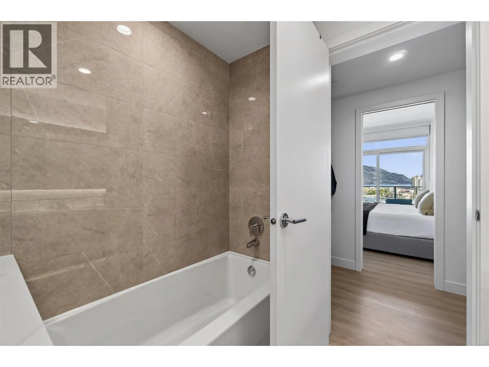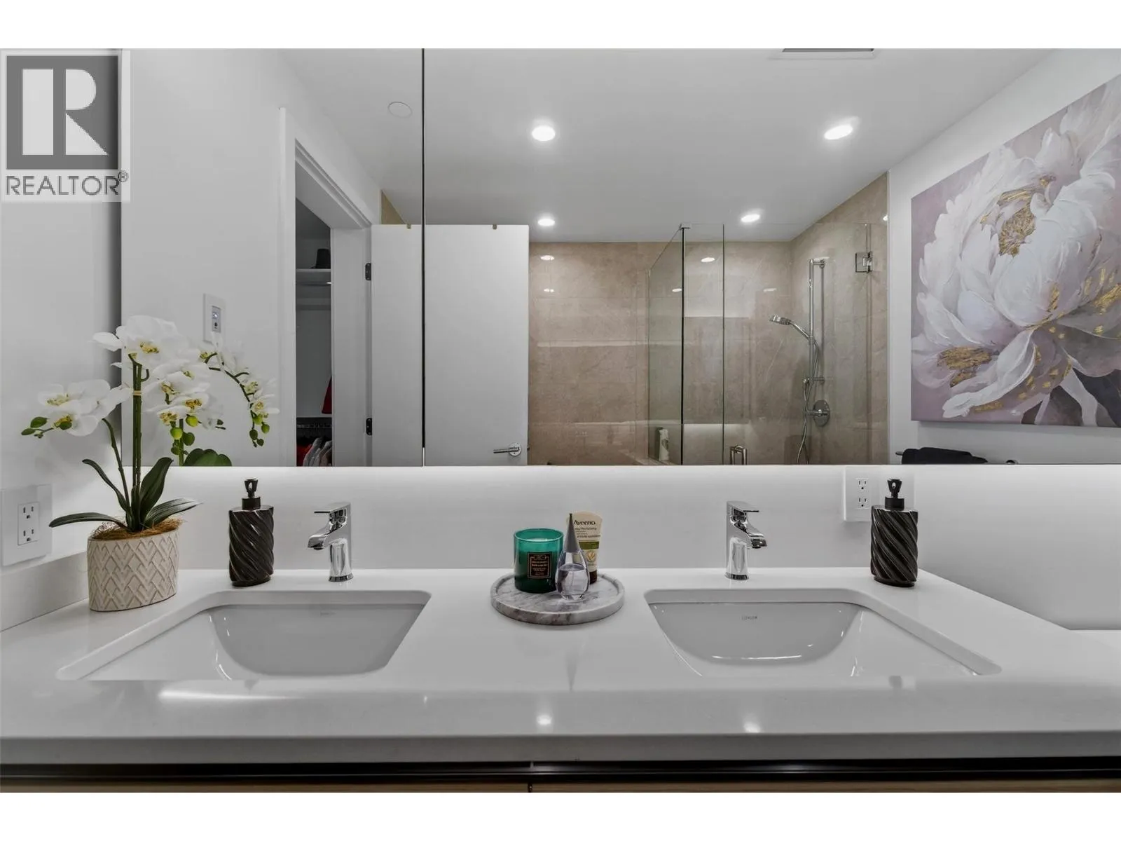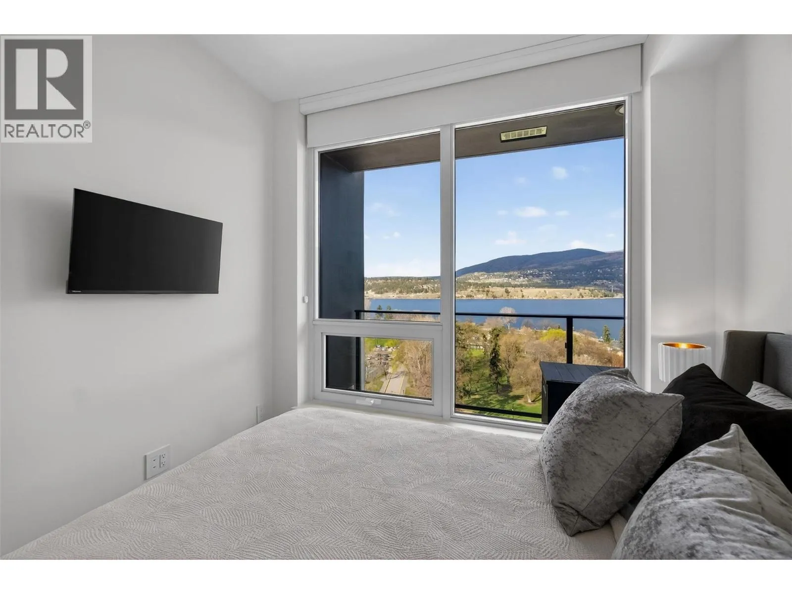 Stunning 2025, 3 bedroom + den condo in the heart of downtown Kelowna. This is a large corner unit with breathtaking views of Okanagan Lake, City Park, Kelowna Yacht Club, Bennett Bridge, as well as sparkling city lights on both sides of the lake. This unit is located on the quiet side of the building (NW corner) and has an excellent split-plan layout & offers lots of upgrades which include beverage center, entertainment center, closet & storage improvements, etc.. It also has a panoramic wraparound balcony, c/w natural gas BBQ hookup. All rooms have spectacular views; currently, the 2nd bedroom is set up as a guest bedroom, the 3rd bedroom is set up as an office & the den is set up as an additional bedroom - lots of flexibility with basically 4 bedrooms. The living room features a built-in 75"" TV & 72"" electric fireplace. Resort-like amenities include large outdoor pool, hot-tubs, games room, golf simulator, putting green, sauna, steam, party rms & more. This is an exceptional condo and the location is 2nd to none - short walk to shops, restaurants, Safeway, coffee shops, lakefront boardwalk, water sports rental facilities, the community theater, Prospera Place & City Park which gives immediate access to tennis courts, beautiful beach, walking & bike trails, dog park & more. Included in price are 2 side-by-side, heated, indoor parking stalls in a premium location & a storage locker. Additional storage capacity is provided with 2 large deck boxes. Turnkey option available! (id:27476)