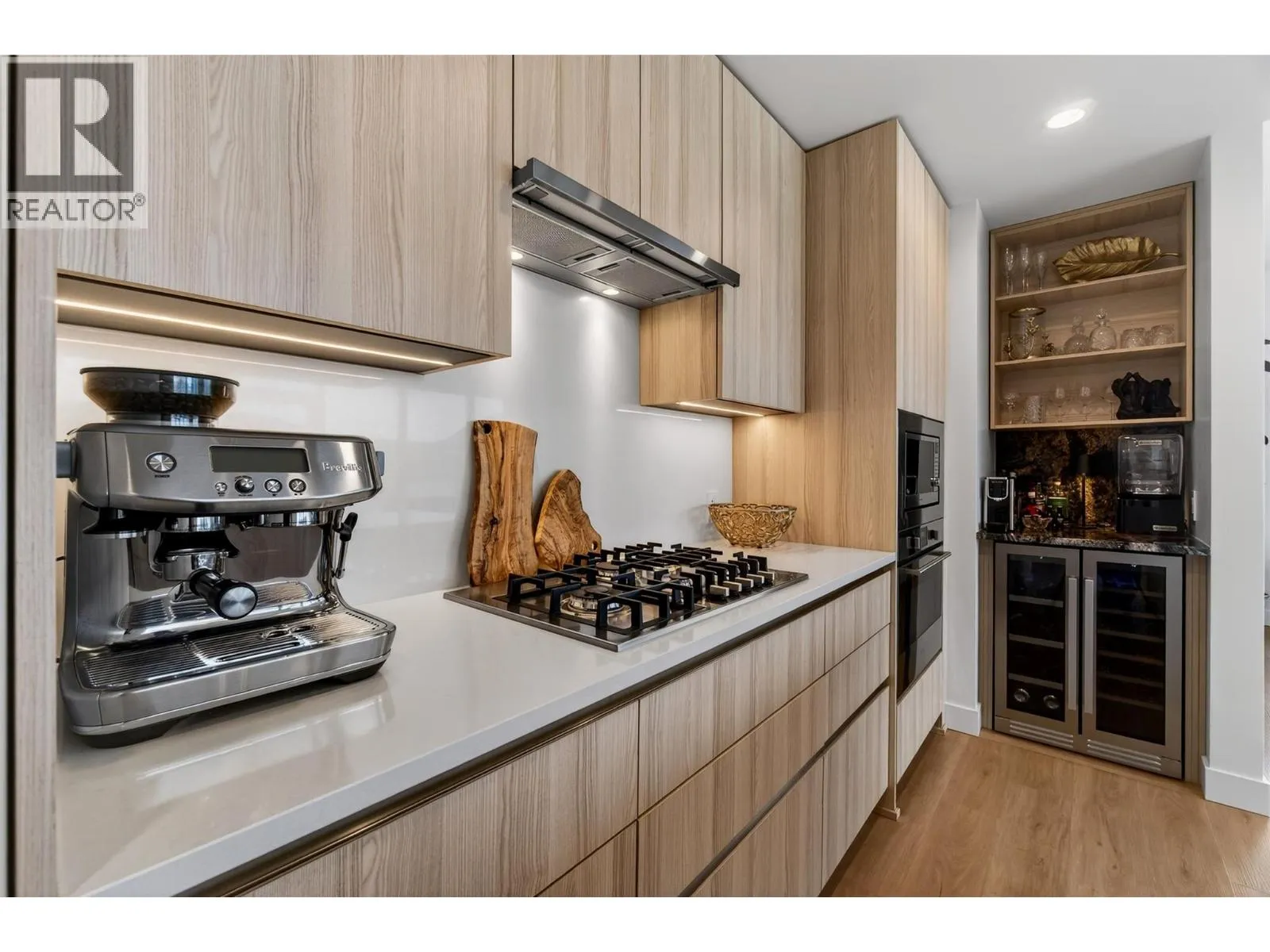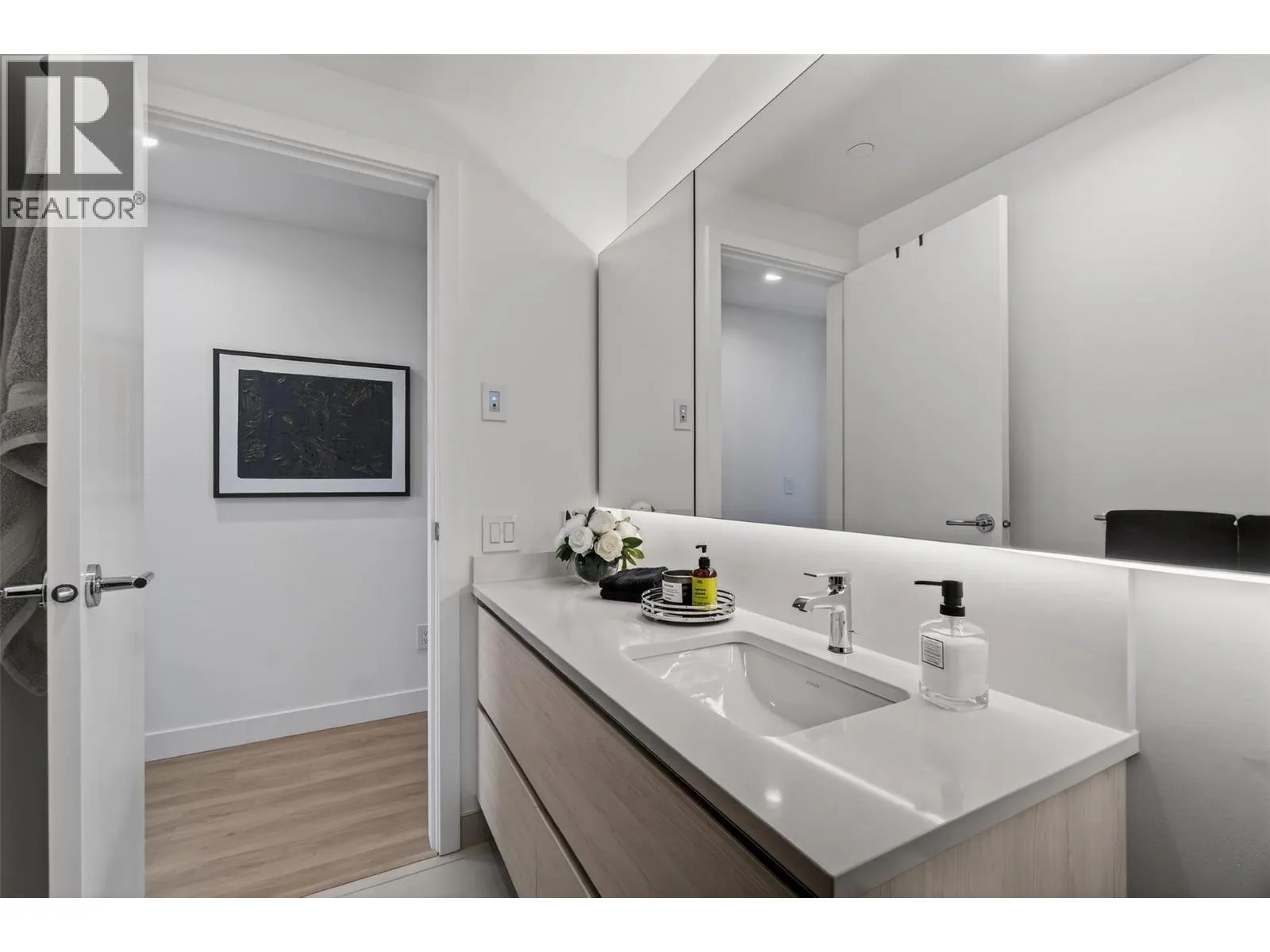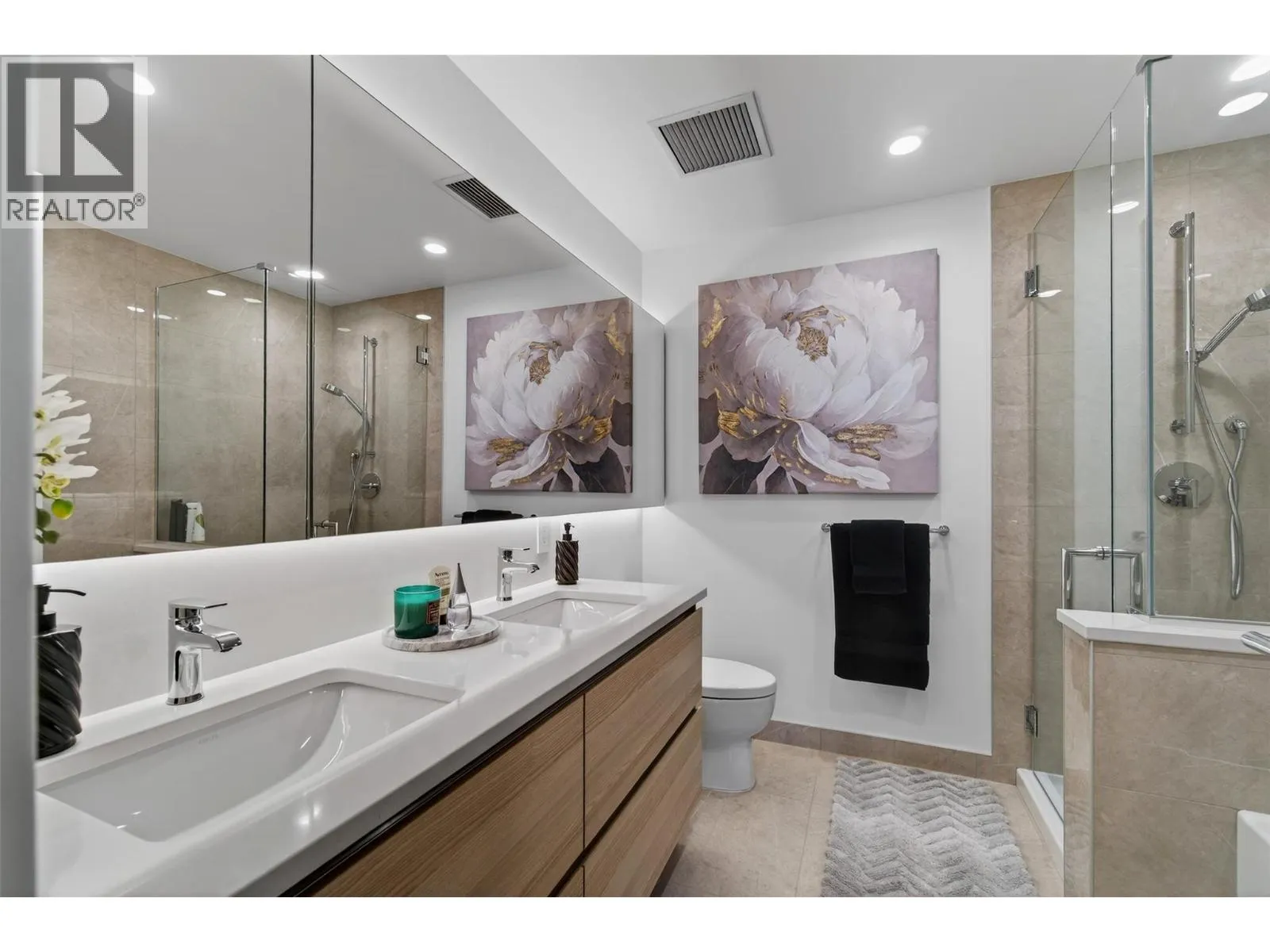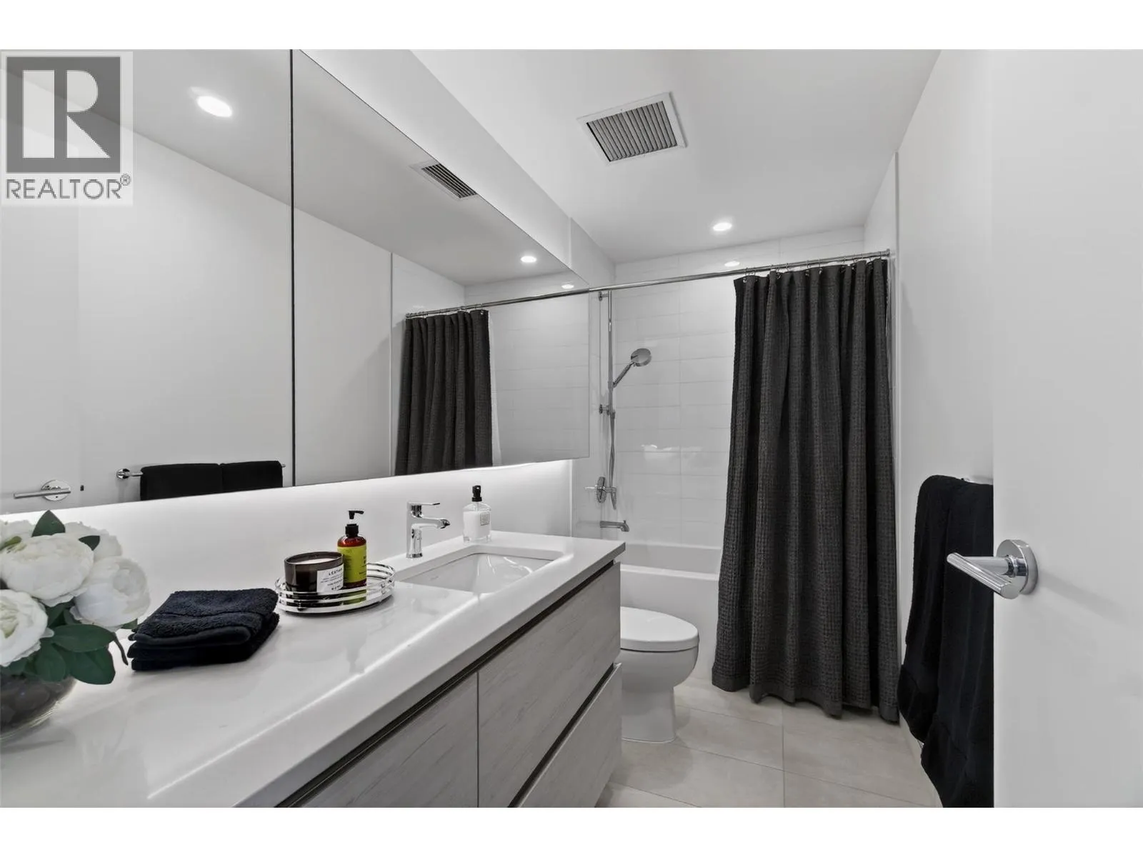 Stunning 2025, 3 bedroom + den condo in the heart of downtown Kelowna. This is a large corner unit with breathtaking views of Okanagan Lake, City Park, Kelowna Yacht Club, Bennett Bridge, as well as sparkling city lights on both sides of the lake. This unit is located on the quiet side of the building (NW corner) and has an excellent split-plan layout & offers lots of upgrades which include beverage center, entertainment center, closet & storage improvements, etc.. It also has a panoramic wraparound balcony, c/w natural gas BBQ hookup. All rooms have spectacular views; currently, the 2nd bedroom is set up as a guest bedroom, the 3rd bedroom is set up as an office & the den is set up as an additional bedroom - lots of flexibility with basically 4 bedrooms. The living room features a built-in 75"" TV & 72"" electric fireplace. Resort-like amenities include large outdoor pool, hot-tubs, games room, golf simulator, putting green, sauna, steam, party rms & more. This is an exceptional condo and the location is 2nd to none - short walk to shops, restaurants, Safeway, coffee shops, lakefront boardwalk, water sports rental facilities, the community theater, Prospera Place & City Park which gives immediate access to tennis courts, beautiful beach, walking & bike trails, dog park & more. Included in price are 2 side-by-side, heated, indoor parking stalls in a premium location & a storage locker. Additional storage capacity is provided with 2 large deck boxes. Turnkey option available! (id:27476)