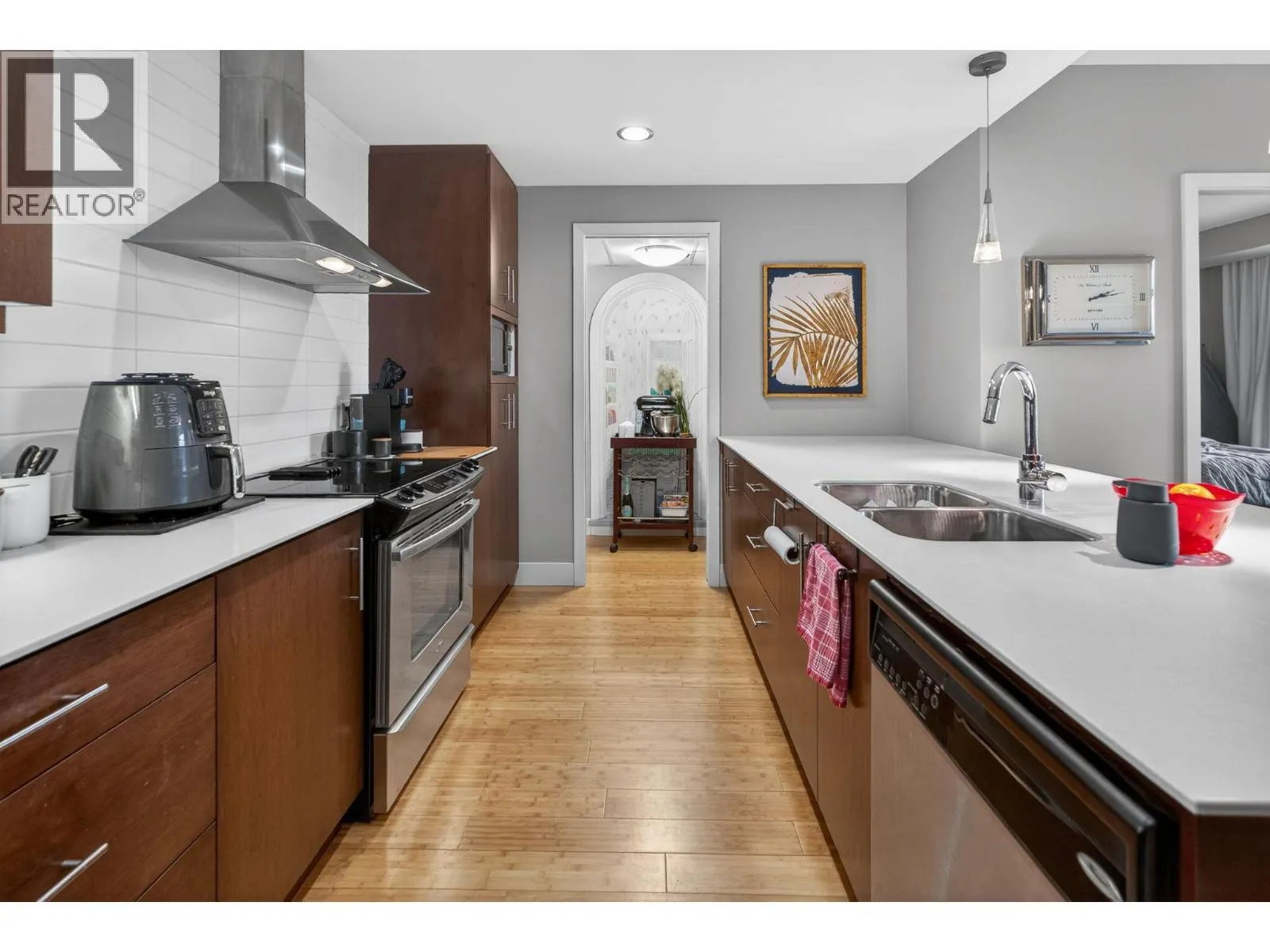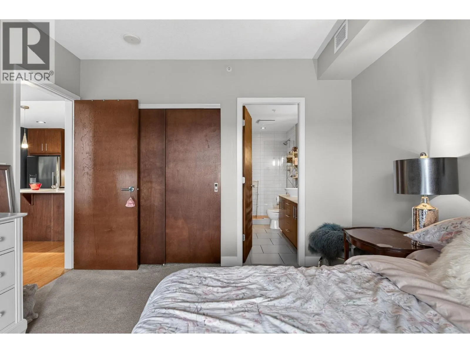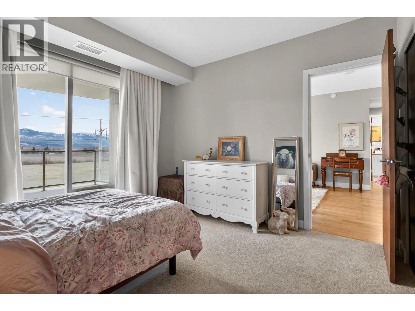 Welcome to INvue - an amenity-rich condo in a highly central location. This well-designed 2-bedroom, 2-bathroom home features a desirable split floor plan offering excellent privacy. The open-concept galley kitchen includes an eating bar and pantry and flows seamlessly into the dining area and living room, where unobstructed mountain views take center stage. The primary bedroom offers a full ensuite and secondary access to the main balcony, while the second bedroom enjoys its own private balcony. Abundant storage is found throughout the unit with generous closet space, complemented by a dedicated laundry room equipped with a brand new LG washer and dryer. Geothermal heating provides efficient, year-round comfort. Residents enjoy an impressive lineup of amenities, including a rooftop heated pool and lounge area, gym, sauna, dog wash station, and car wash. Located within walking distance to Orchard Park Mall, shopping, restaurants, and public transit, this condo delivers exceptional convenience, lifestyle, and views. (id:27476)
