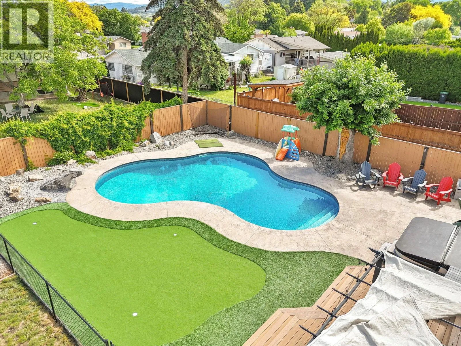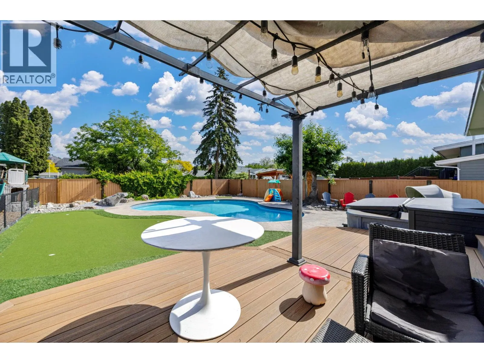 This fantastic family home has been completely updated. It features 5 bedroomsâ3 upstairs and 2 downstairs. The interior is bright with lots of natural light from south facing, front windows. The interior is enhanced by a fresh coat of paint, and equipped with new appliances. Both bathrooms have been recently renovated. The open living space provides easy access to the backyard from the back of the house. Enjoy the large patio, perfect for soaking up the afternoon sun. The downstairs area has been recently finished and could easily be converted into a suite. You'll find a spacious living room complete with a summer kitchen and an exercise/laundry room. All windows have been newly installed, creating a bright above-ground atmosphere. There are 2 large bedrooms. The backyard is truly an oasis, featuring a large pool and hot tub surrounded by beautiful landscaping, including a putting green, a diving rock, and a beautifully carved old oak tree. The area is fenced off from the play a structure and trampoline. The drive-through garage provides extra vehicle parking off the street. Location is key!! Situated in the heart of Old Glenmore, it's just a short distance to downtown and all the amenities you could needârestaurants, beaches, and shopping. It's also close to a great elementary school, sports fields, and recreational facilities. Plus you're near all transit options and the Okanagan Rail Trail, which offers easy access to Kelowna. Don't miss outâbook a private viewing now. (id:27476)